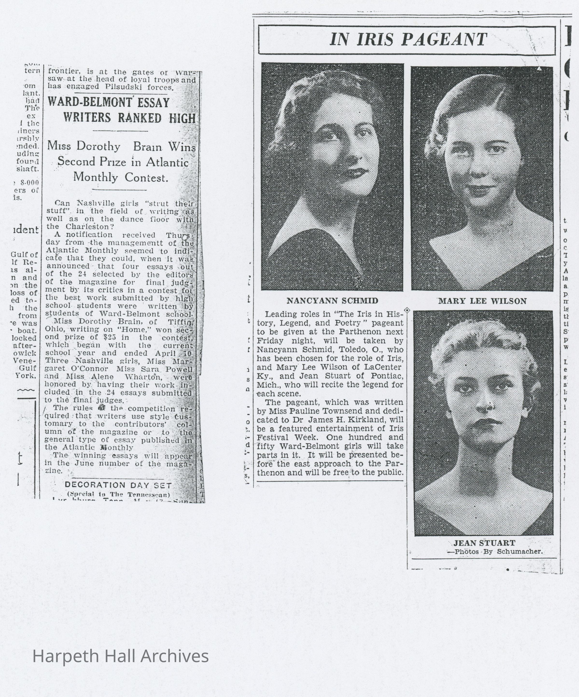 Ward-Belmont, Essay Contest, Iris Pageant, Atlantic Monthly, 1926, 1935, Dorothy Brain, Nancyann Schmid