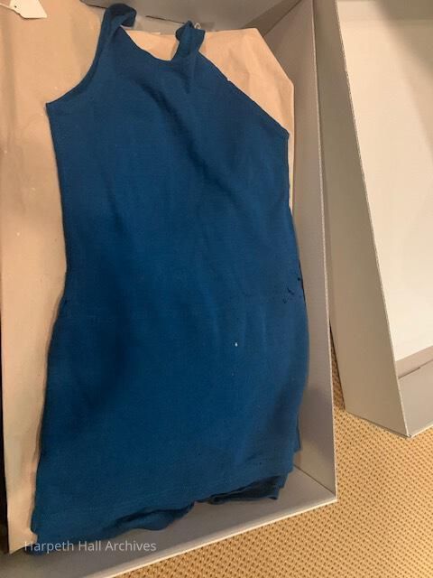 Blue wool swimsuit, donated by Eleanor Driskell Linebarger, Ward-Belmont, class of 1933Context