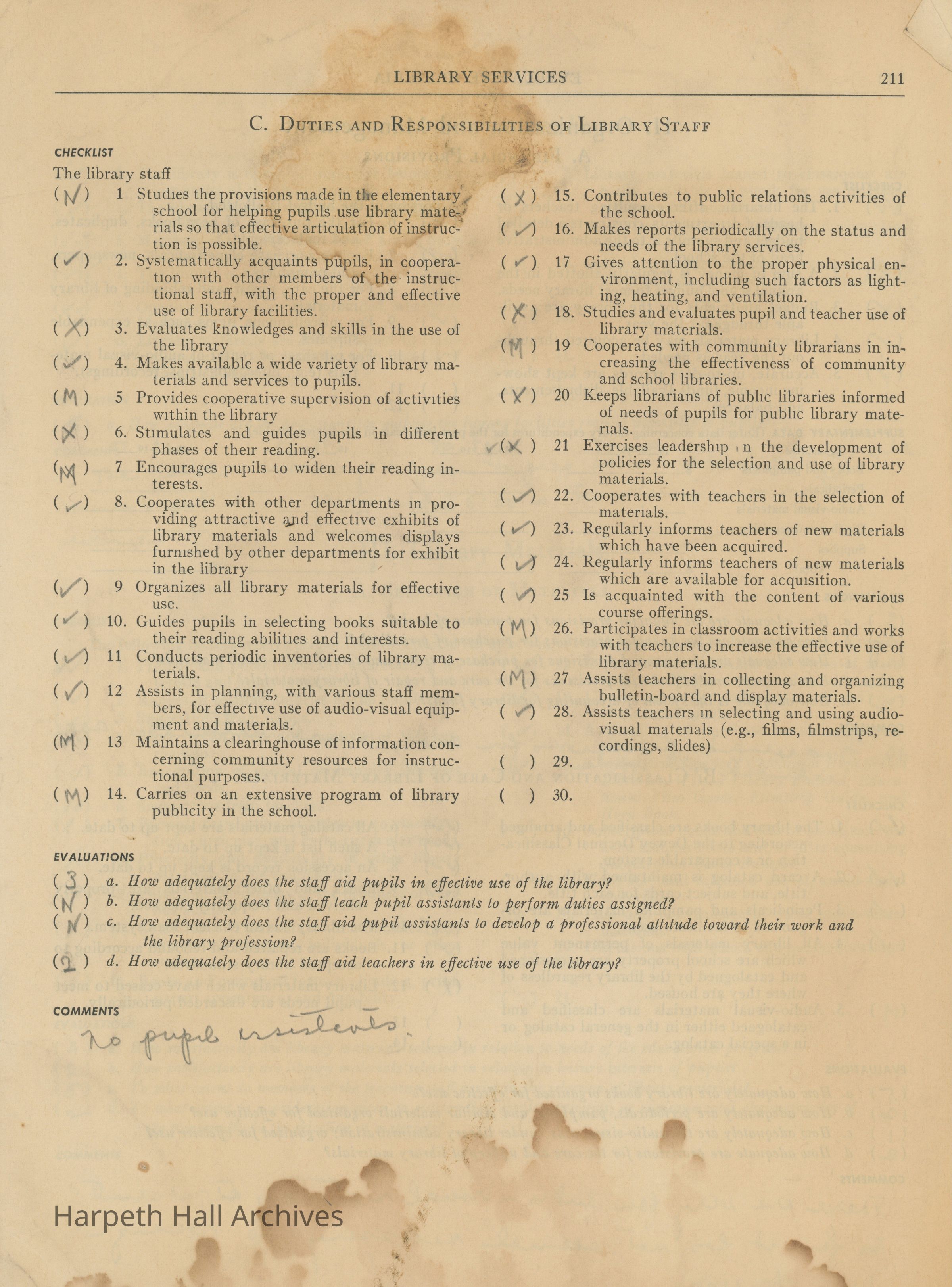 Library Services Checklist, 1950Entry/Object ID