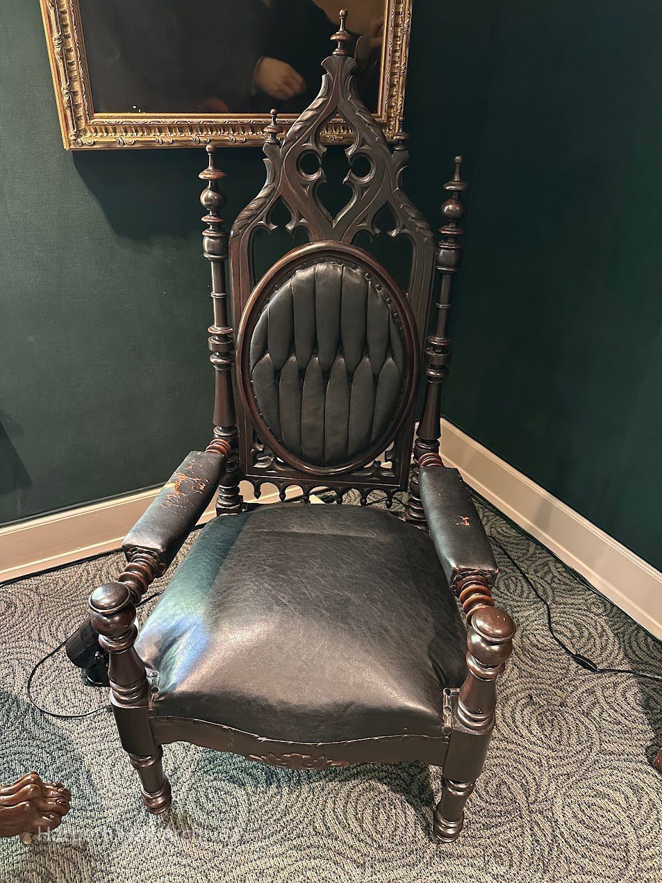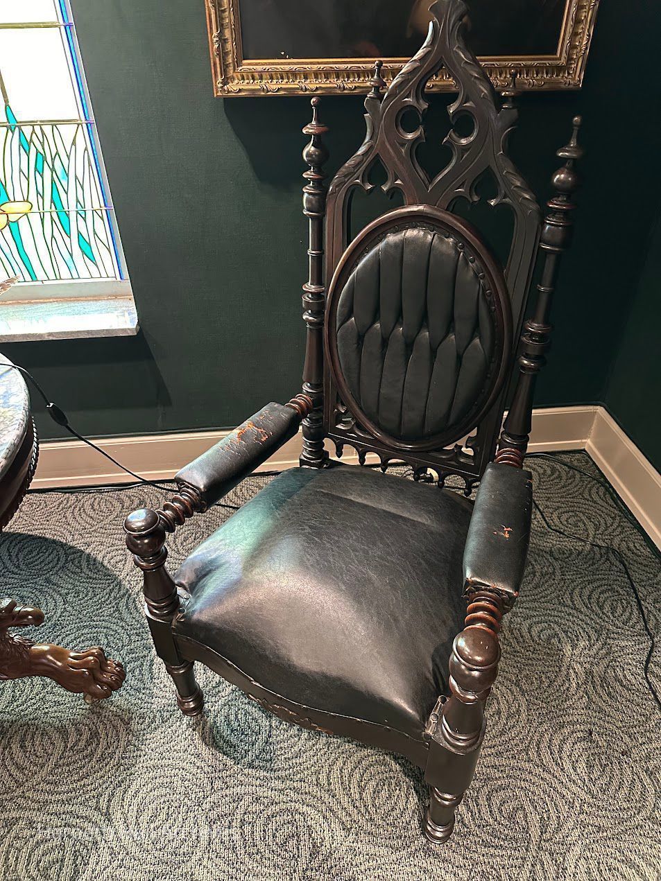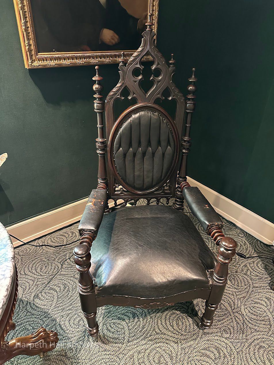 Dr. William E. Ward’s original Victorian hand-carved wooden chair, husband of Eliza Ward, and co-founder of Ward Seminary. On the right, you will see , a framed photo of him, and a portrait of Dr. Ward on the wall. The chairs dates to the 1880s. The photo of Dr. Ward was a gift from Jean Ward Oldfield, and the portrait was a gift from Bill Ward. Both are descendants of William and Eliza Ward.Relationships