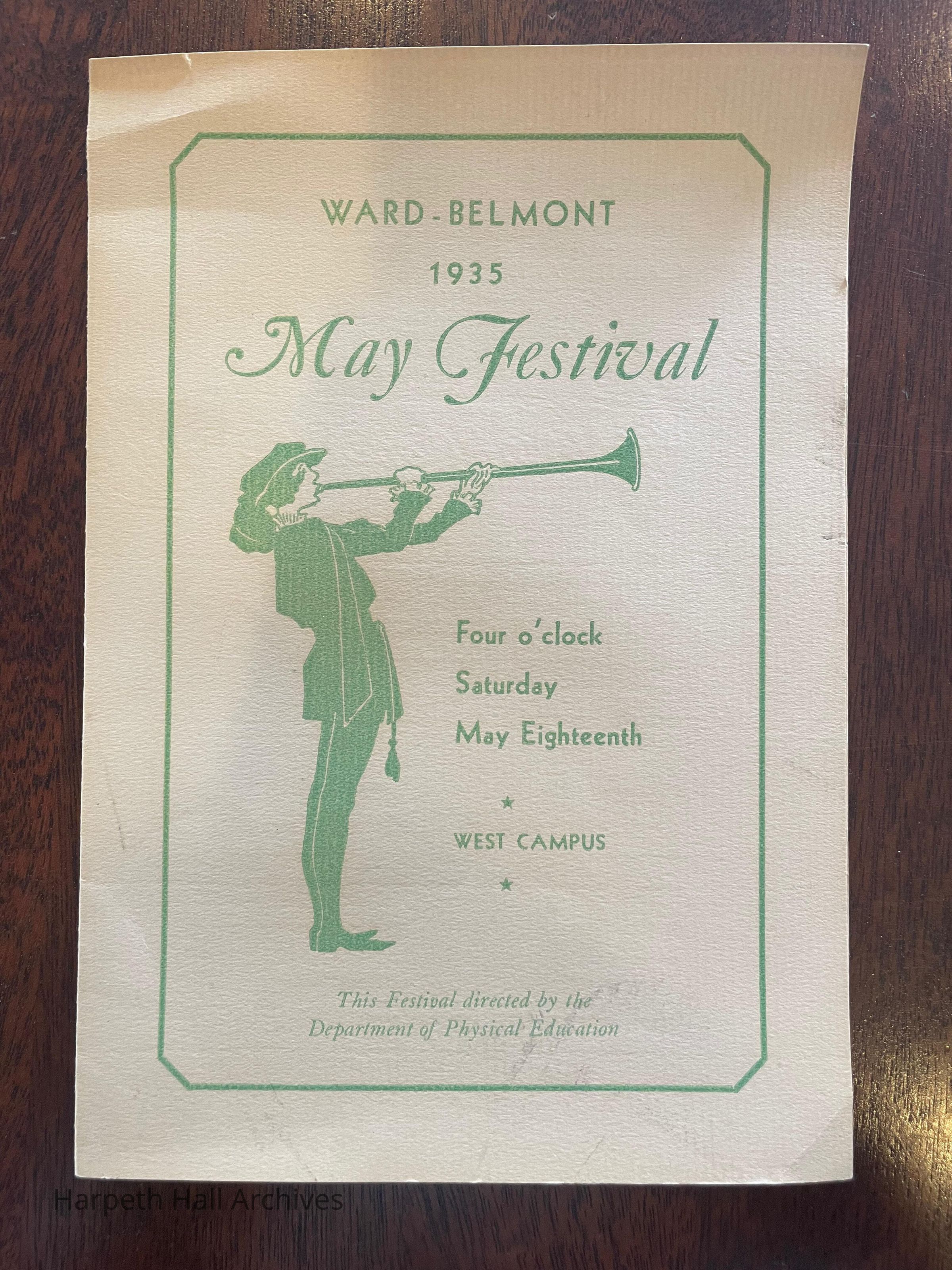 A bulletin for the Ward-Belmont May Festival held on May 18th, 1935. Details schedule for the event including the names of girls performing.