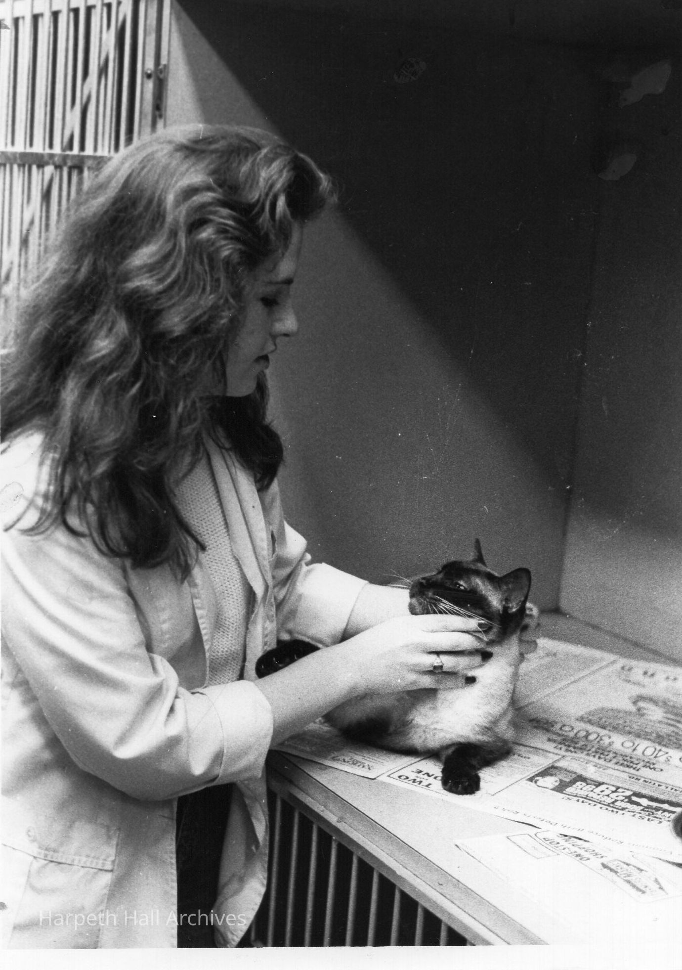 Mary McLaughlin, Winterim internship (date unknown). On back of photograph: "Mary McLaughlin assists in a veterinary clinic."Context