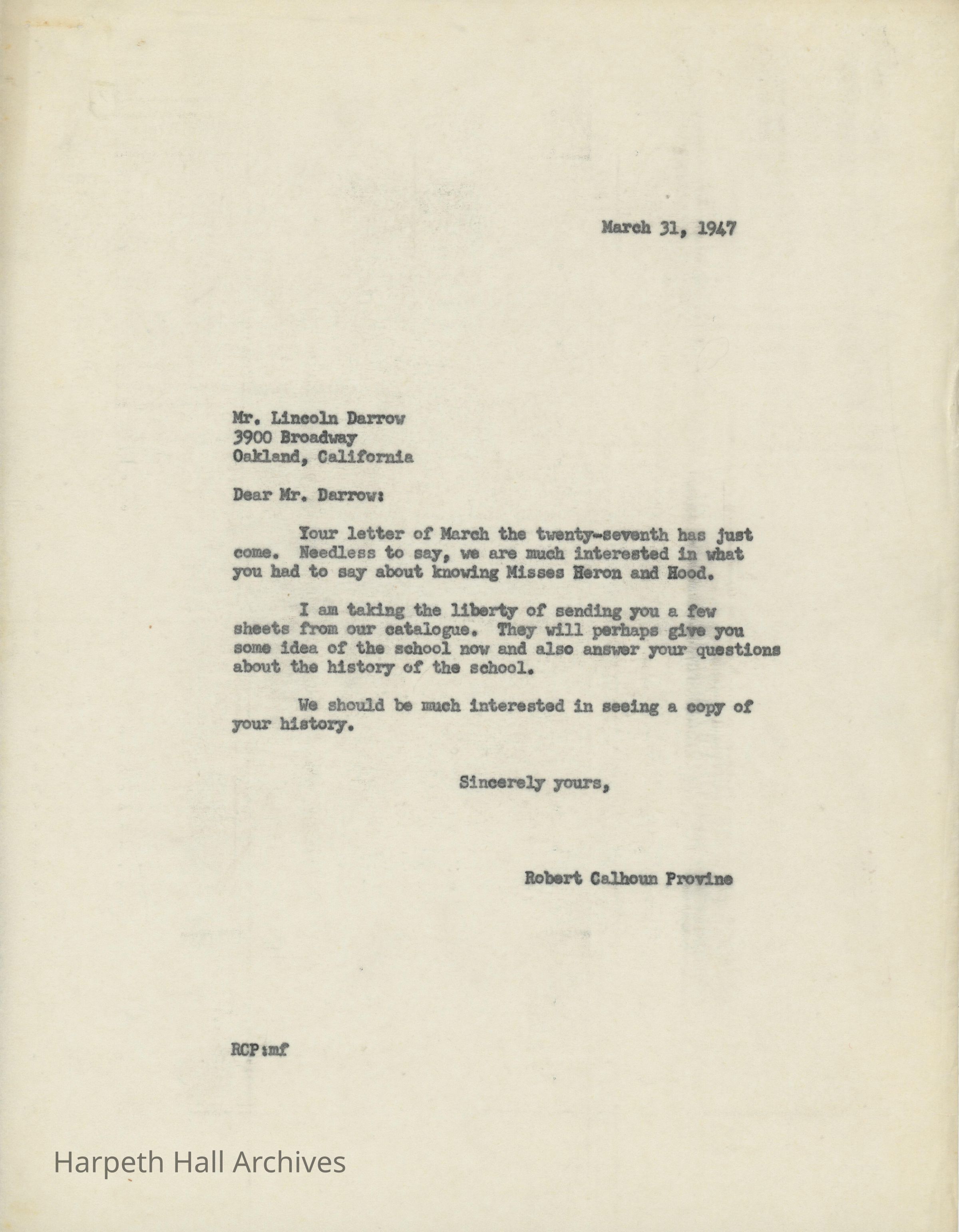 Belmont Founders Letter, 1947Entry/Object ID