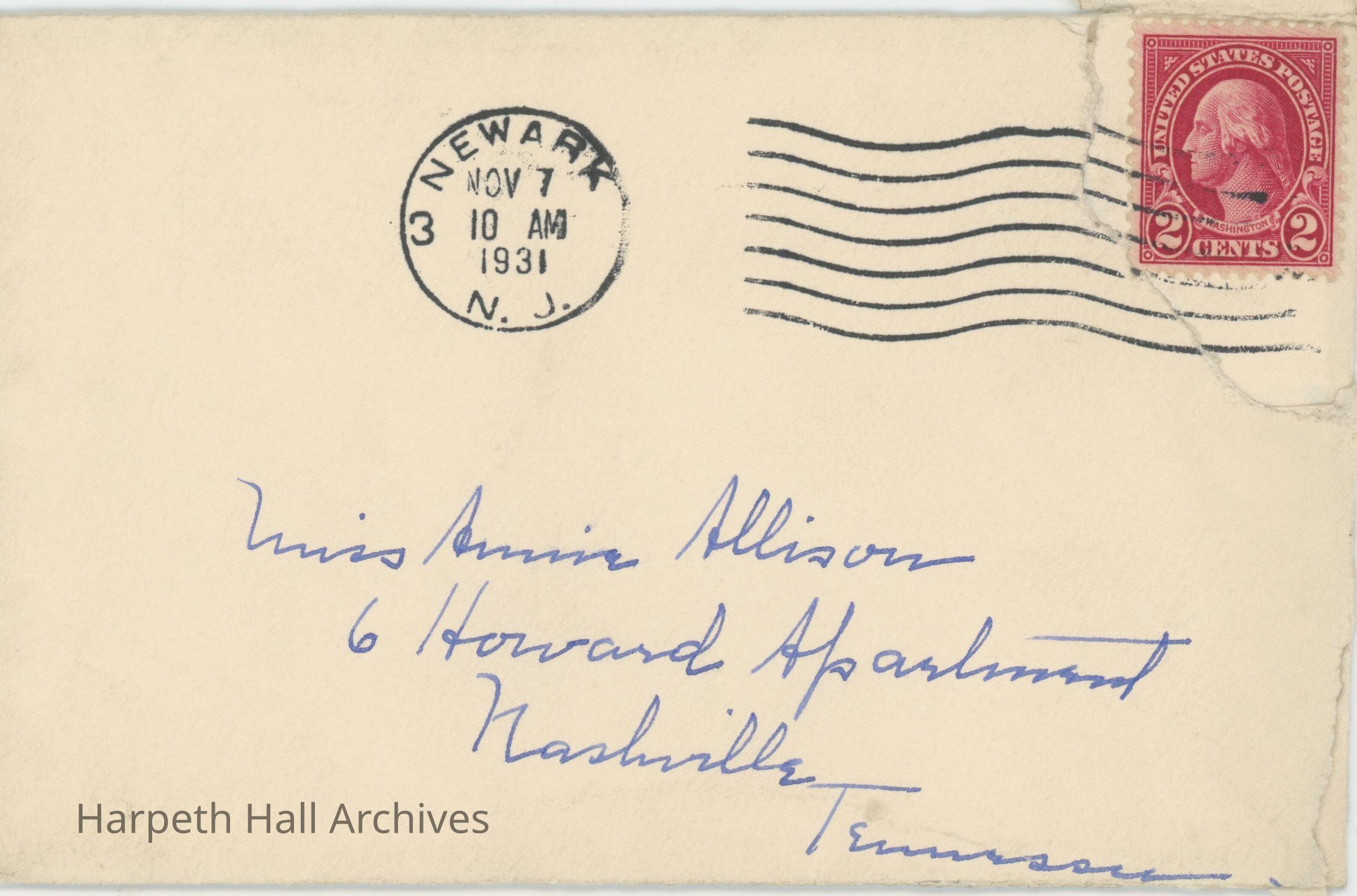 A letter addressed to Miss Annie Allison postmarked on November 7th, 1931.Context