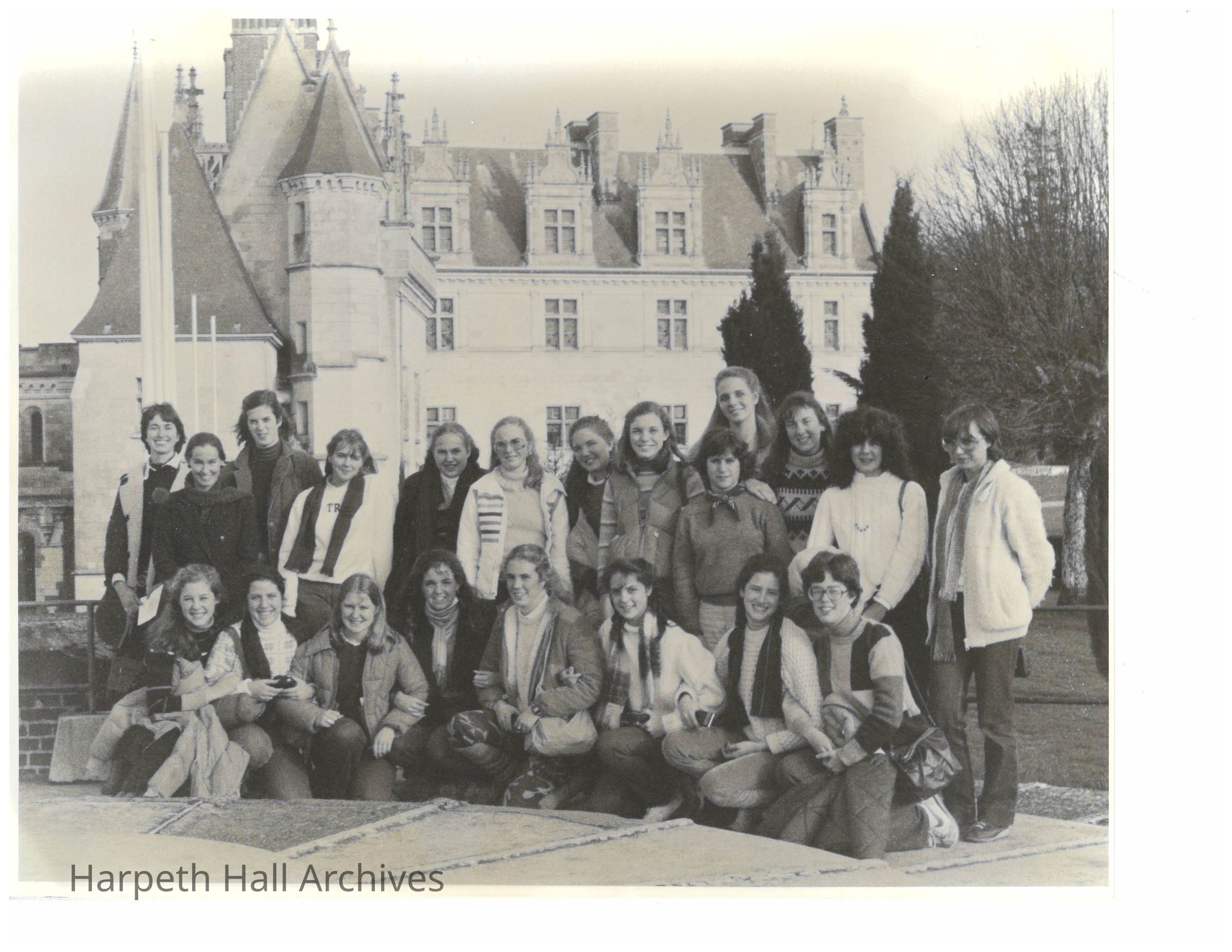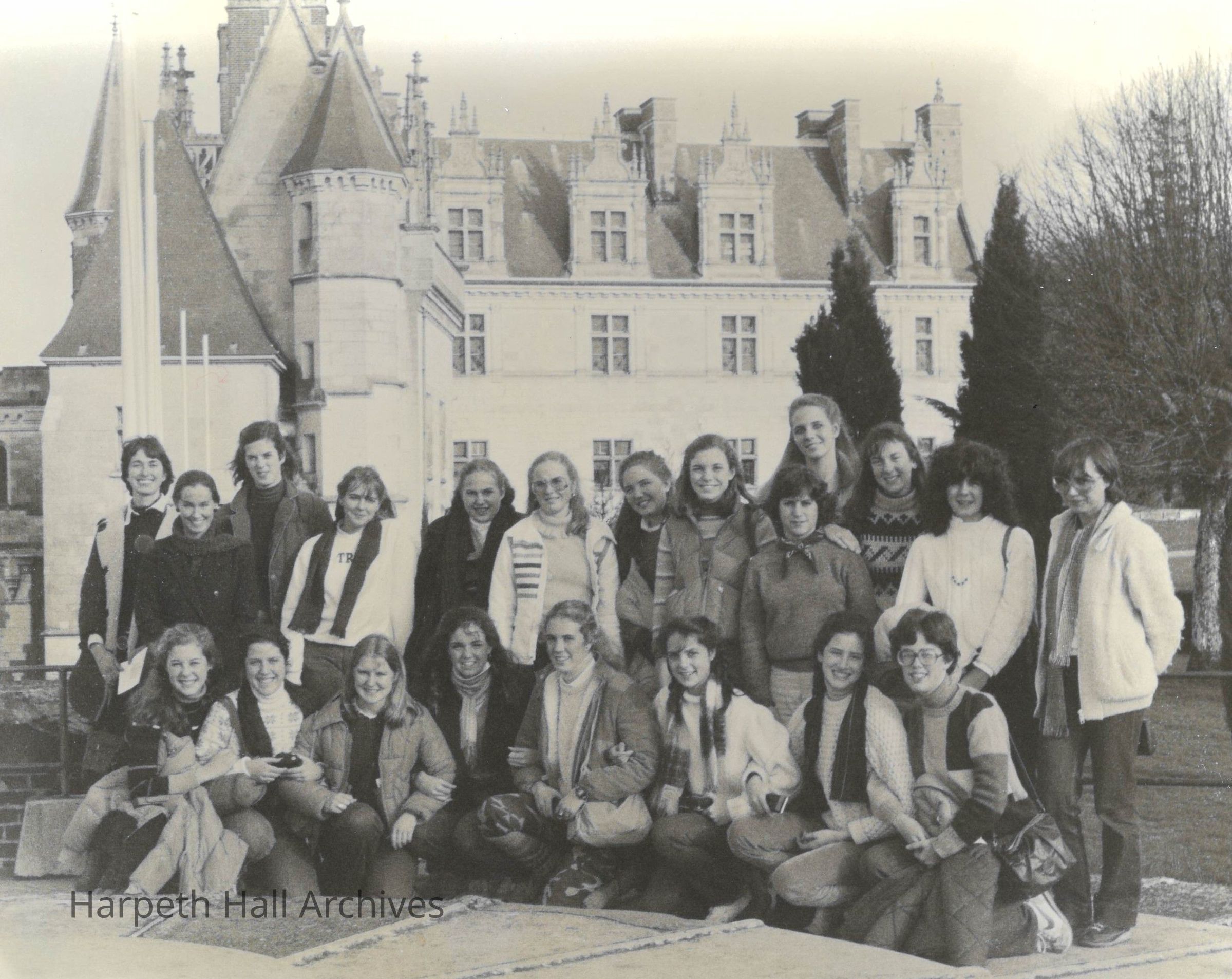 A photo of a group of Harpeth Hall students during a Winterim trip in 1983. Travel programs that year included Germany, Austria, and Switzerland; Italy; Mexico; and New York City.