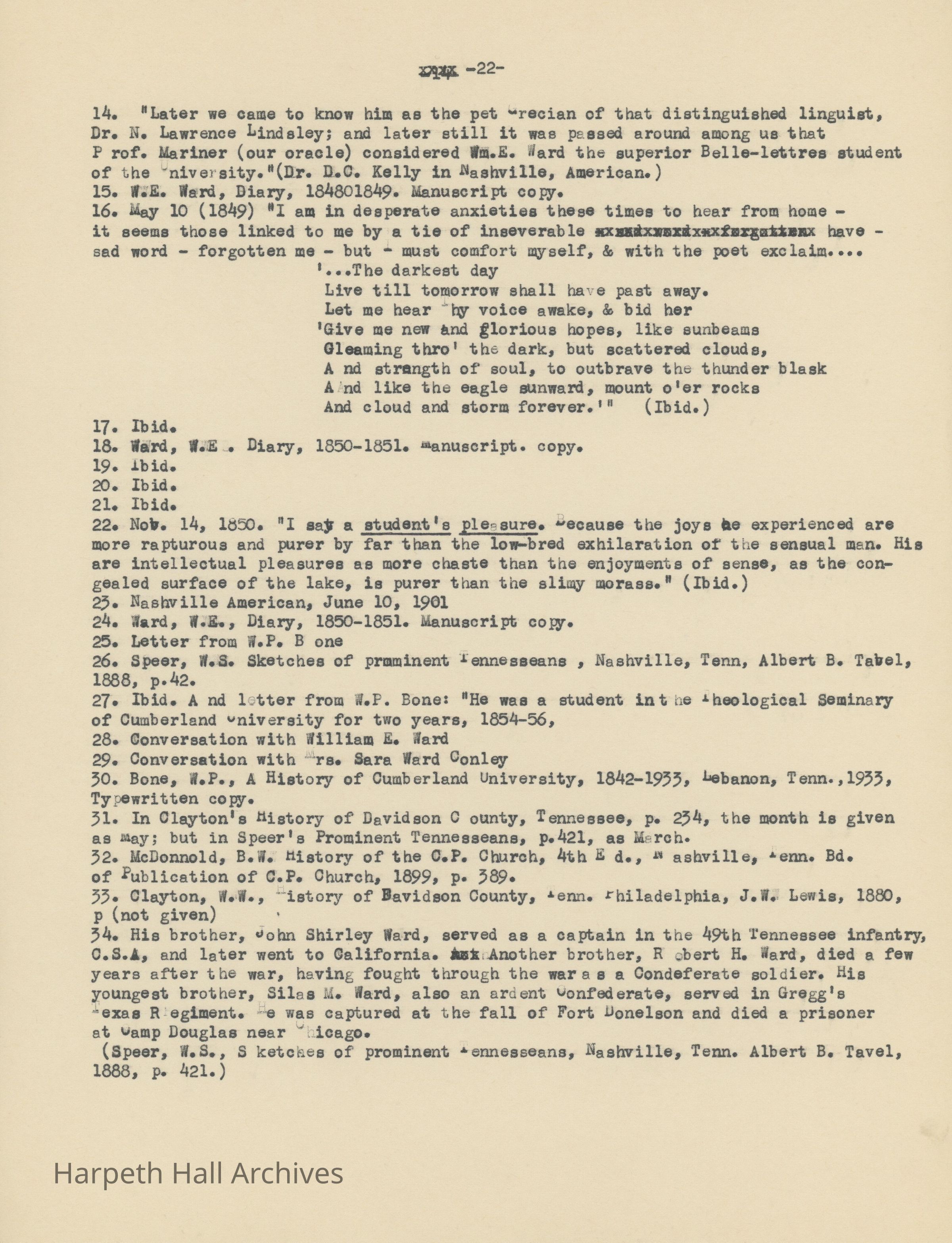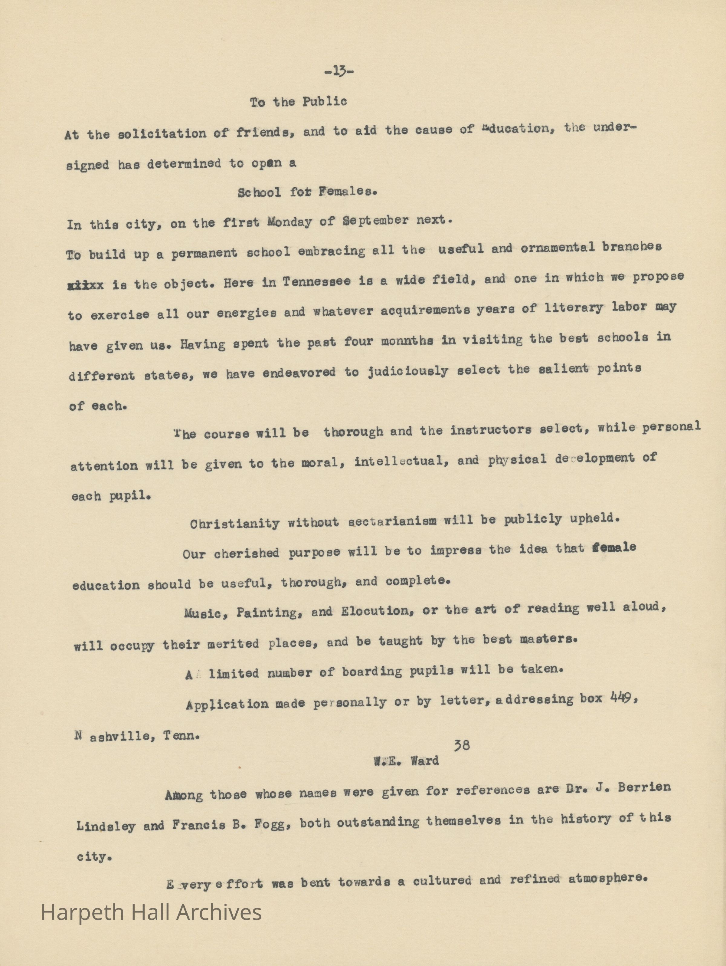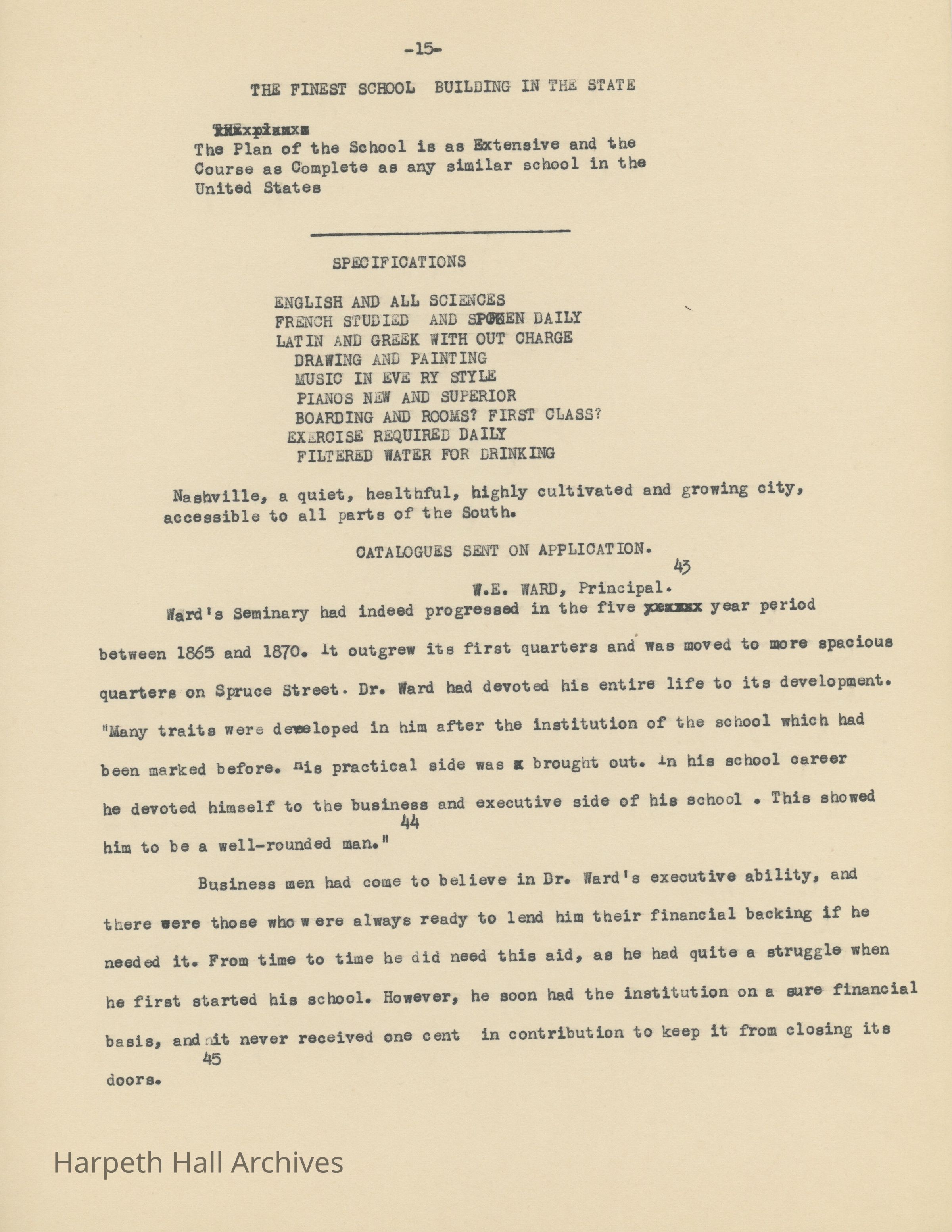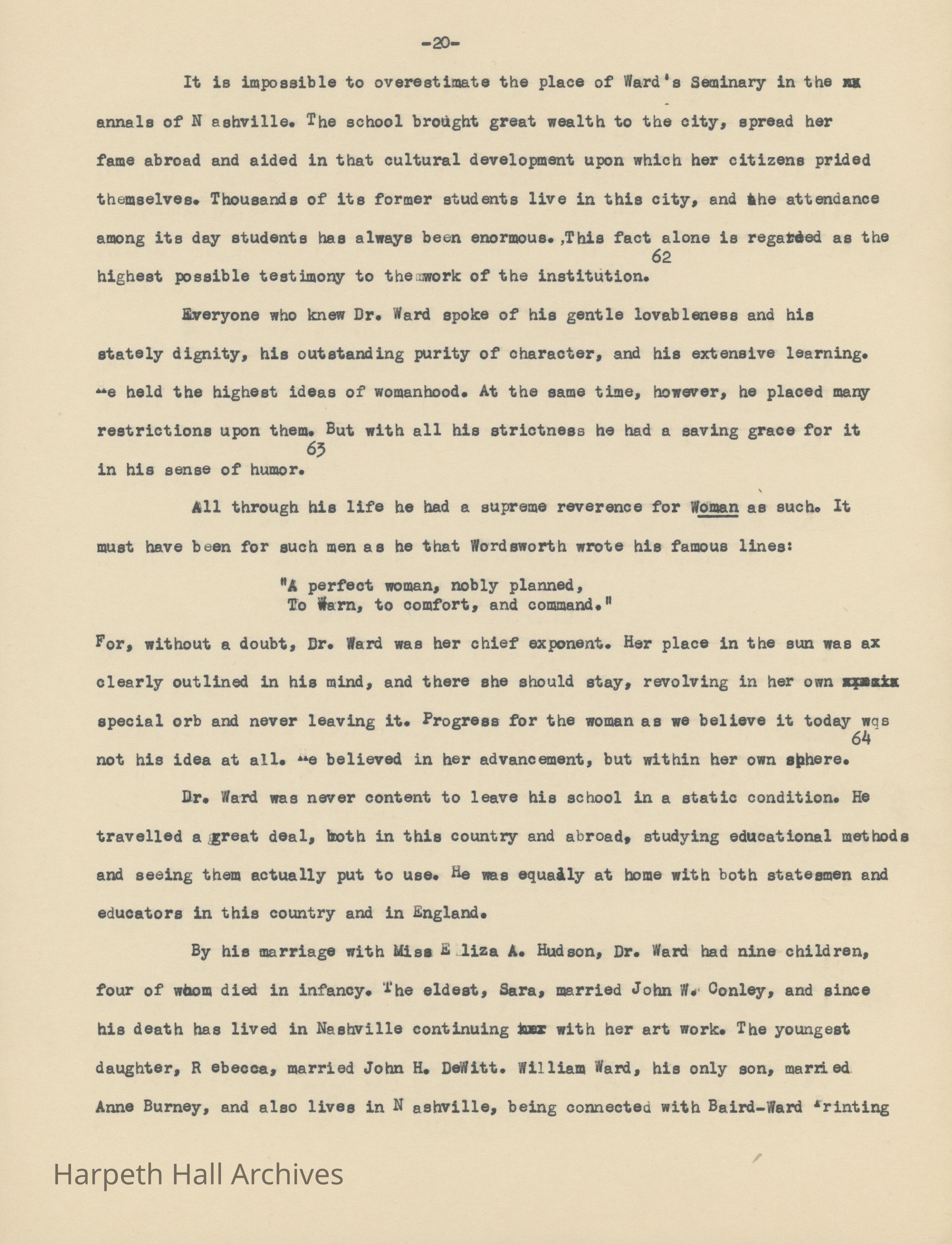 An essay about Dr. William E. Ward the creation of Wards Seminary written by Ward-Belmont Prudence Polk.Collection