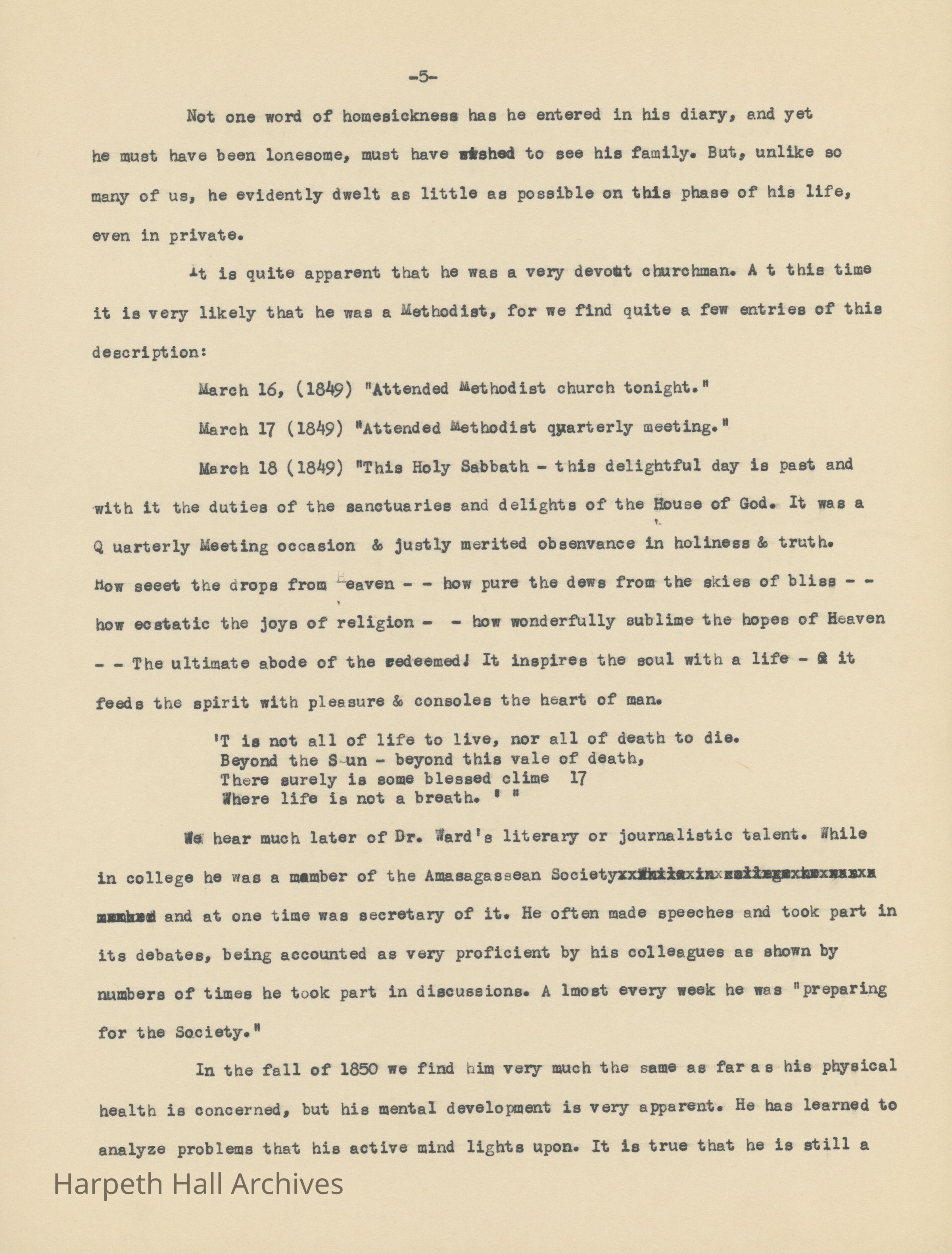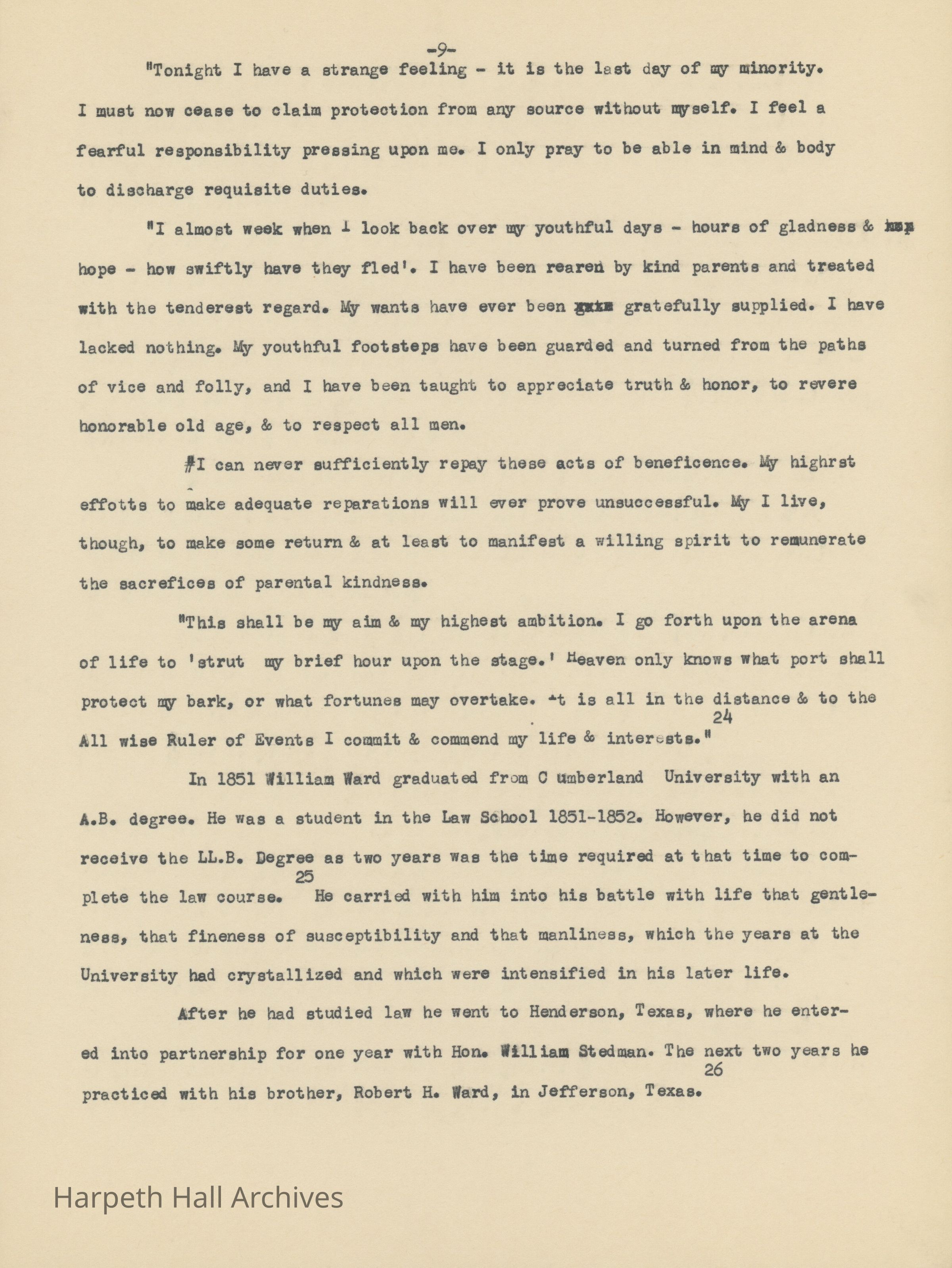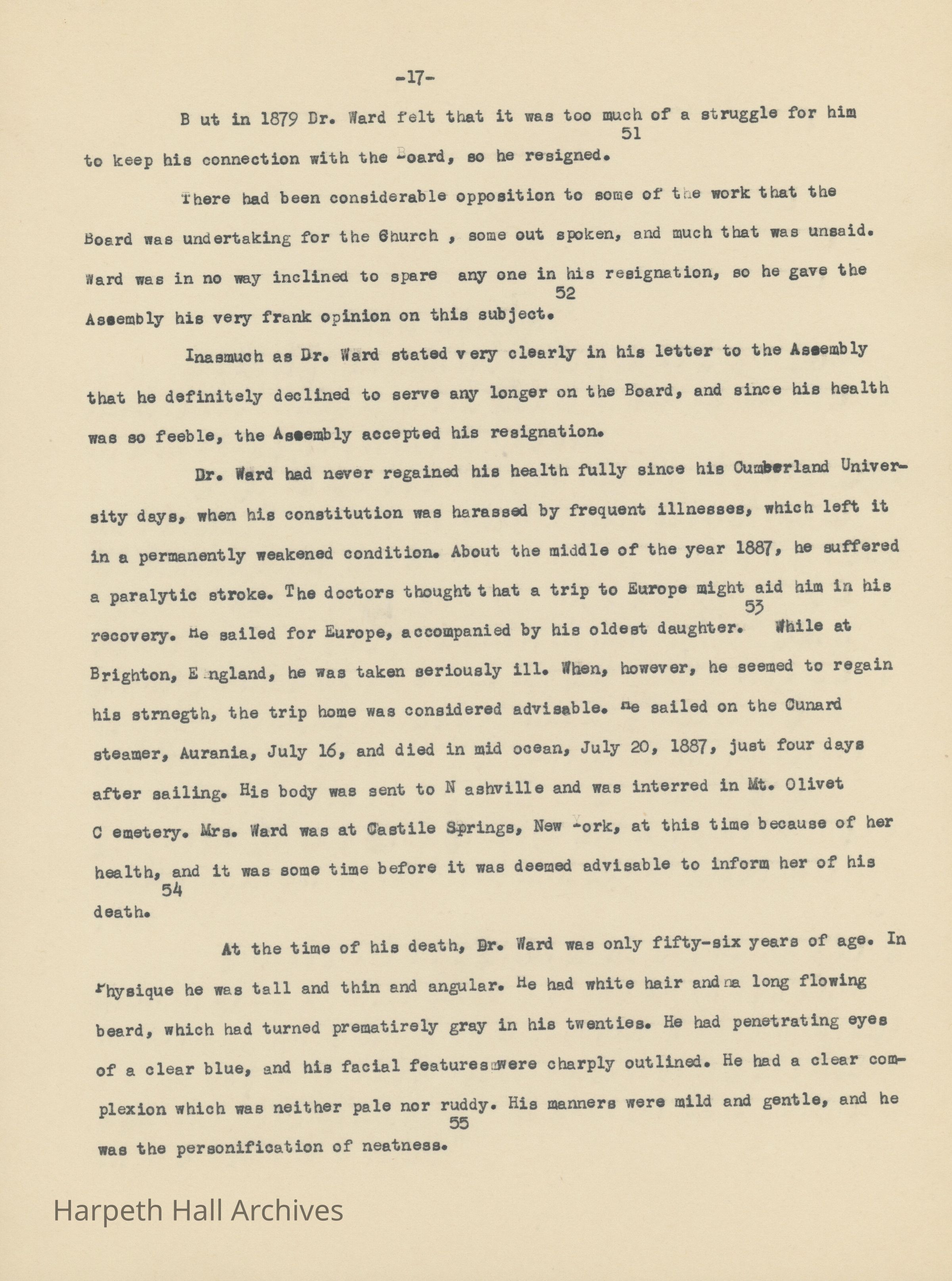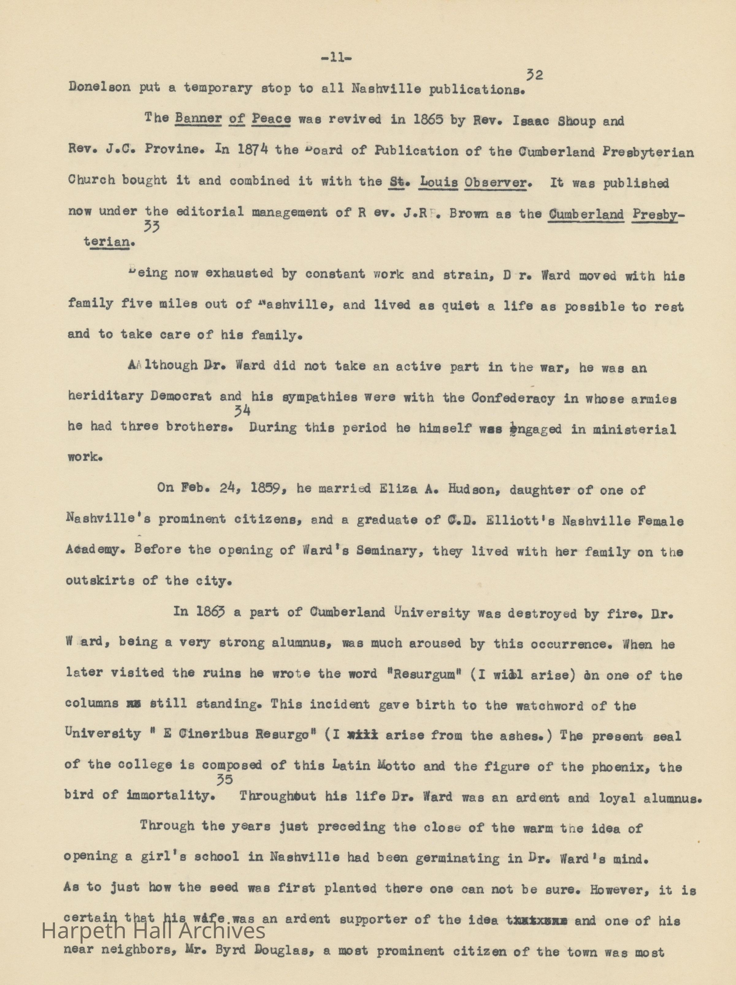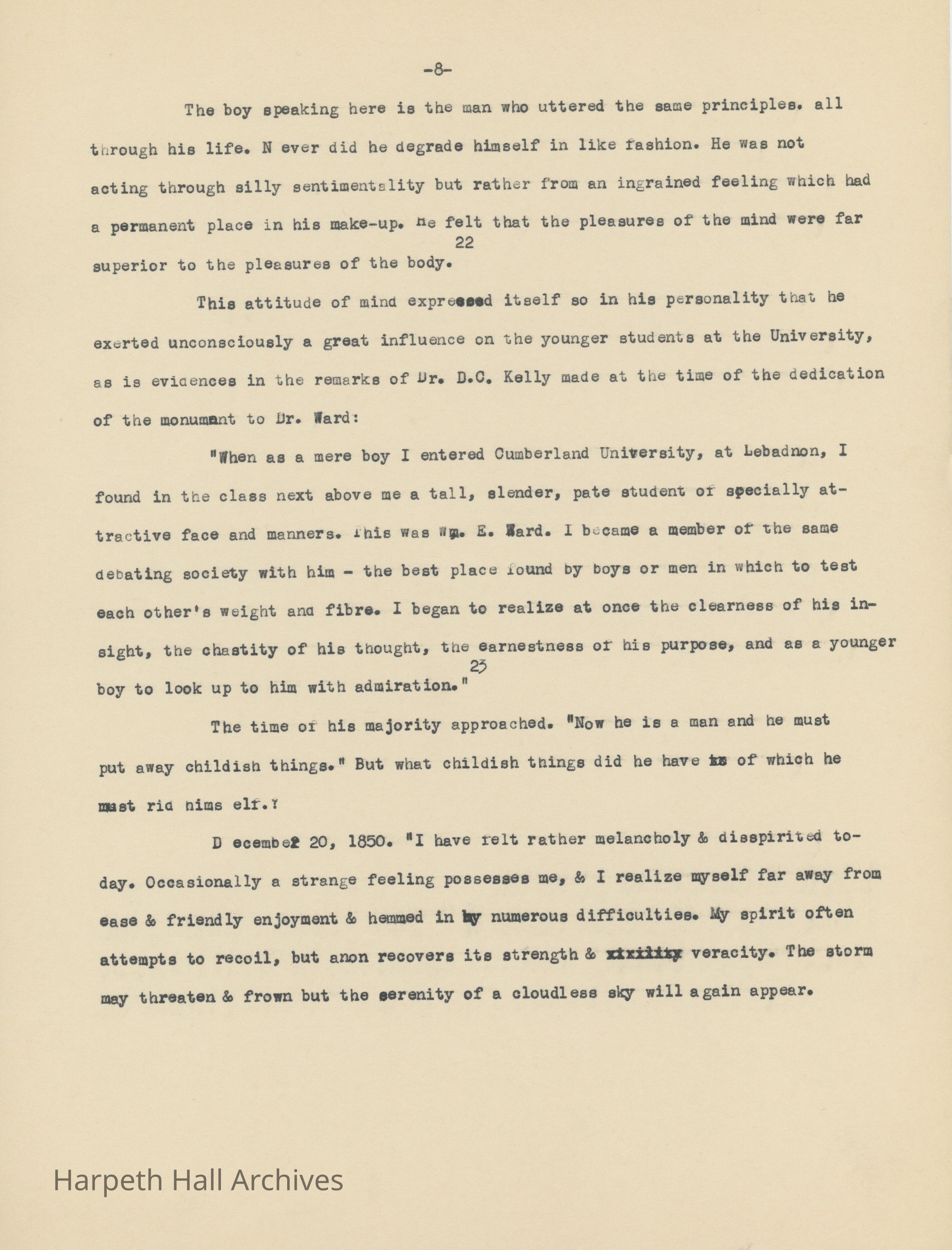 An essay about Dr. William E. Ward the creation of Wards Seminary written by Ward-Belmont Prudence Polk.Collection