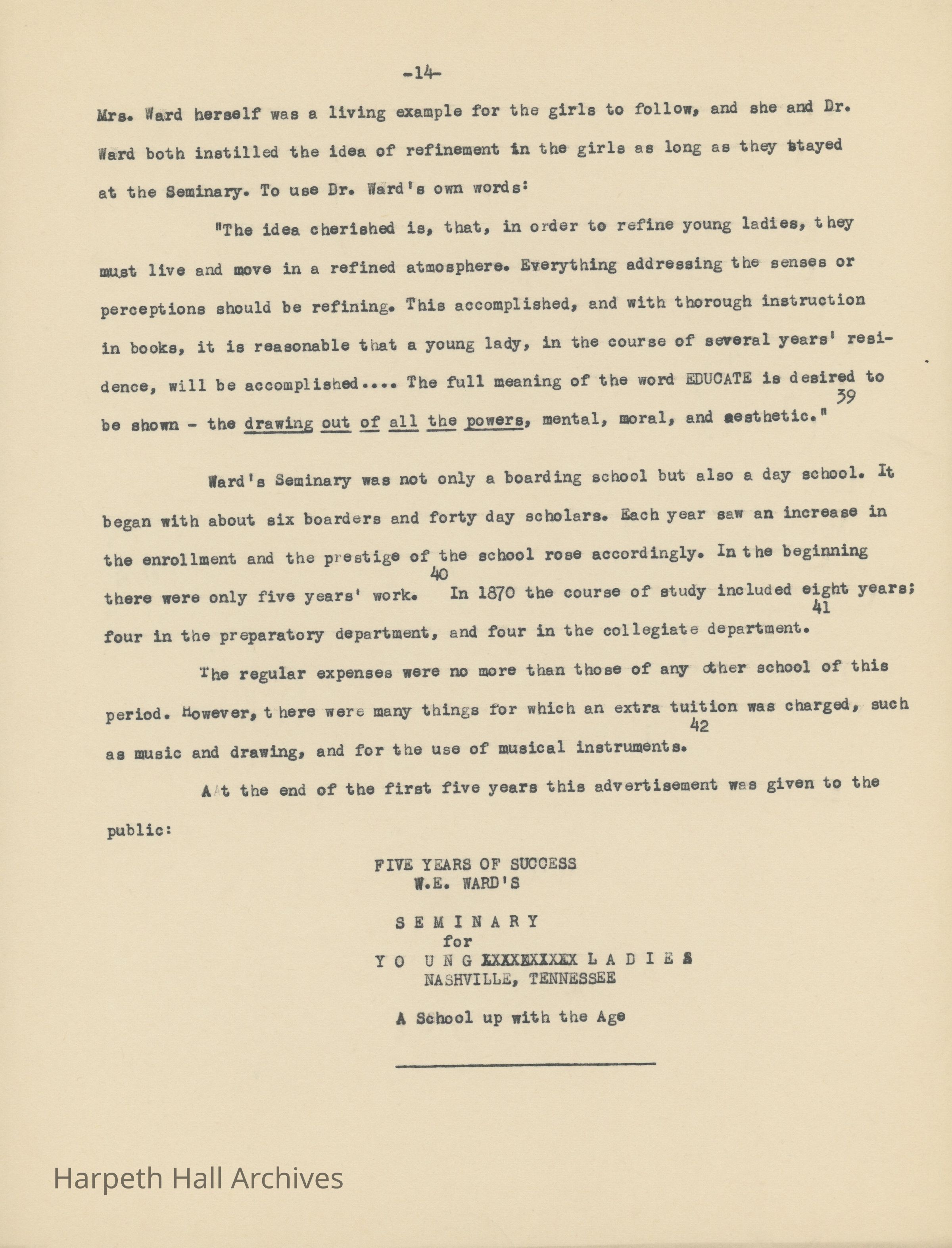 Ward-Belmont, Ward Seminary, History, Essay
