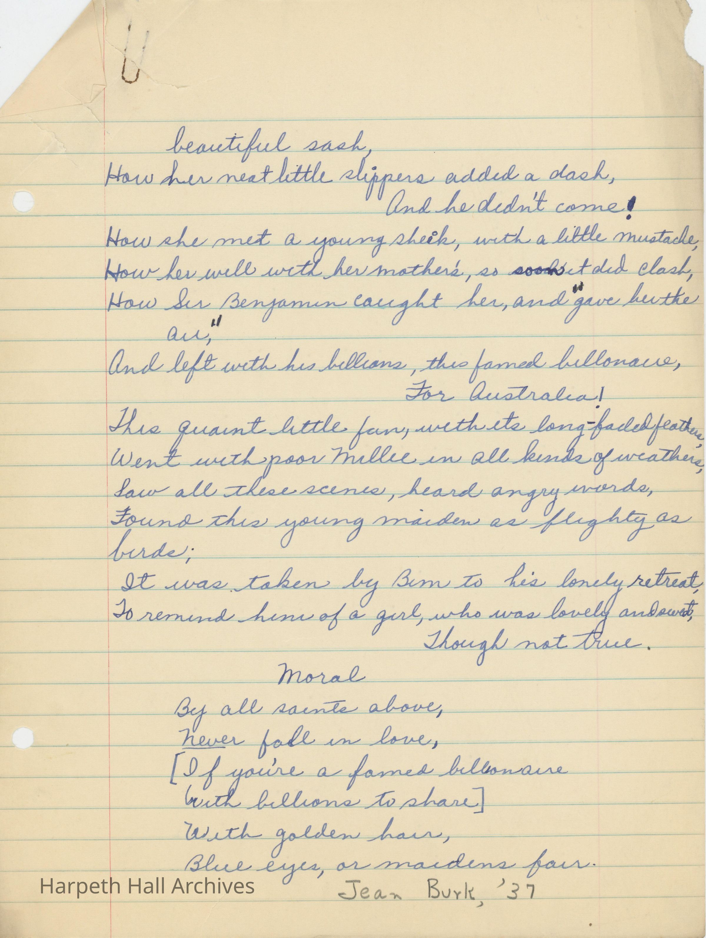 An essay entitled, "A Faded Fan" written by Ward-Belmont freshman Jean Burk (1937).