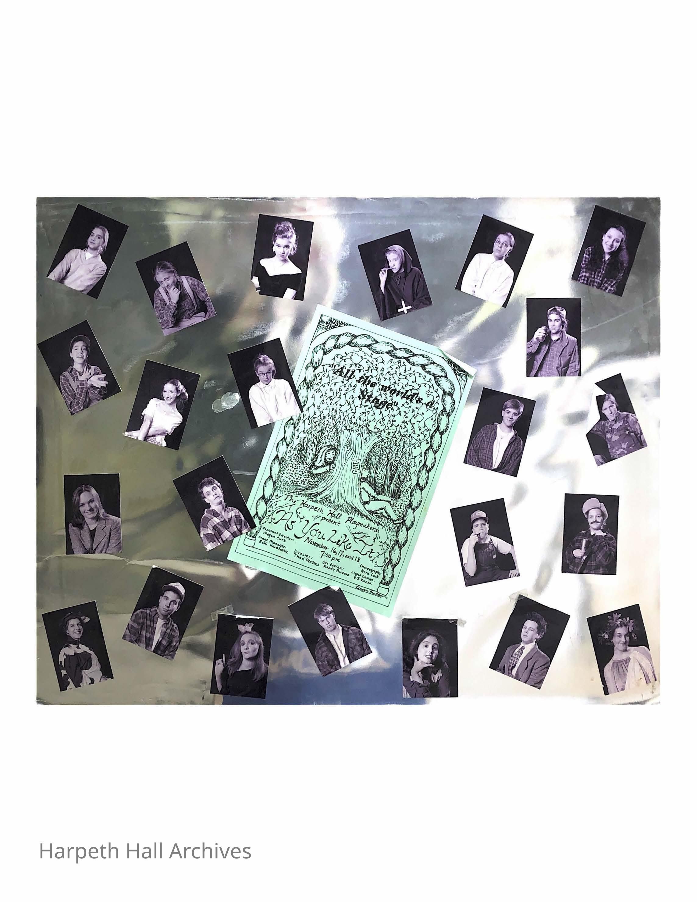The cast board for the showing of All the World's a Stage put on by the Harpeth Hall Playmakers.
