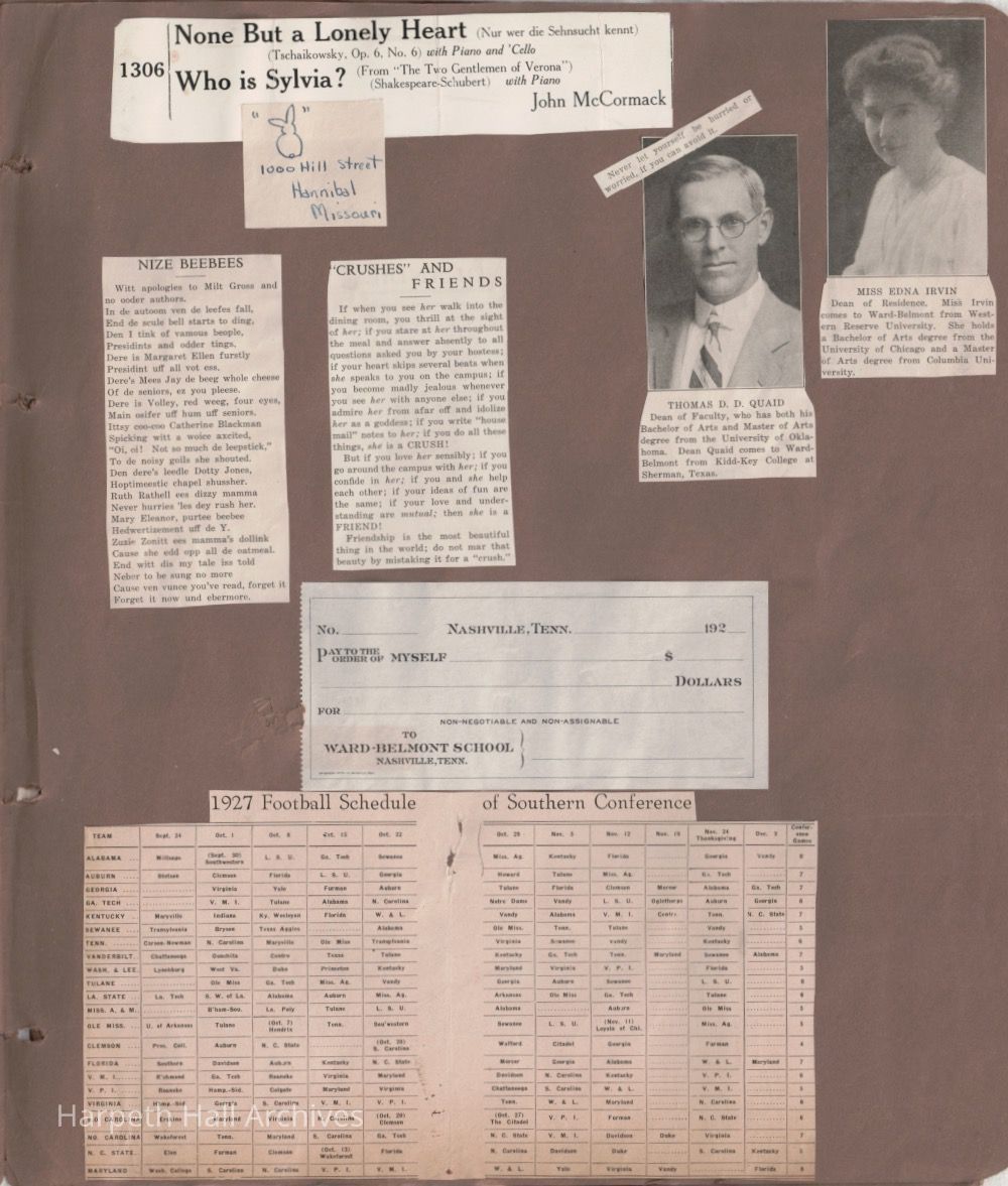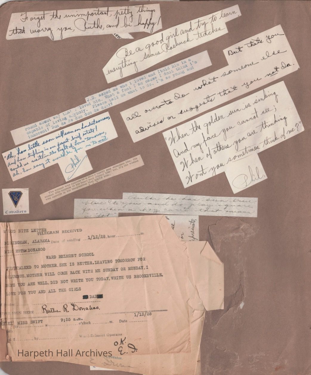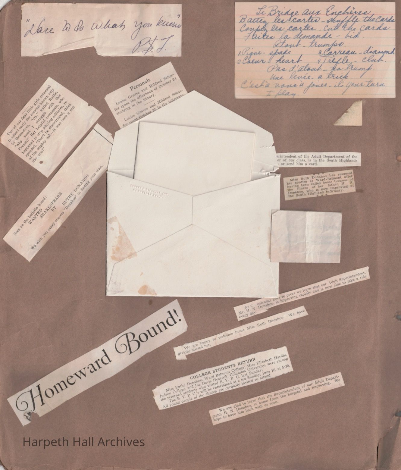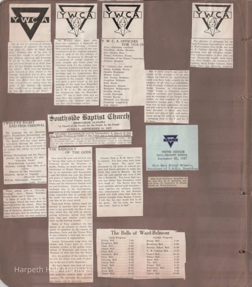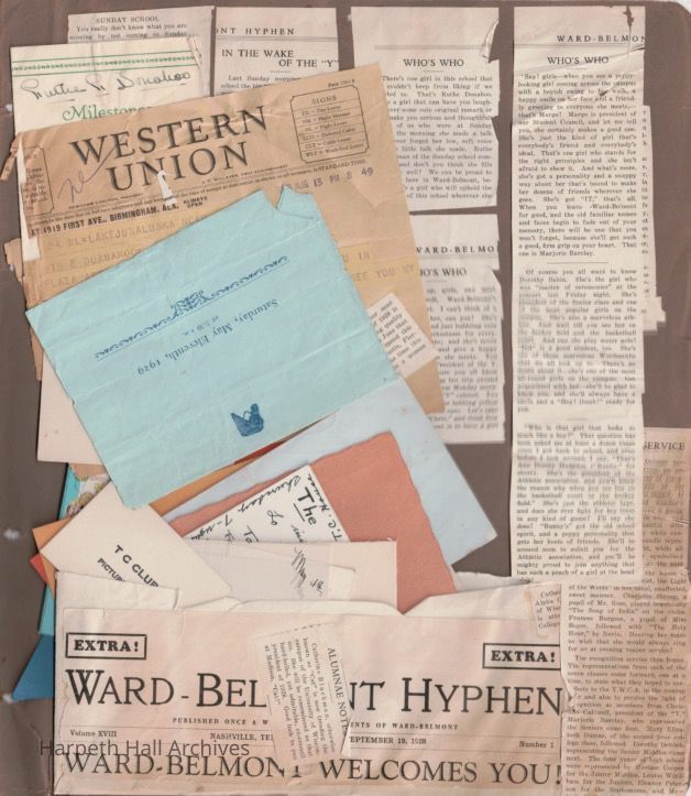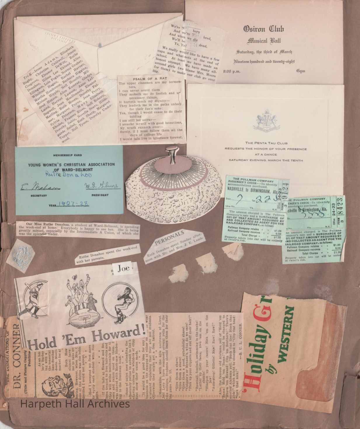 Ruth Donahoo, Class of 1929, documents her time at Ward-Belmont (1927-1929) with photographs, notes, invitations, newspaper articles, and musical programs. Scrapbook digitized and video created by Capell Simmons, Class of 1988, Digital Archiving Video Creation, capellsimmons@comcast.net.Collection