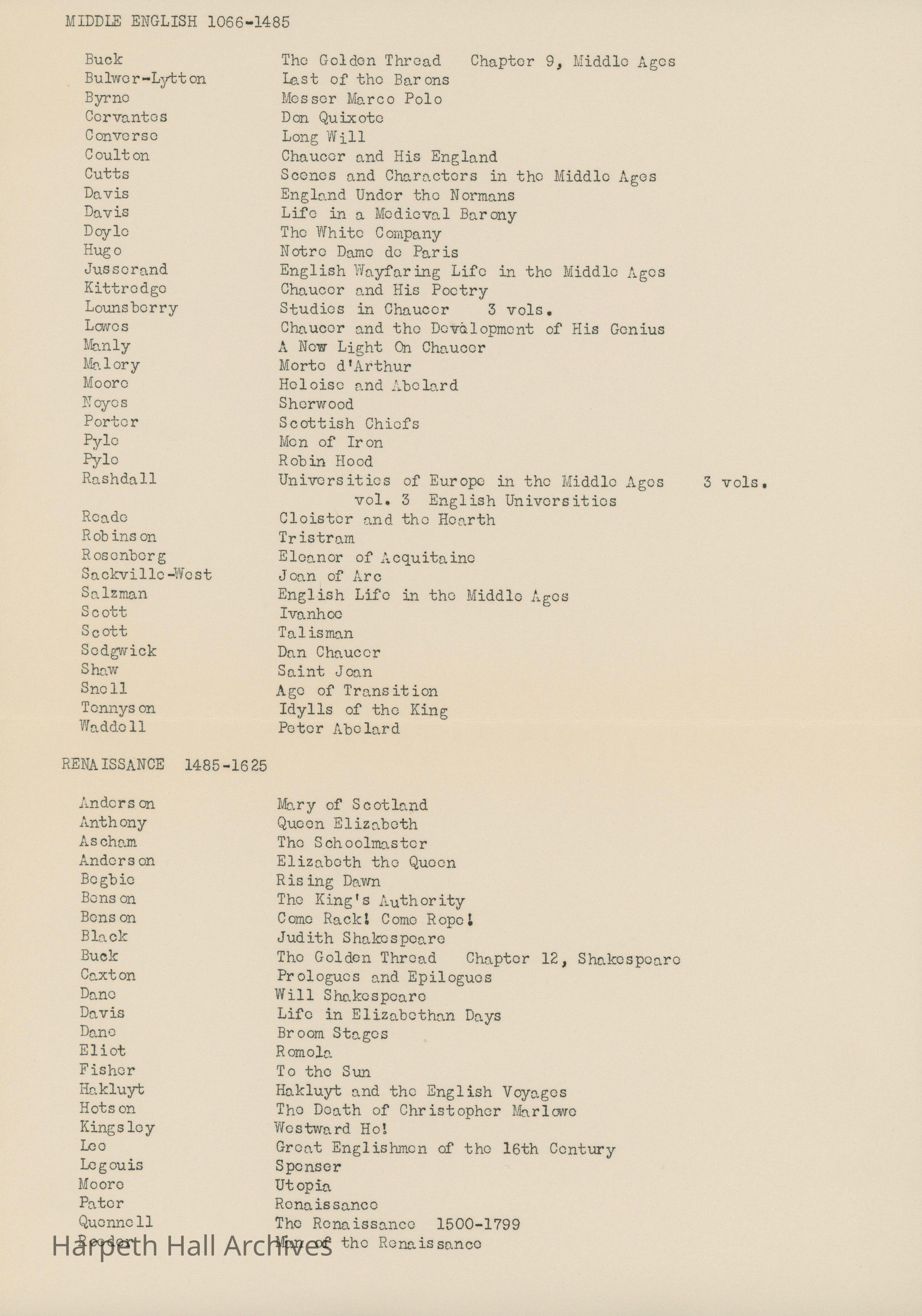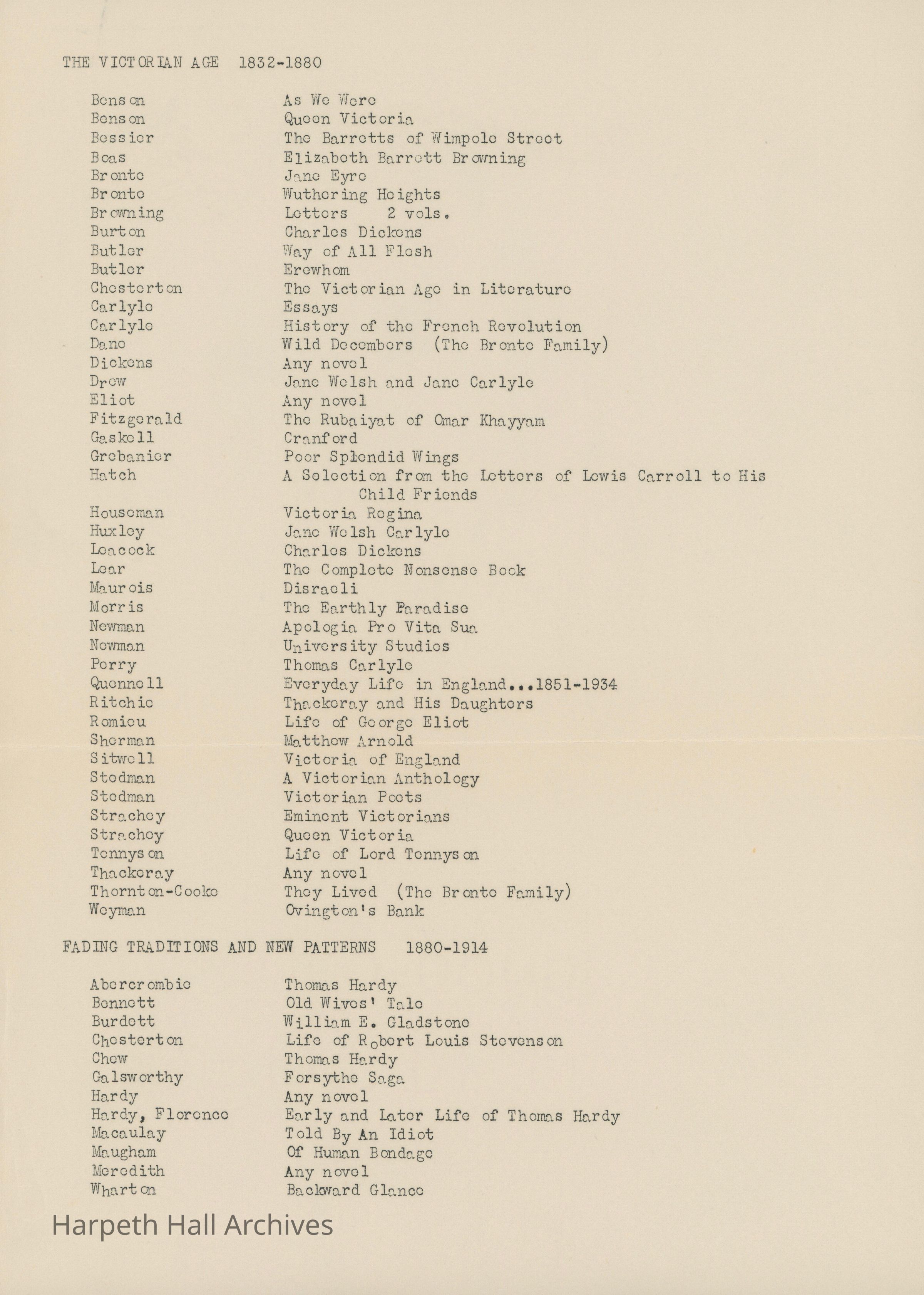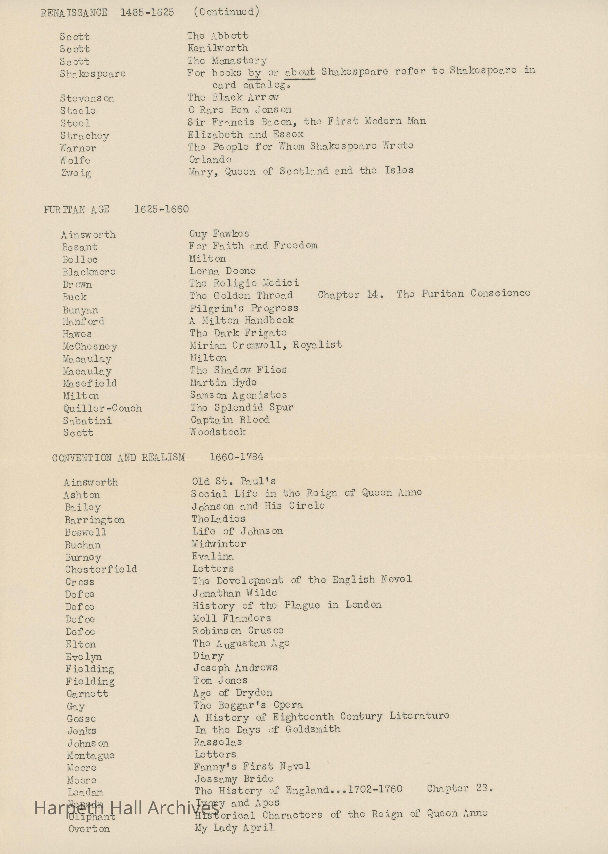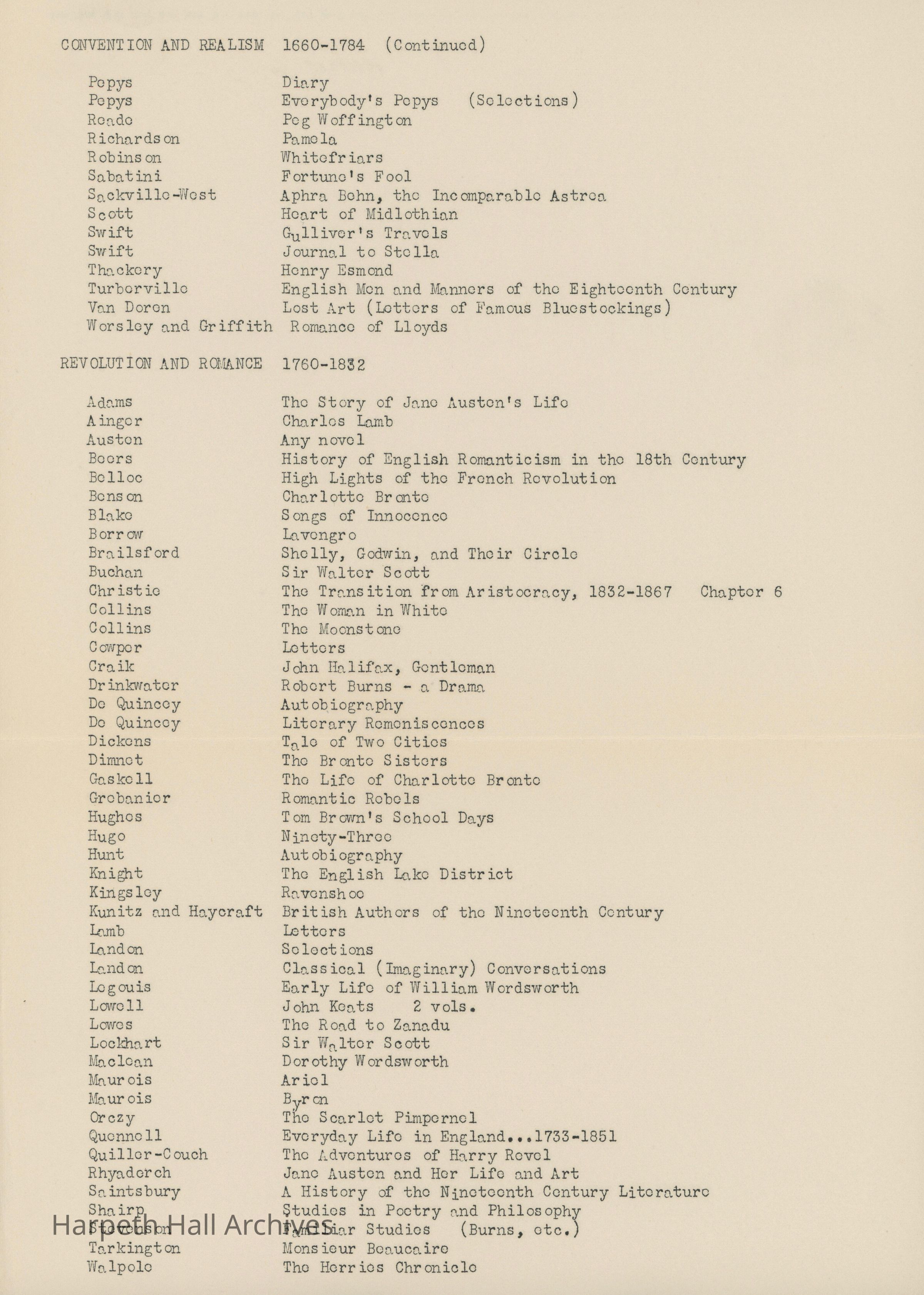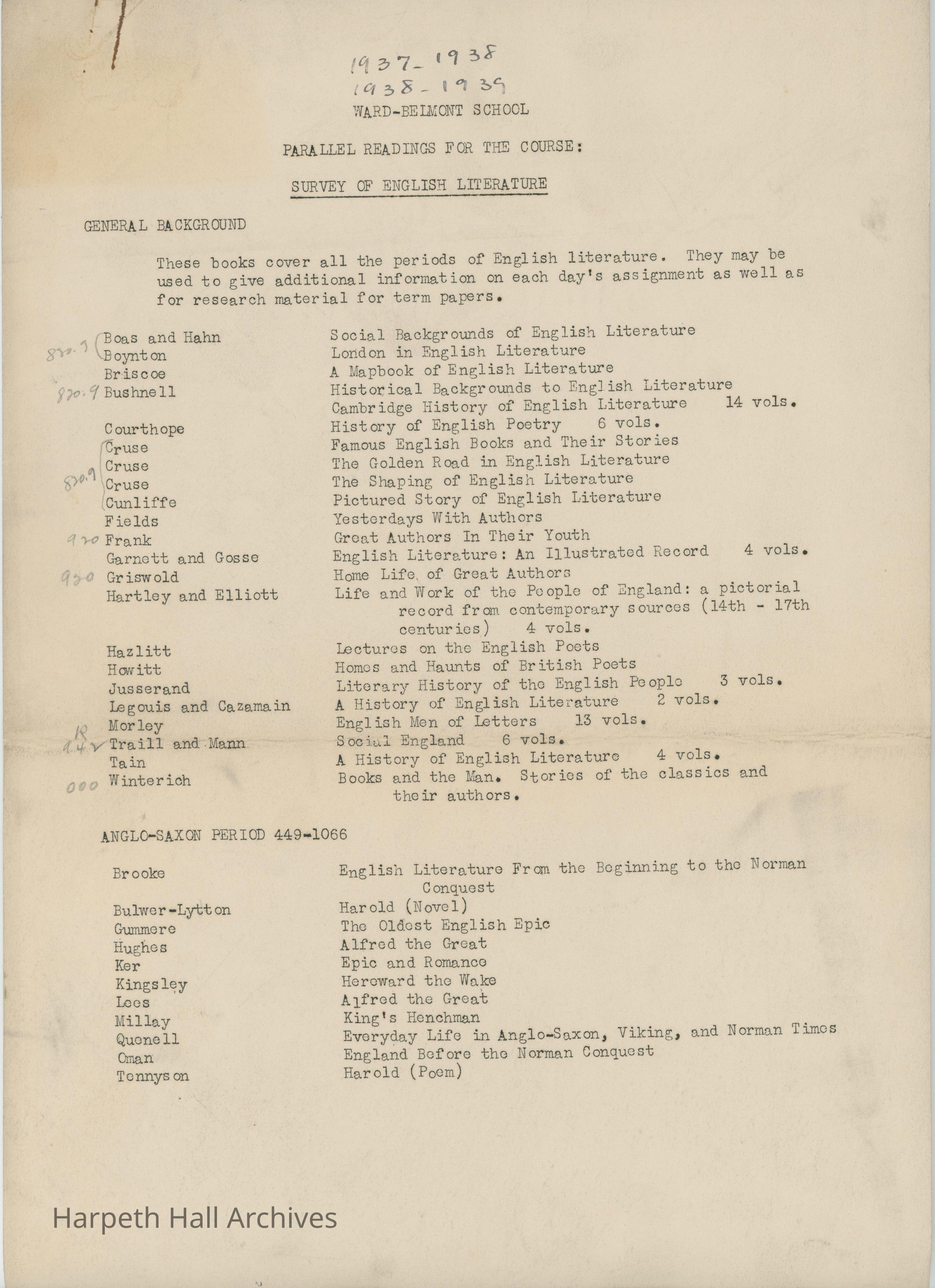 A Ward-Belmont English literature survey from various English classes and eras.Collection