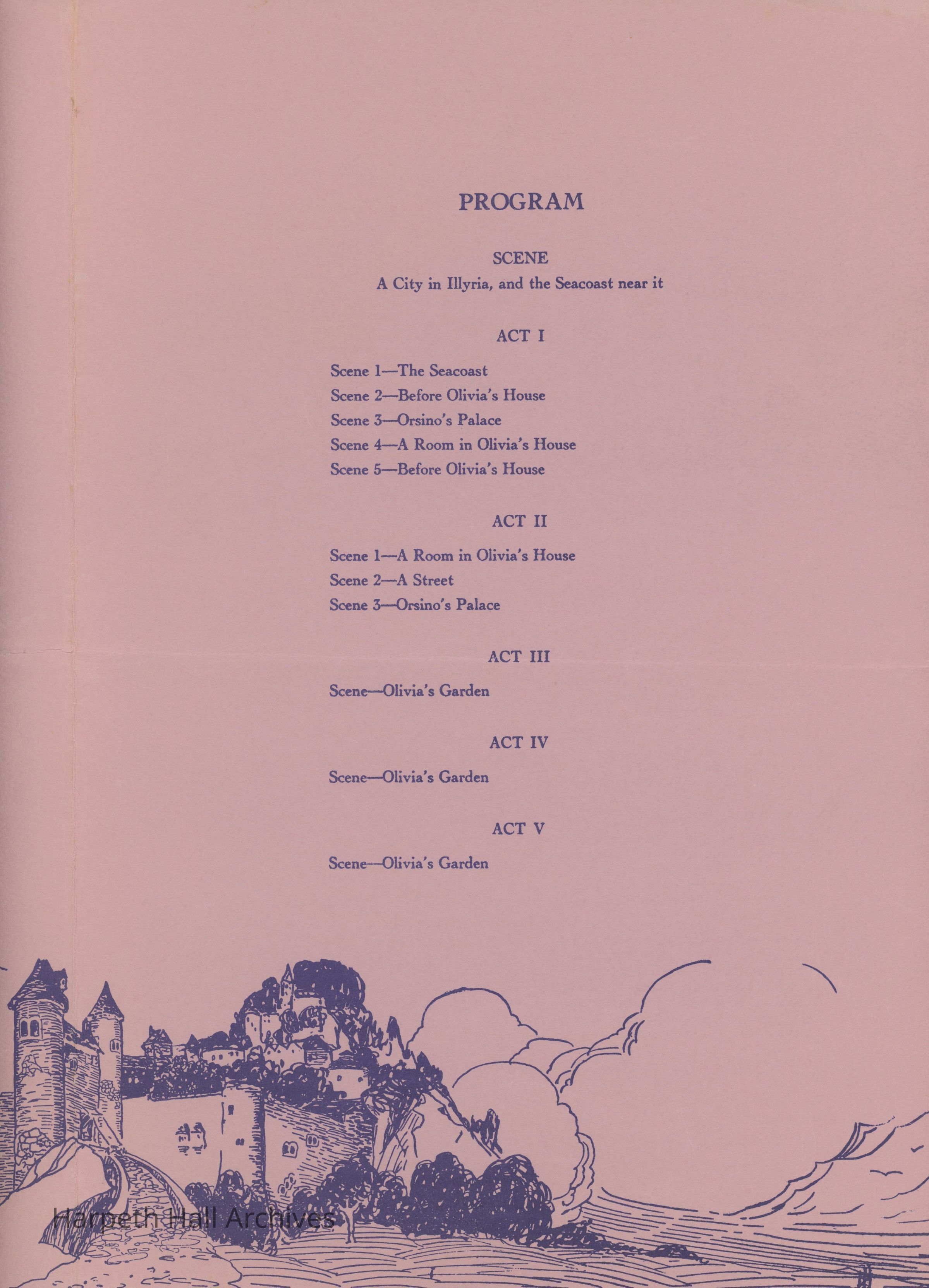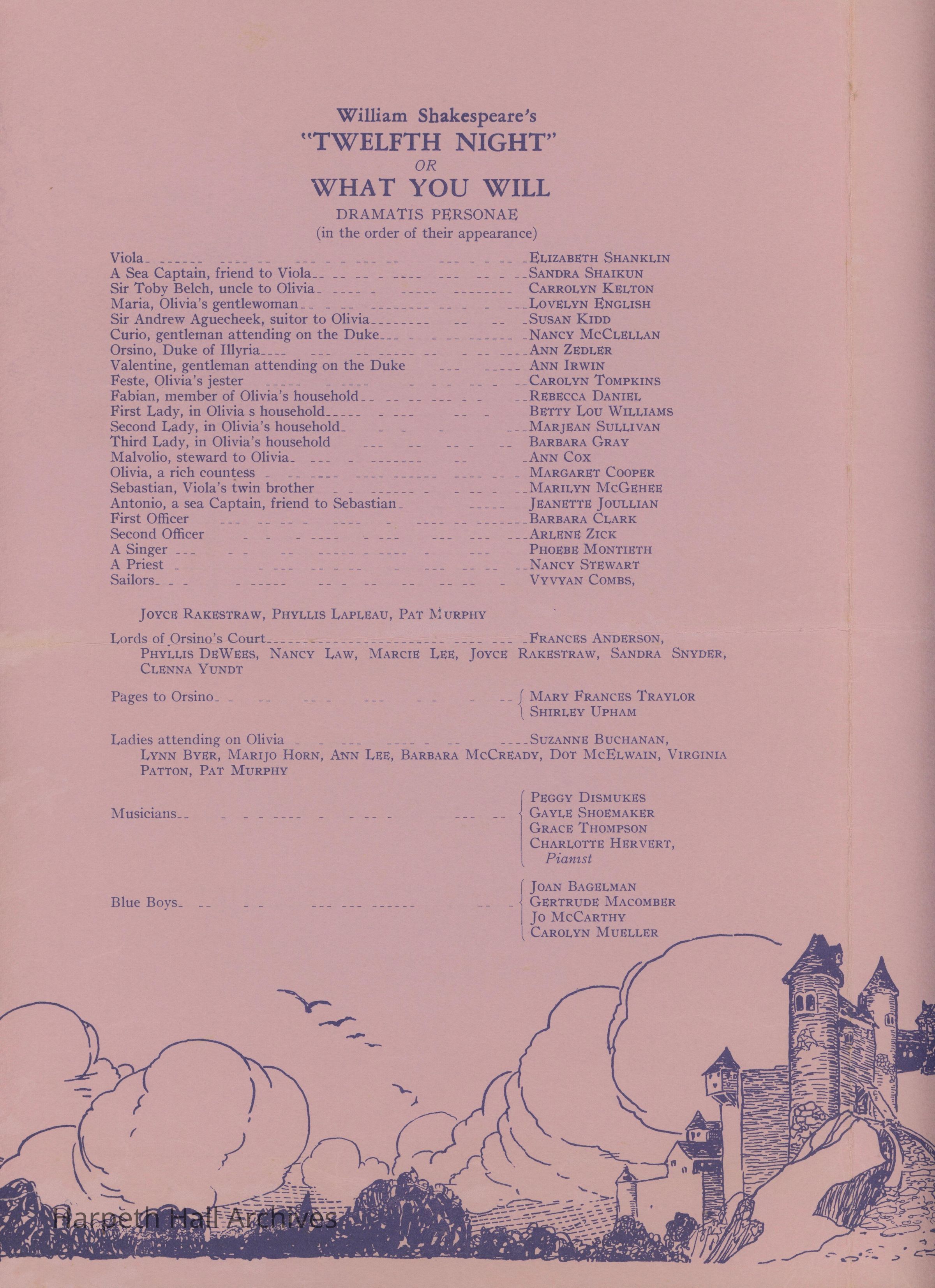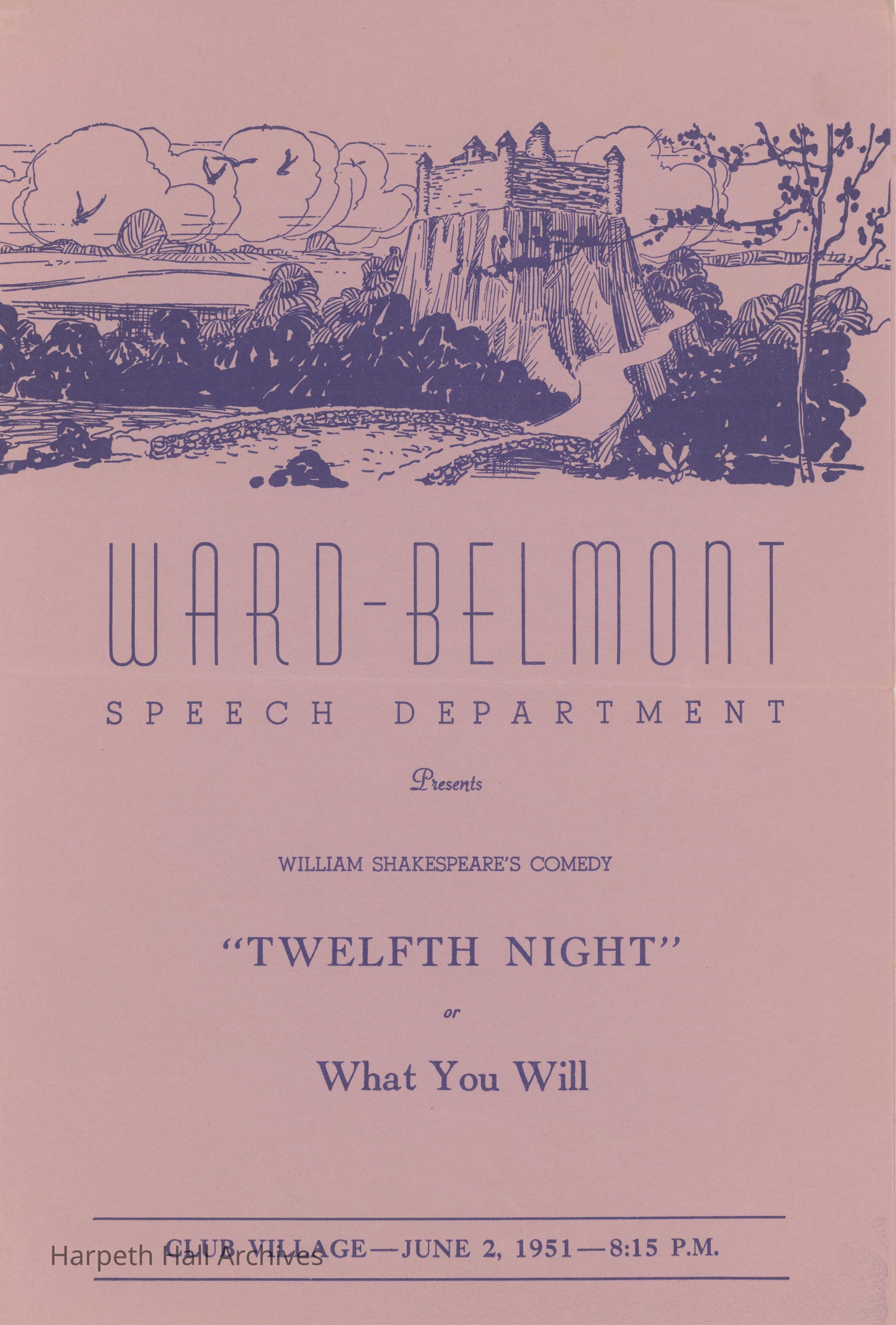 The playbill for the Ward-Belmont showing of "Twelfth Night." It opened on June 2nd, 1951 at 8:15 pm.Collection