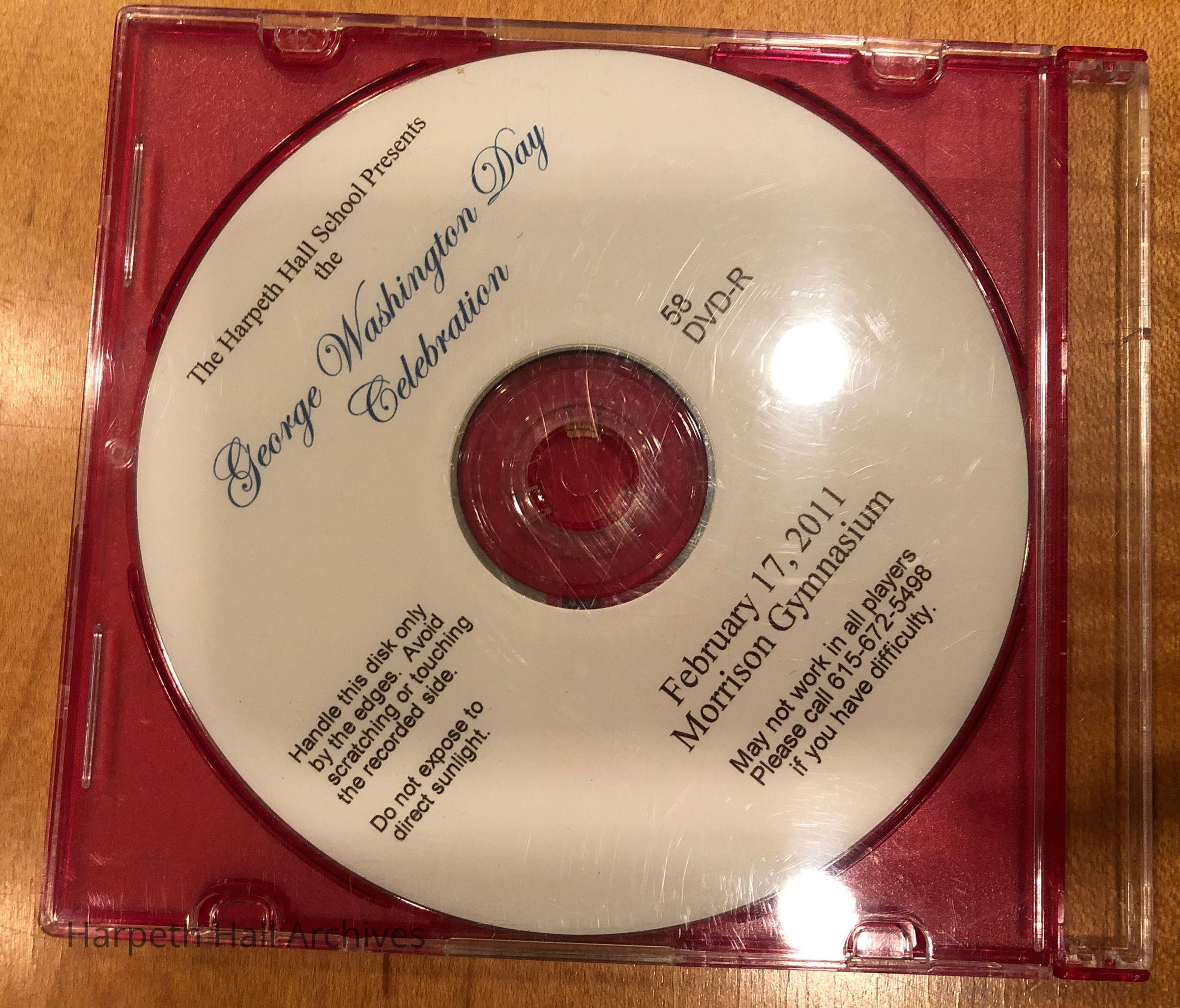 A DVD of the February 17, 2011 George Washington Celebration at Harpeth Hall. It took place in Morrison Gym.Context