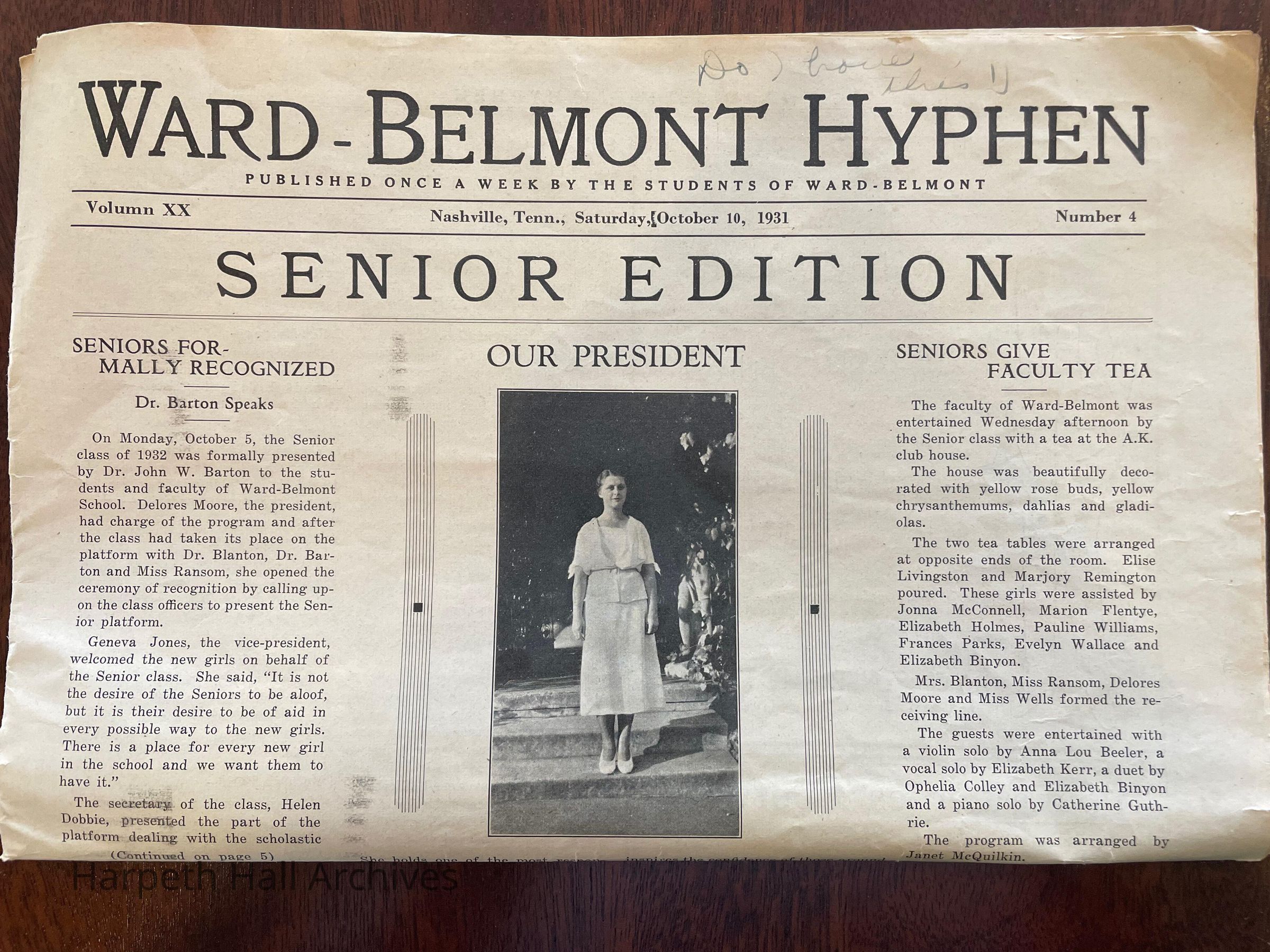 The Ward-Belmont Hyphen, volume 20, number 4 published on October 10, 1931, titled "Senior Edition."Collection