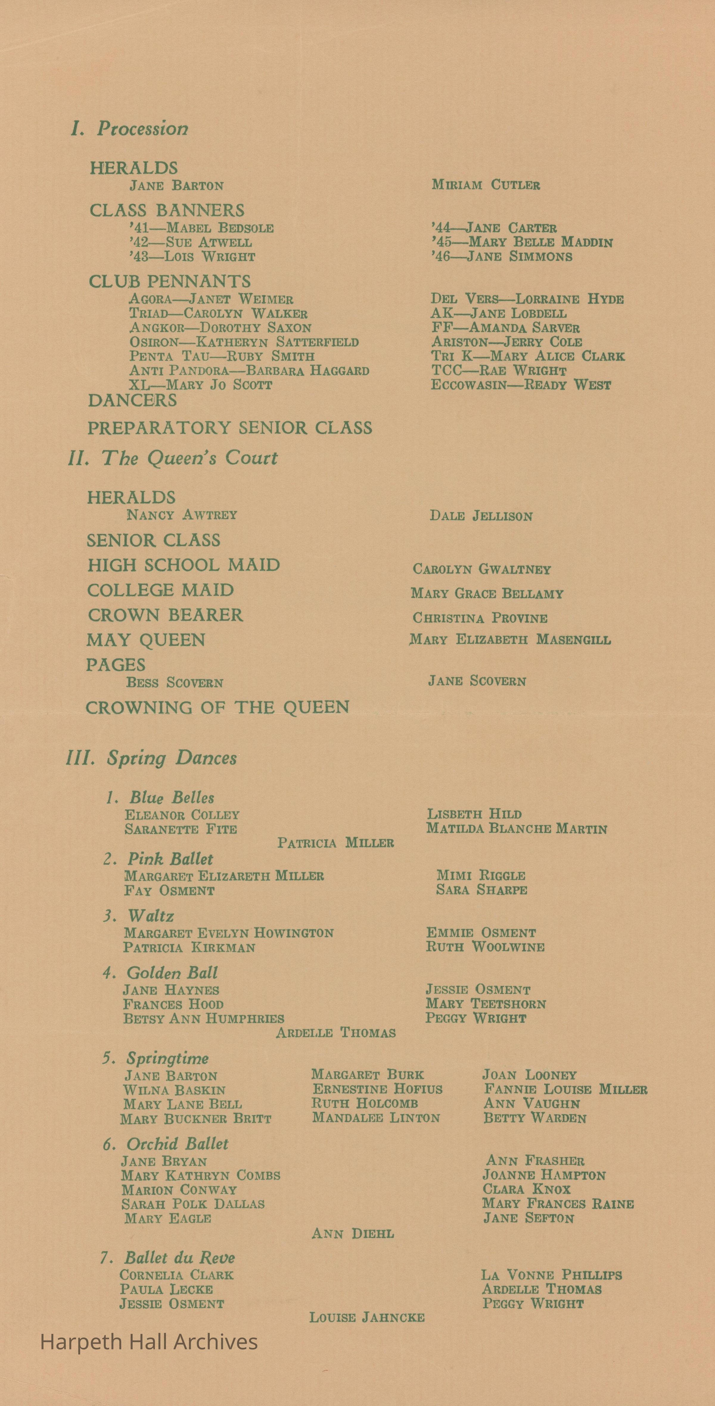 Ward-Belmont, May Festival, May Day, May Queen, Program, 1941