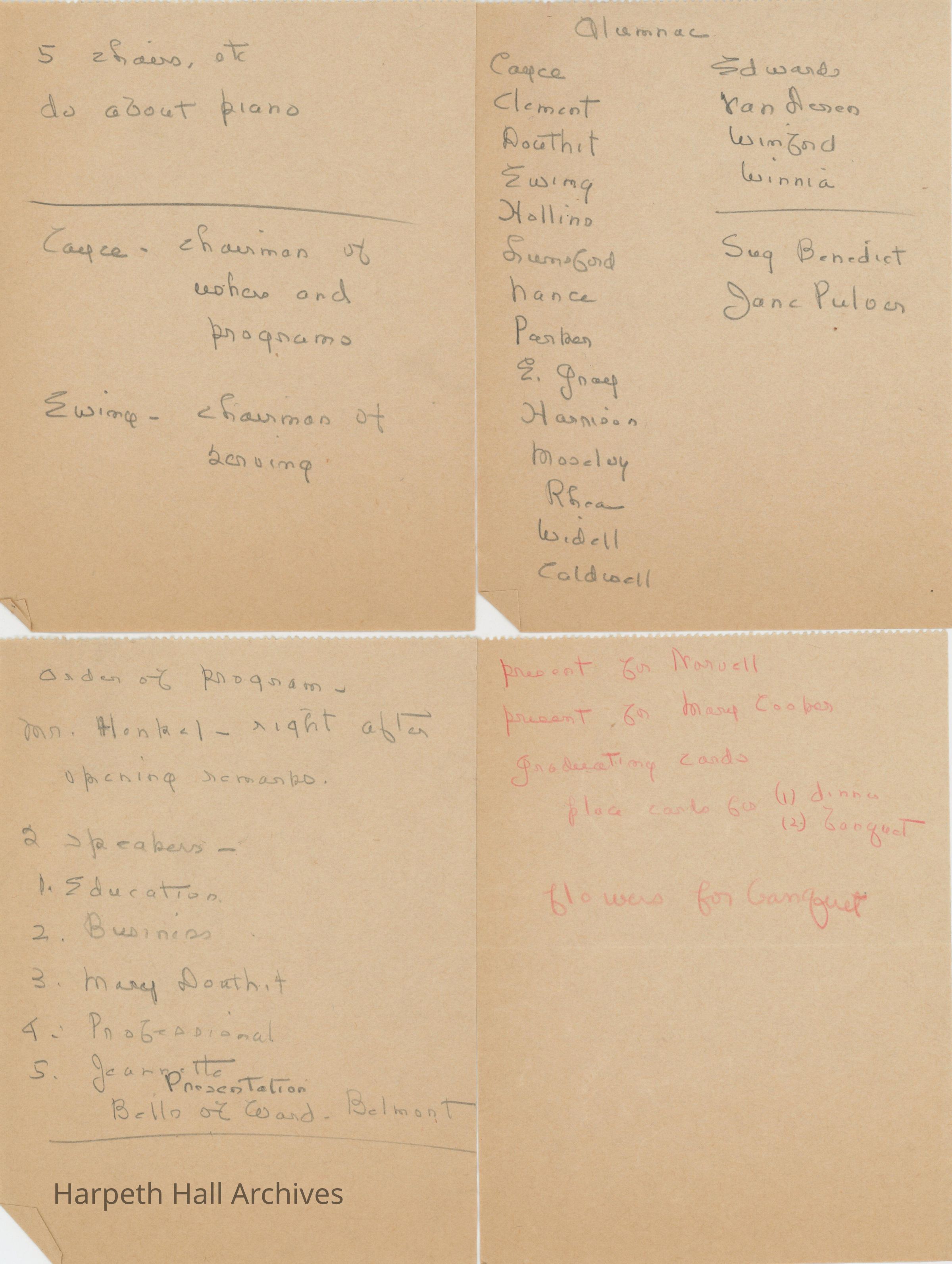 Notes regarding the 25th Ward-Belmont Anniversary celebration on May 13th, 1938.Collection