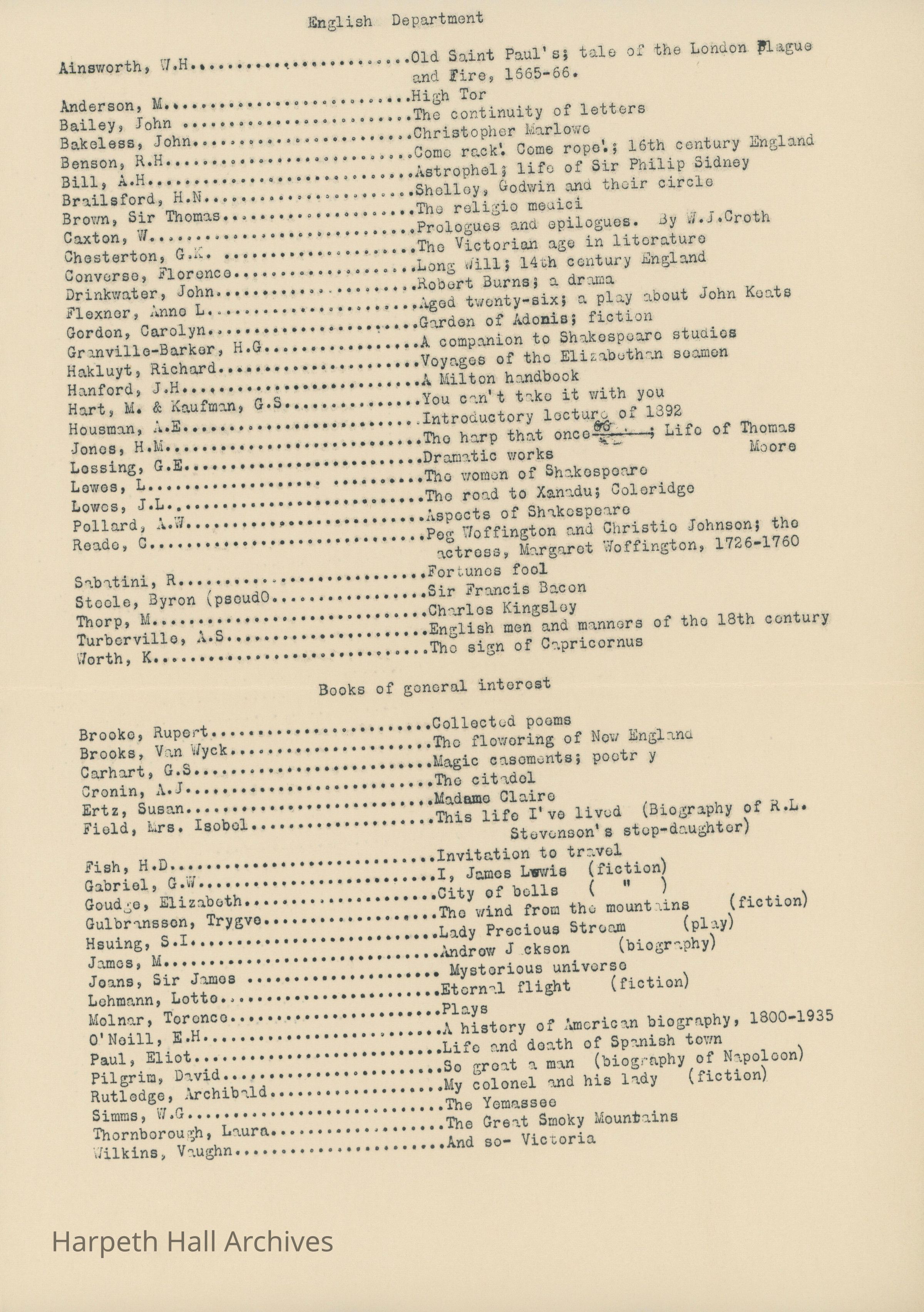 Harpeth Hall School ArchivesLexicon
