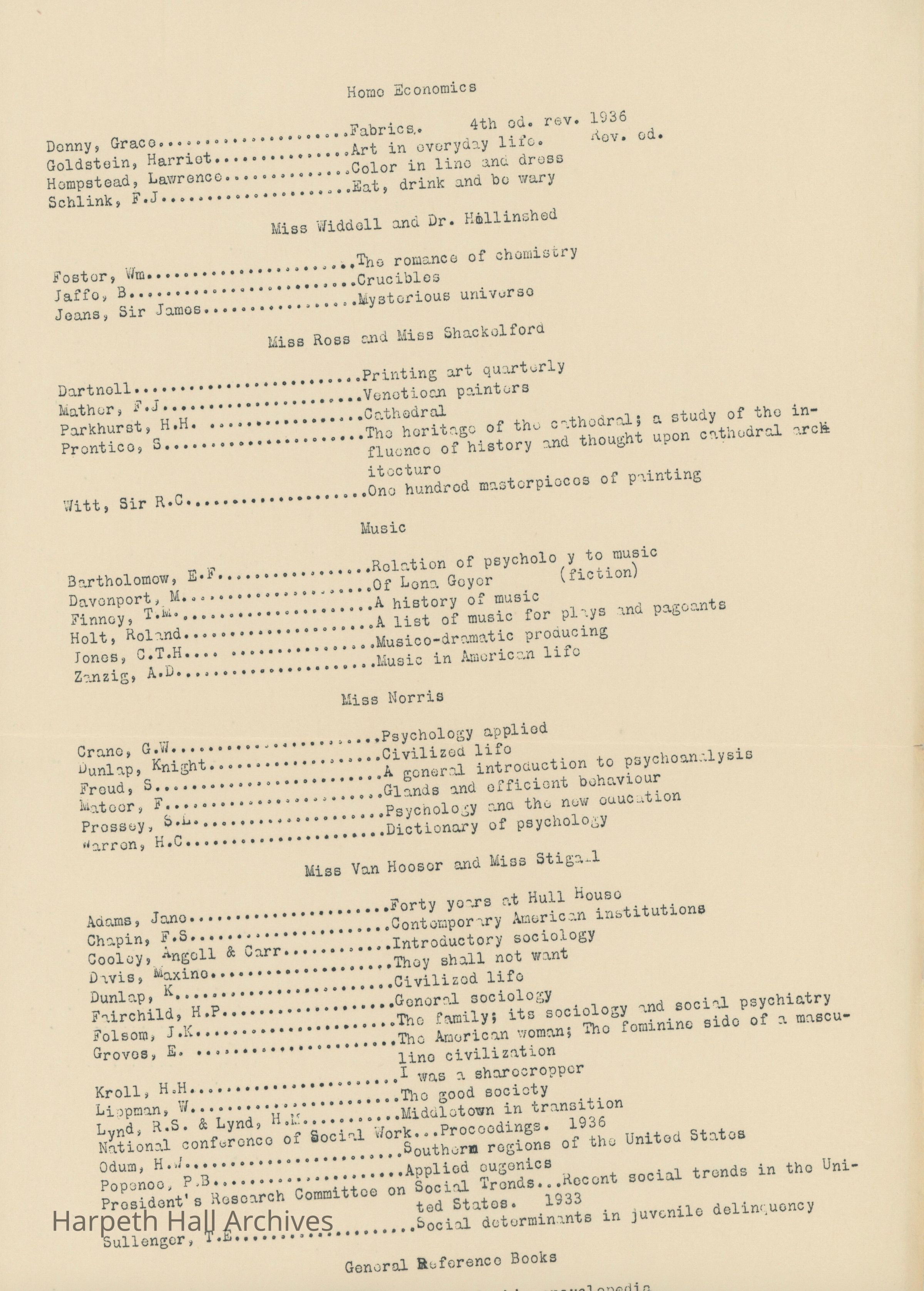New library titles made available during the fall of 1937, listed for the high school and for specific faculty members.Collection