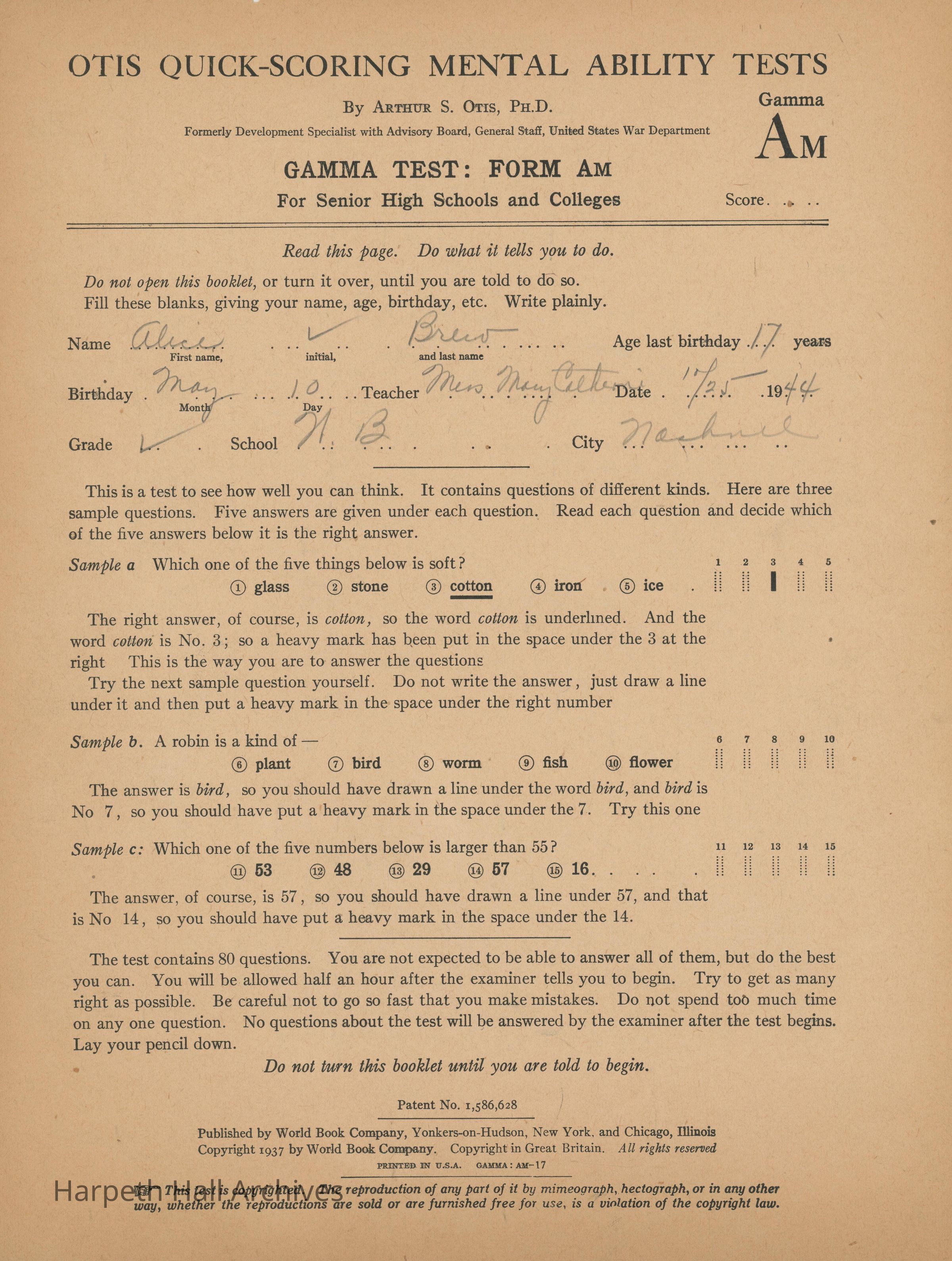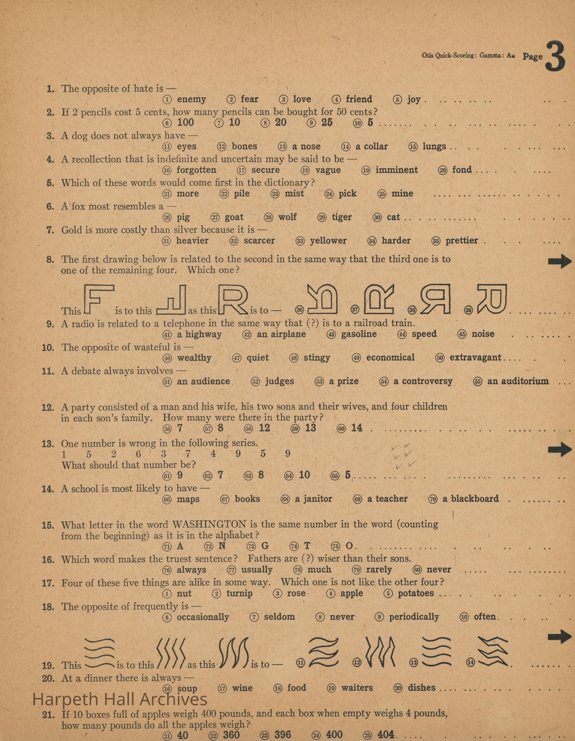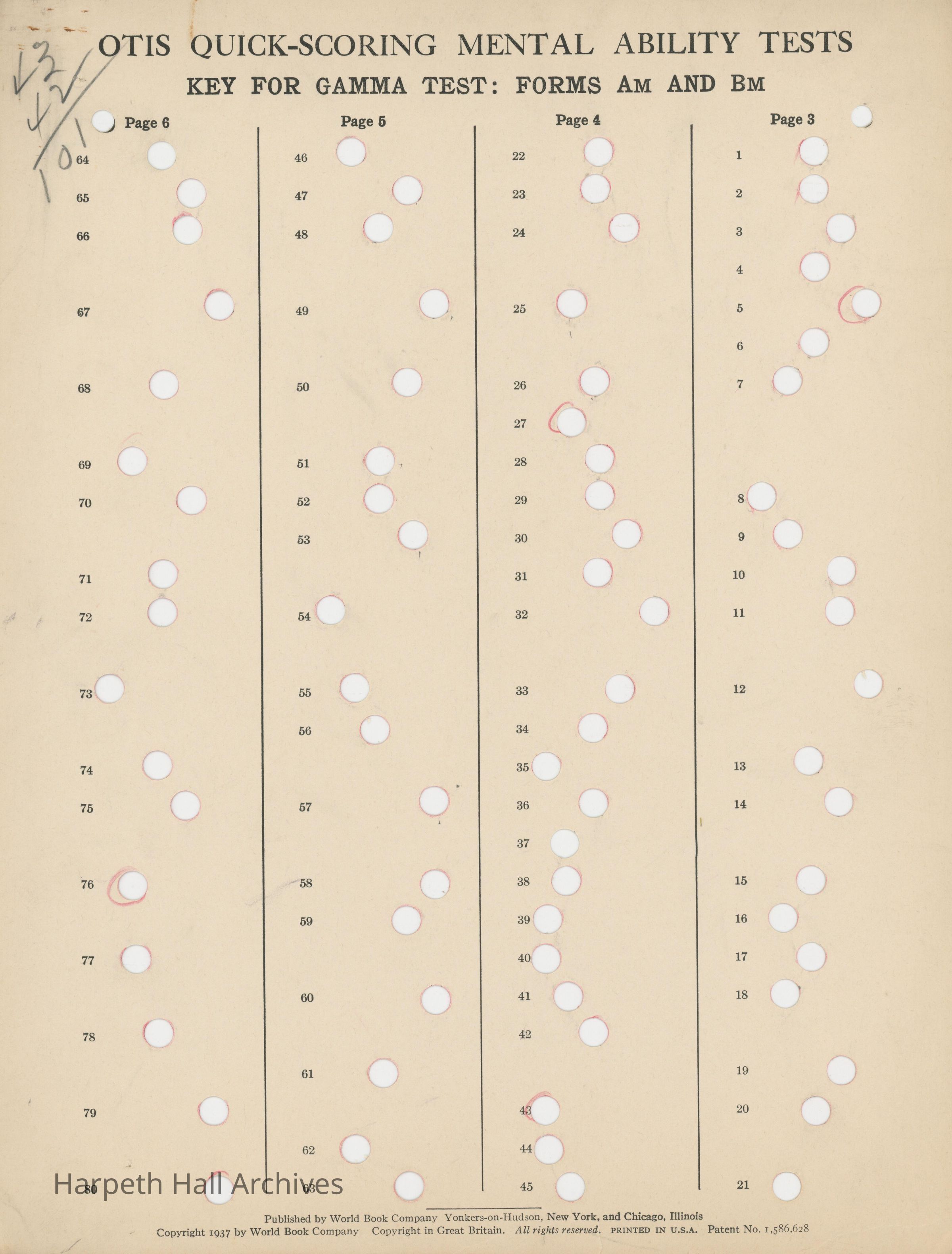 Otis quick-scoring mental ability tests with solutions used by Ward-Belmont students.