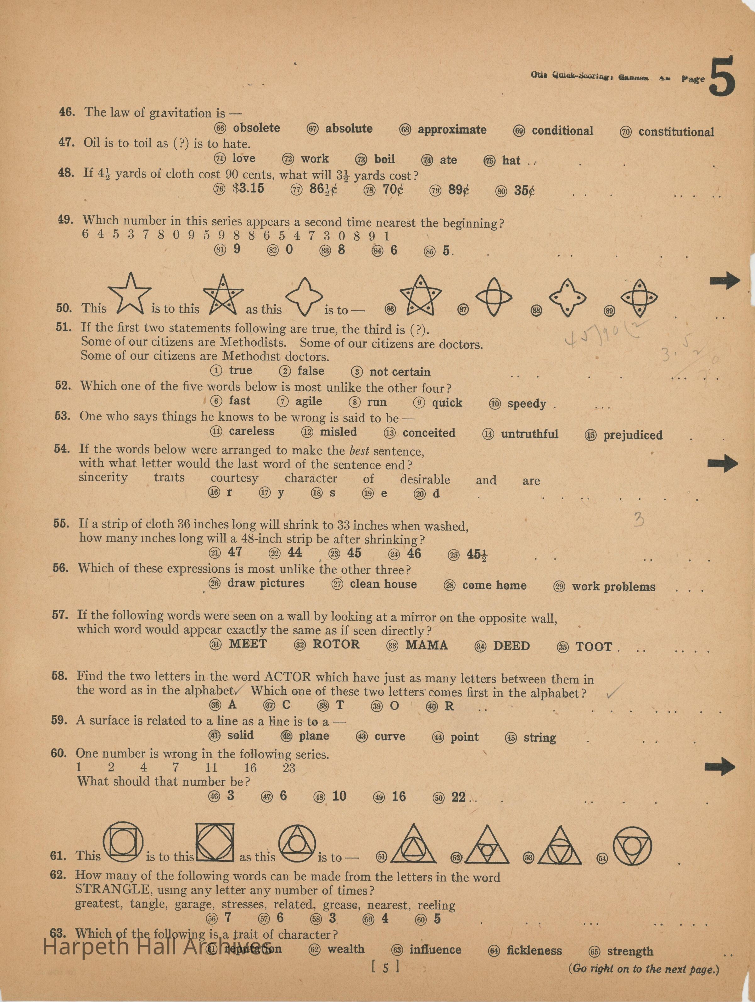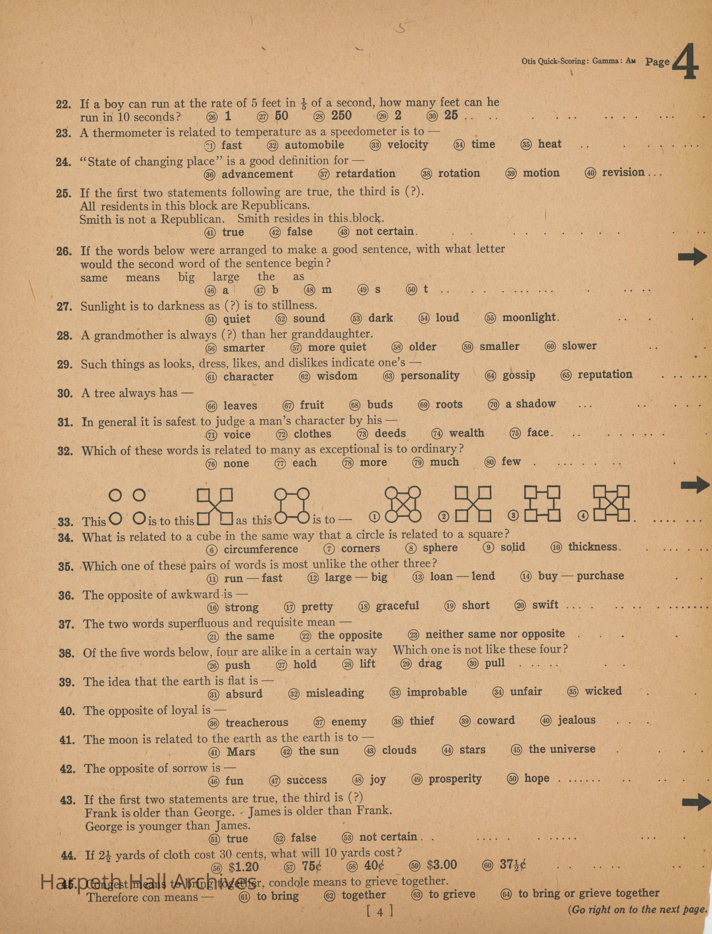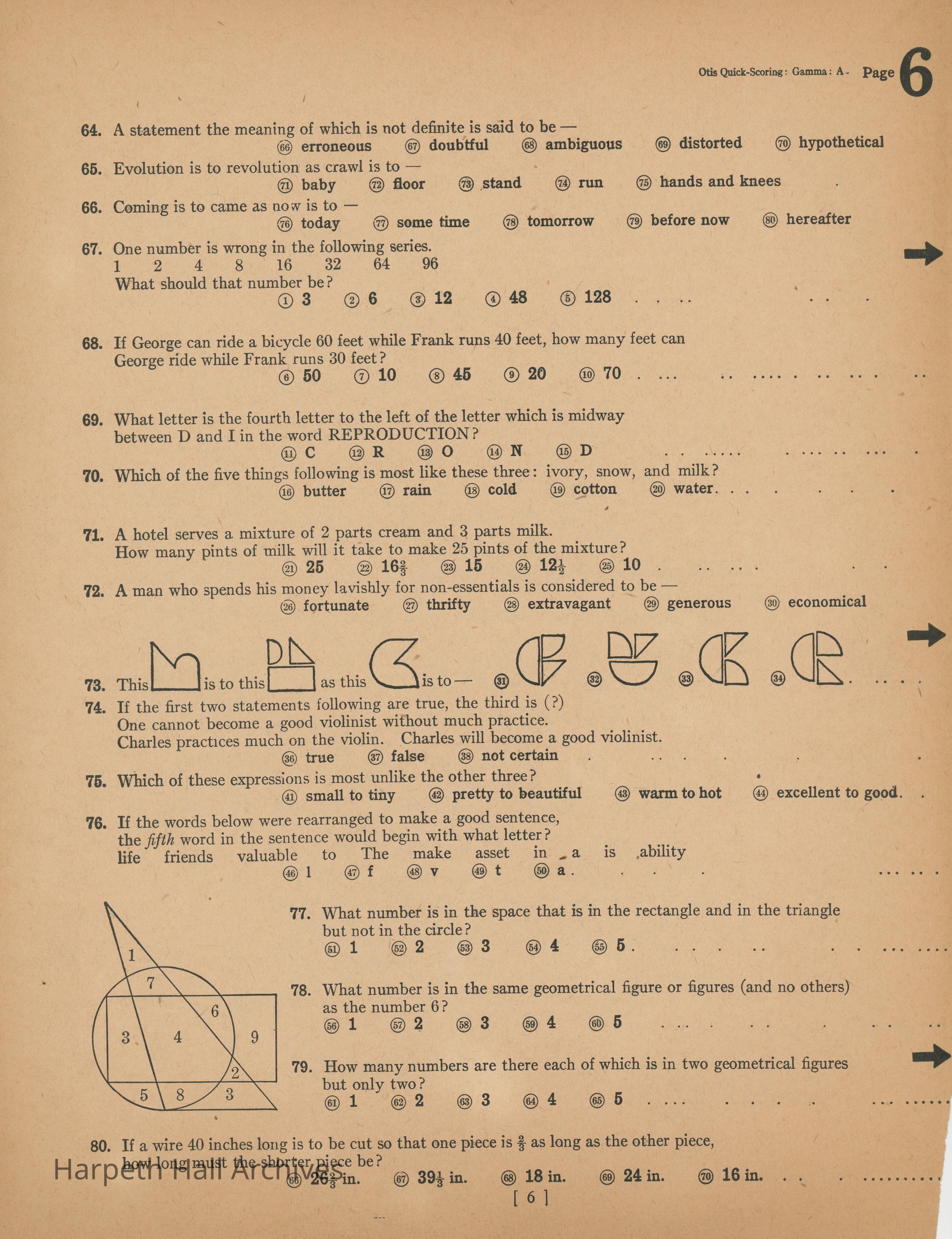Otis quick-scoring mental ability tests with solutions used by Ward-Belmont students.