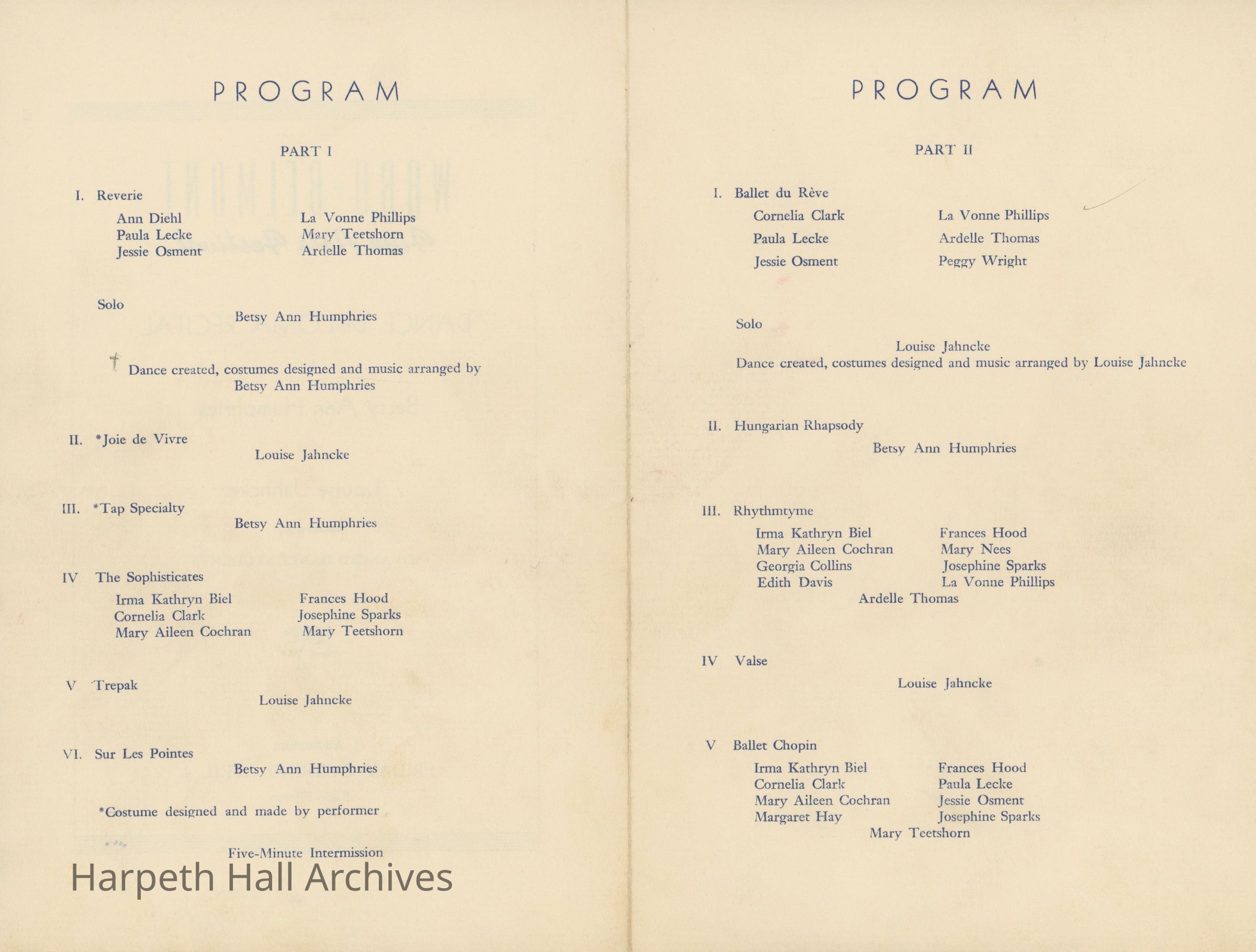 Betsy Ann Humphries & Louise Jahncke 1941 Dance Diploma Recital Program (Ward-Belmont Fine Arts Festival)Entry/Object ID