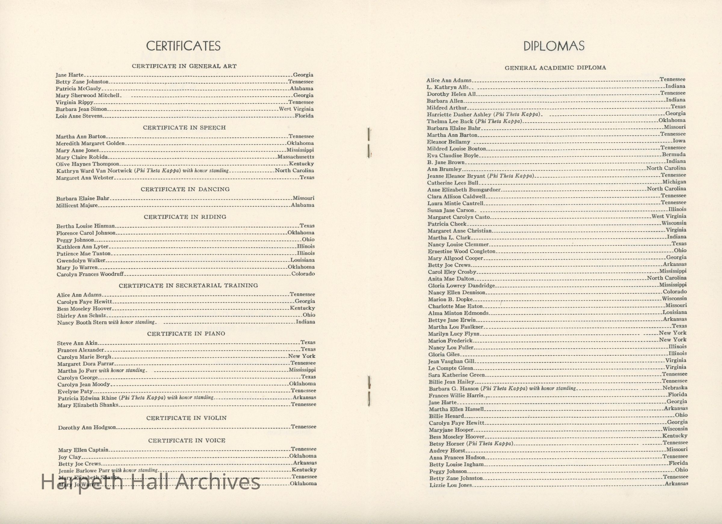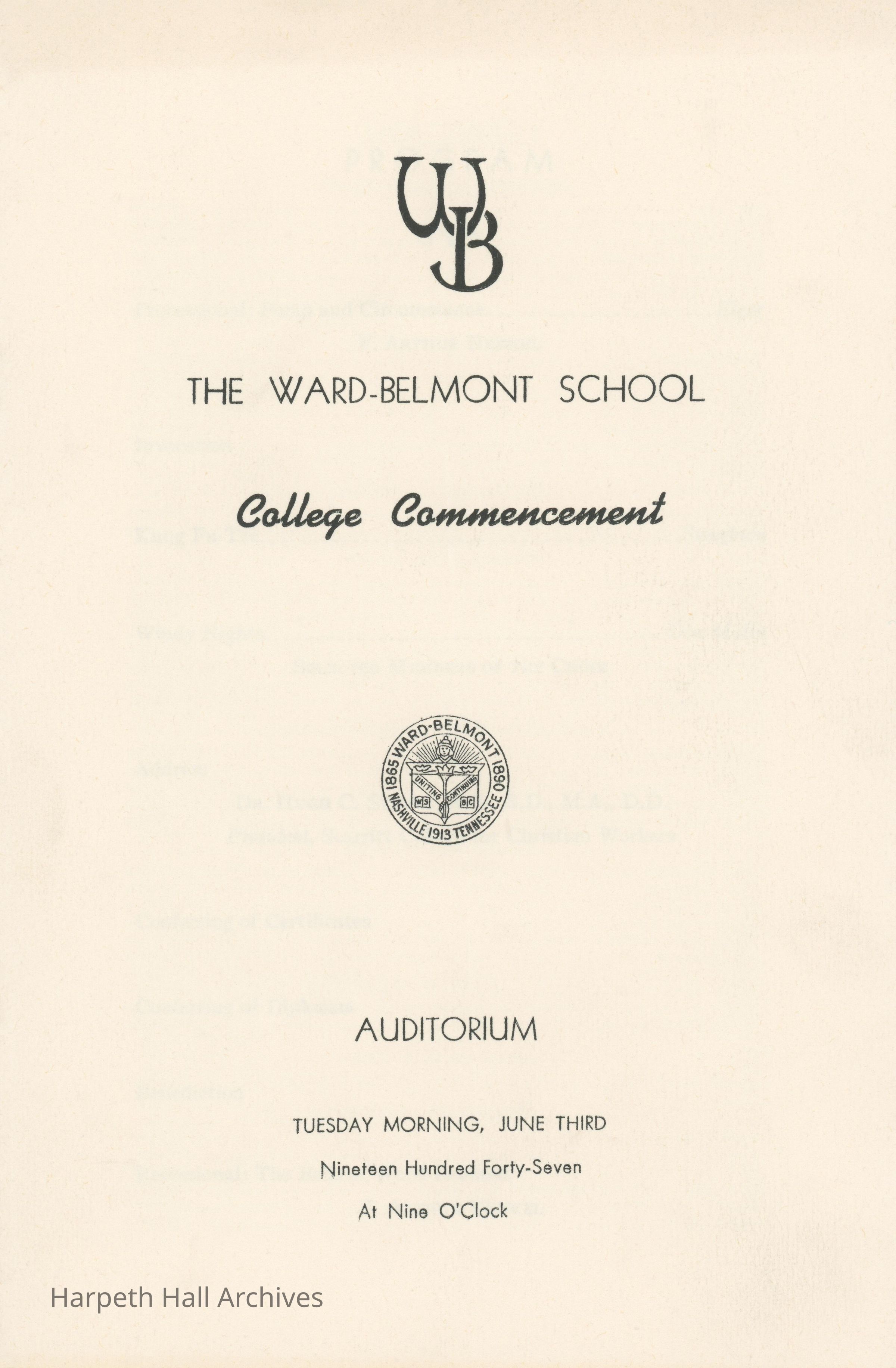 The program for Ward-Belmont's College Commencement on June 3rd, 1947.Collection
