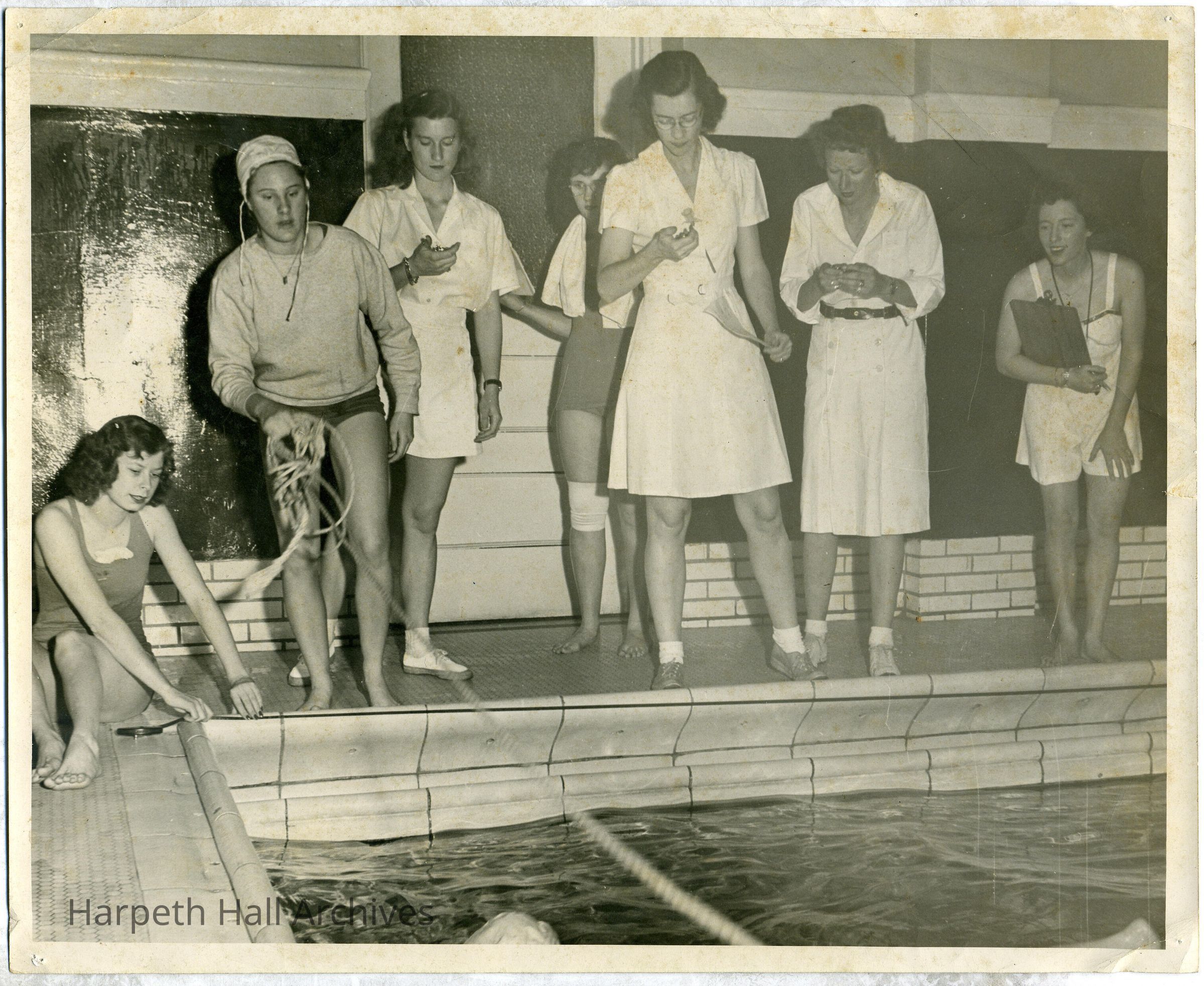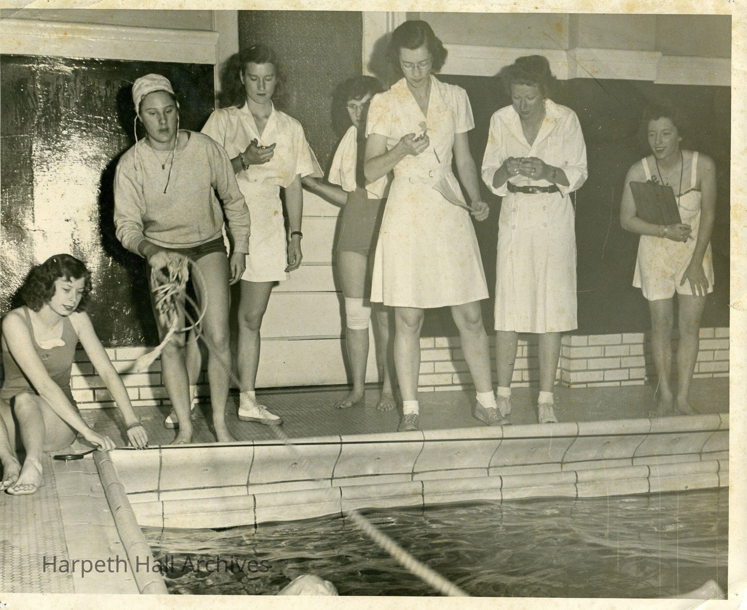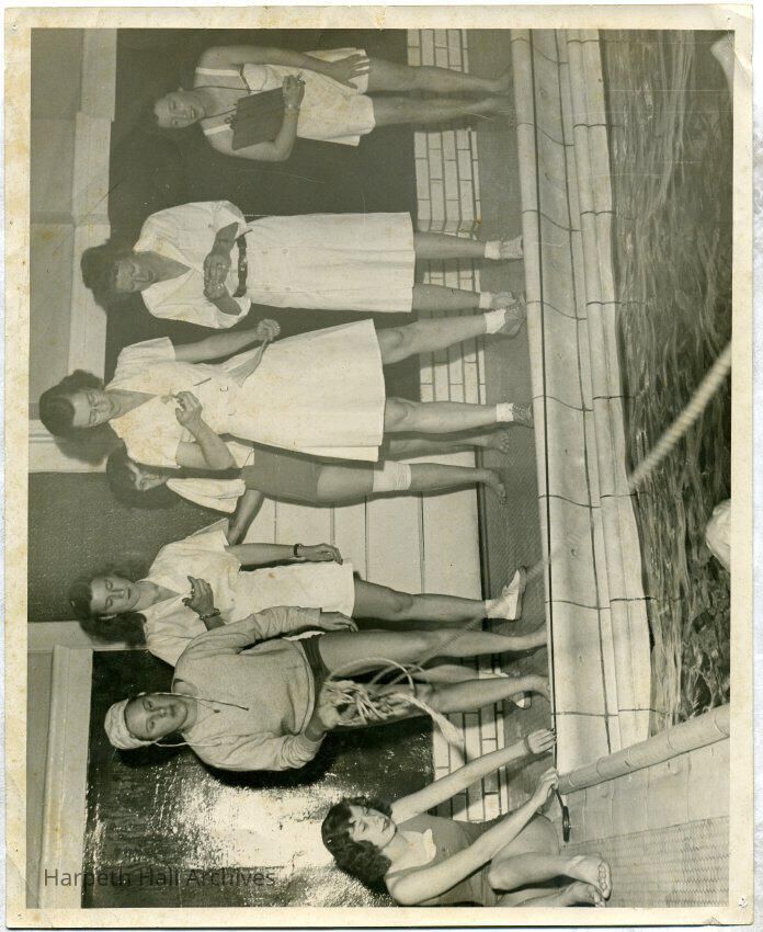 White tile swimming pool, Mary "Cayce" Elizabeth Cayce (1928) in center.
