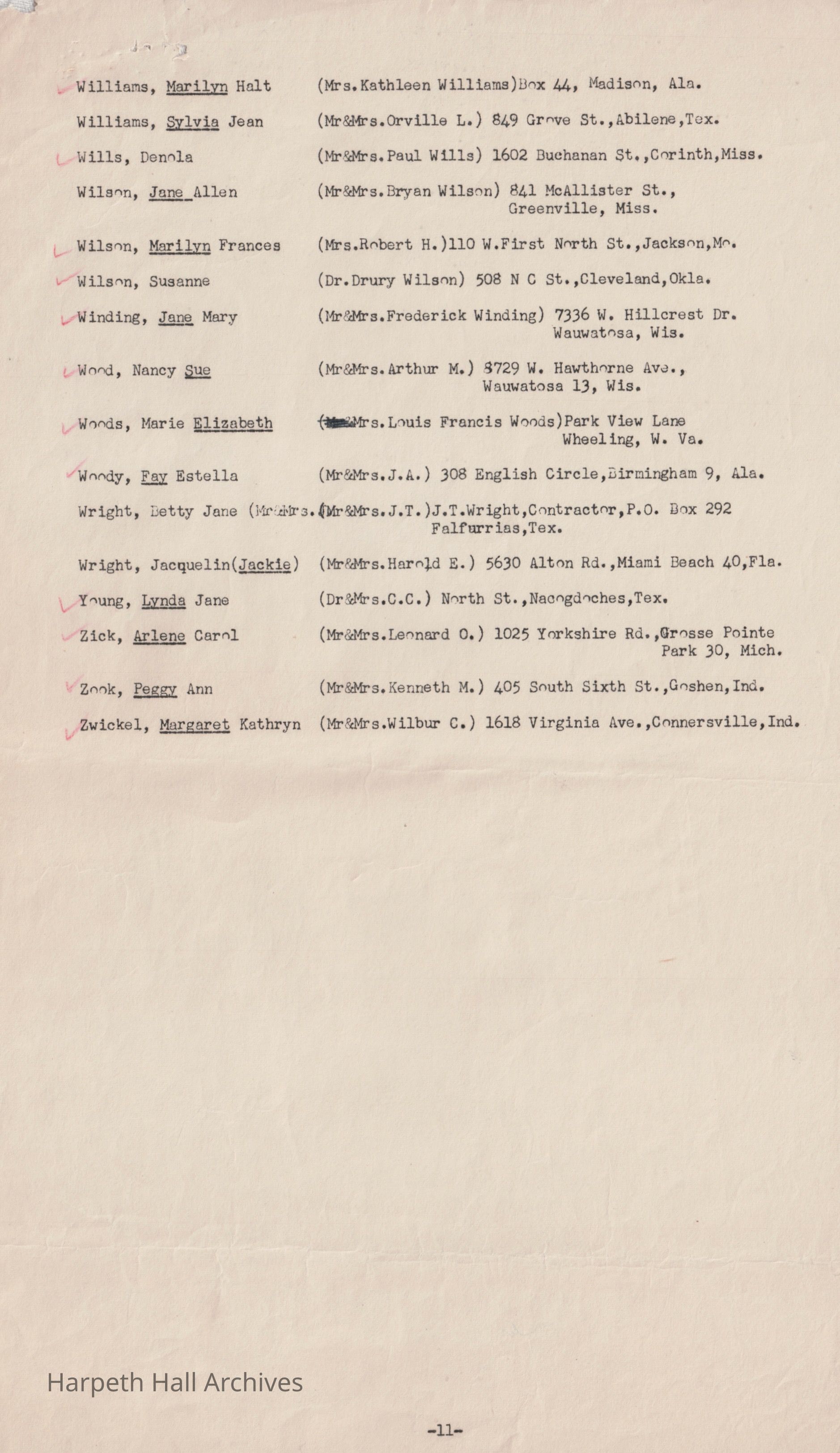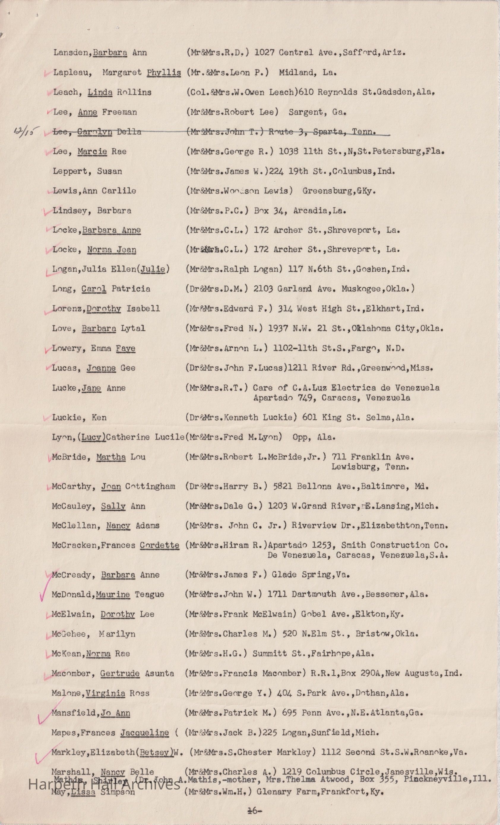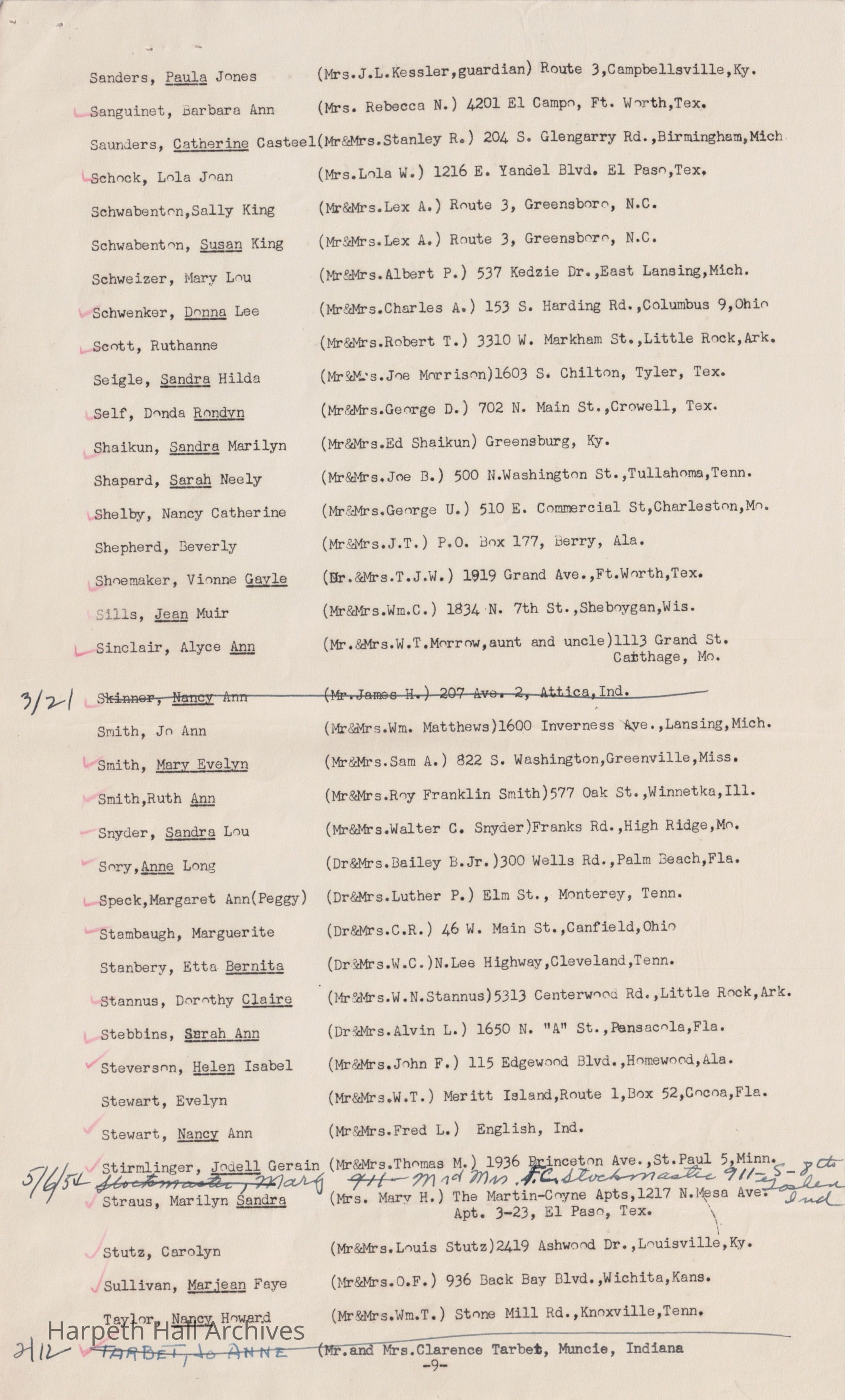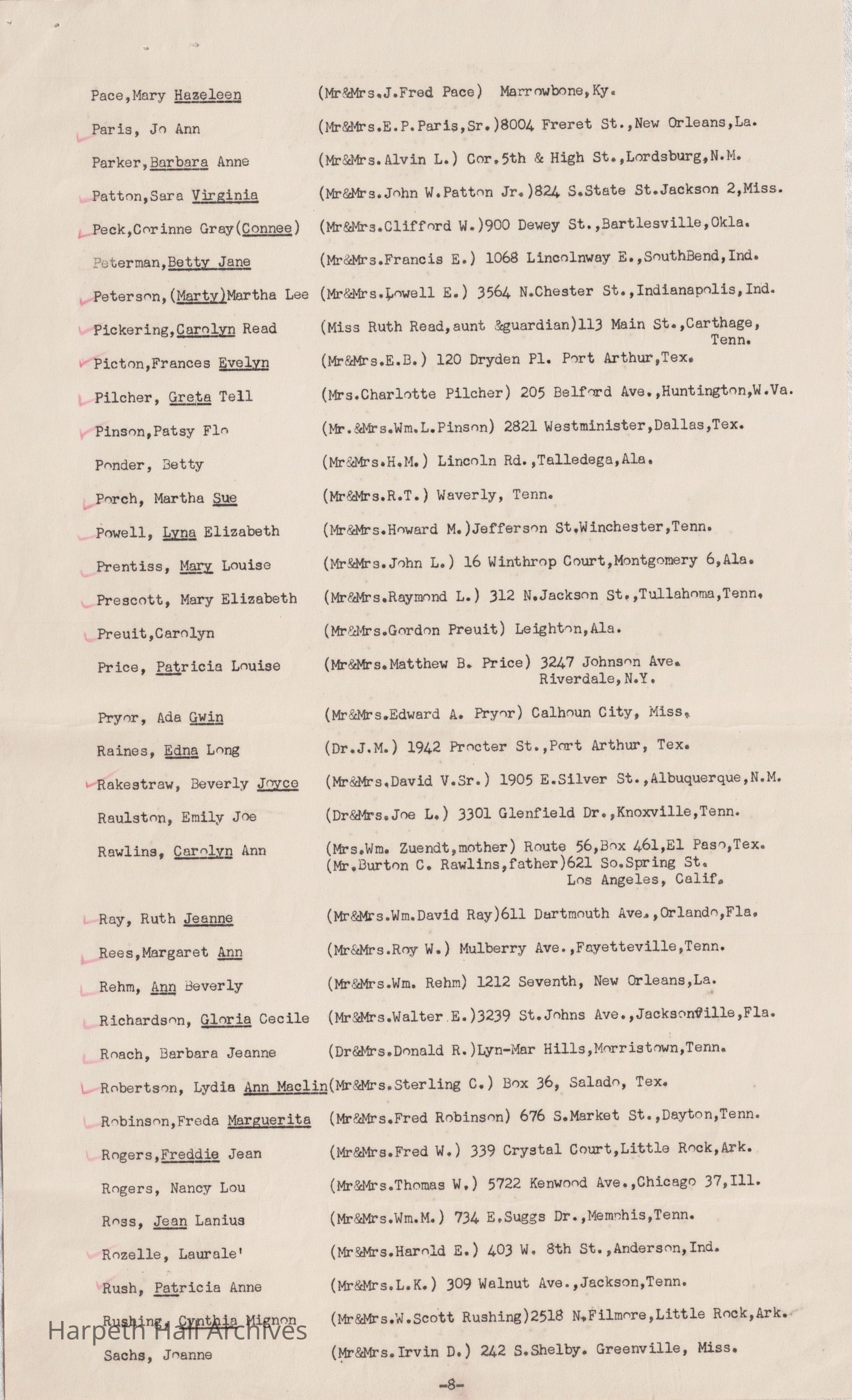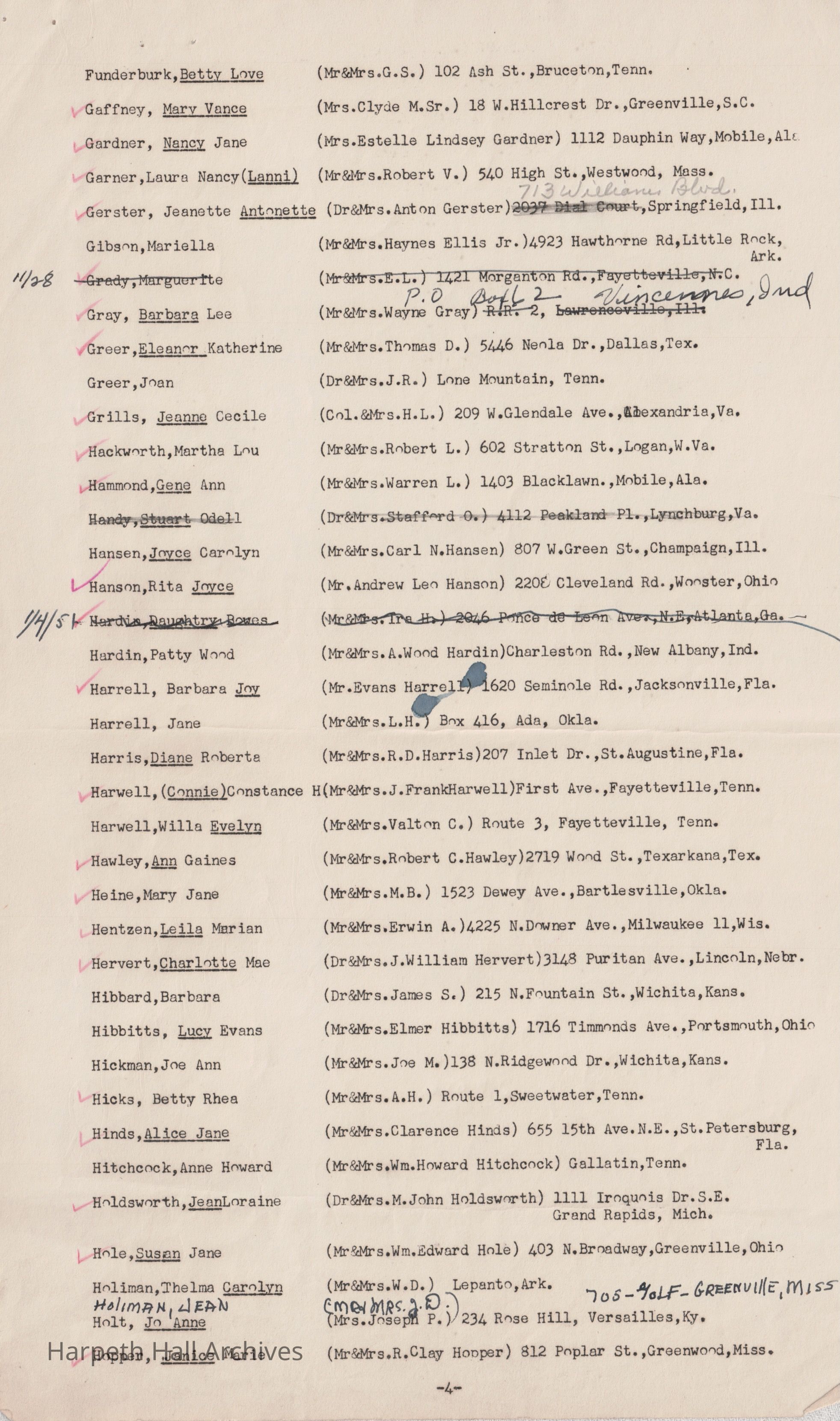Ward-Belmont Boarding Students List - 1950-51Entry/Object ID