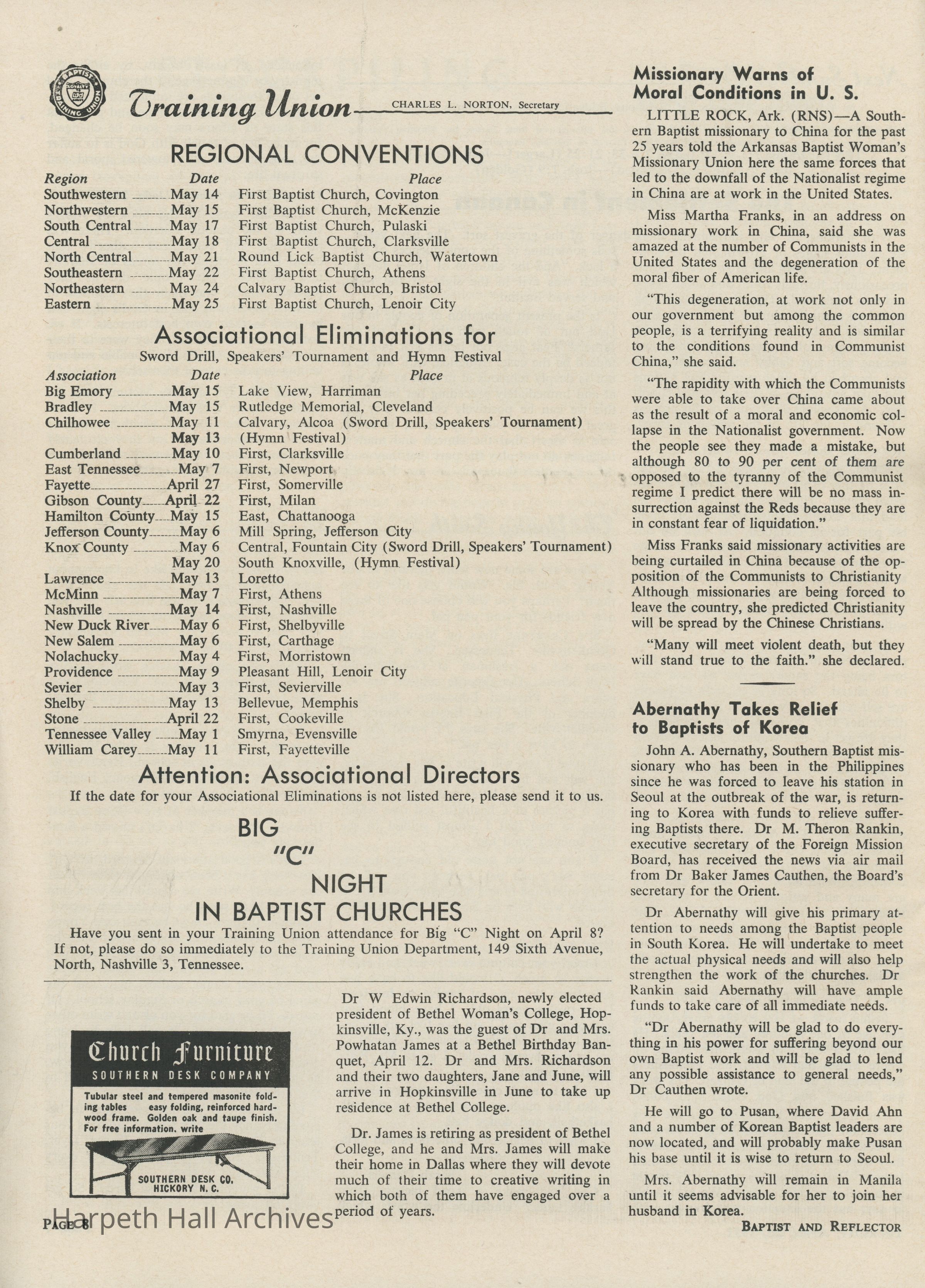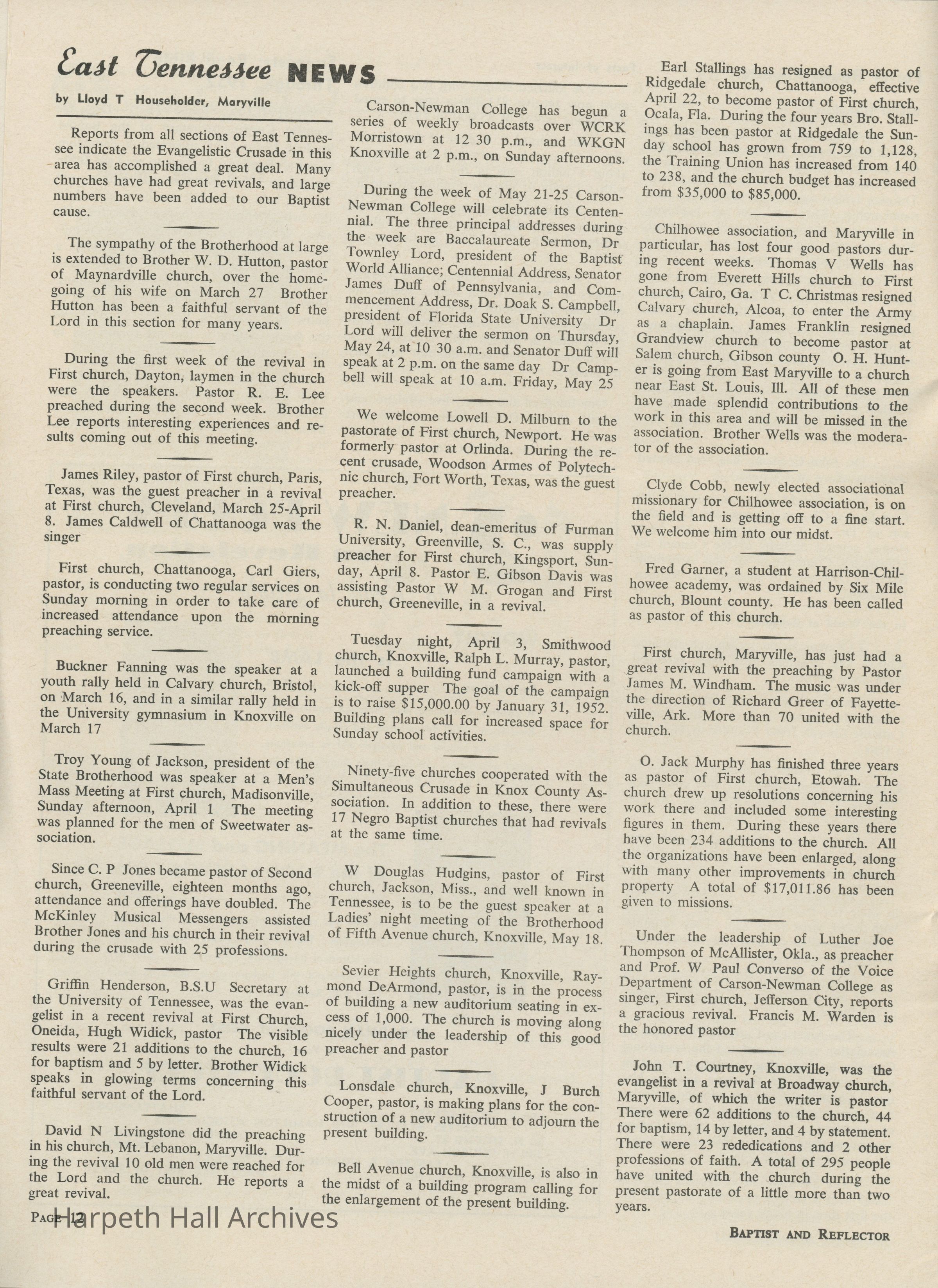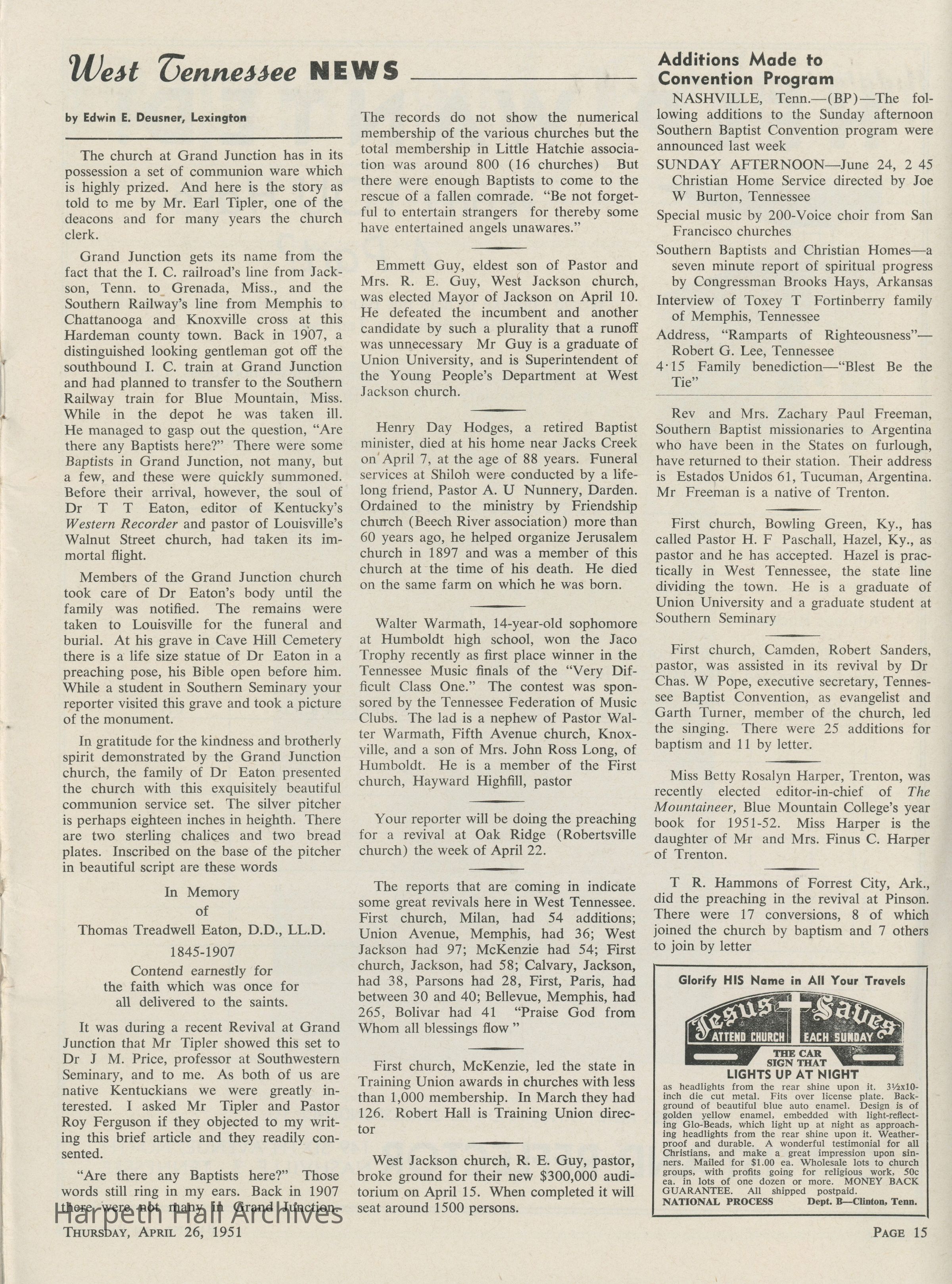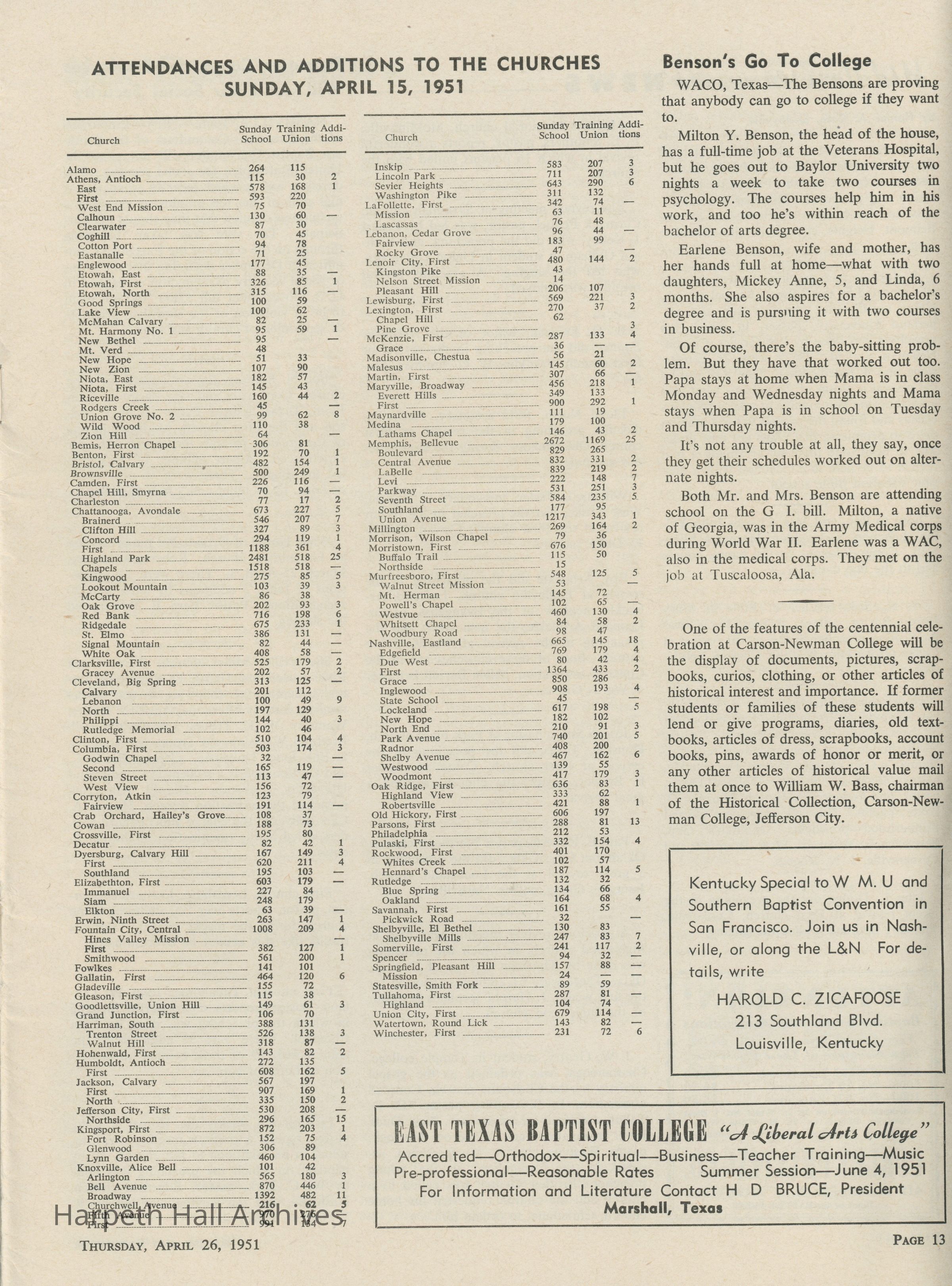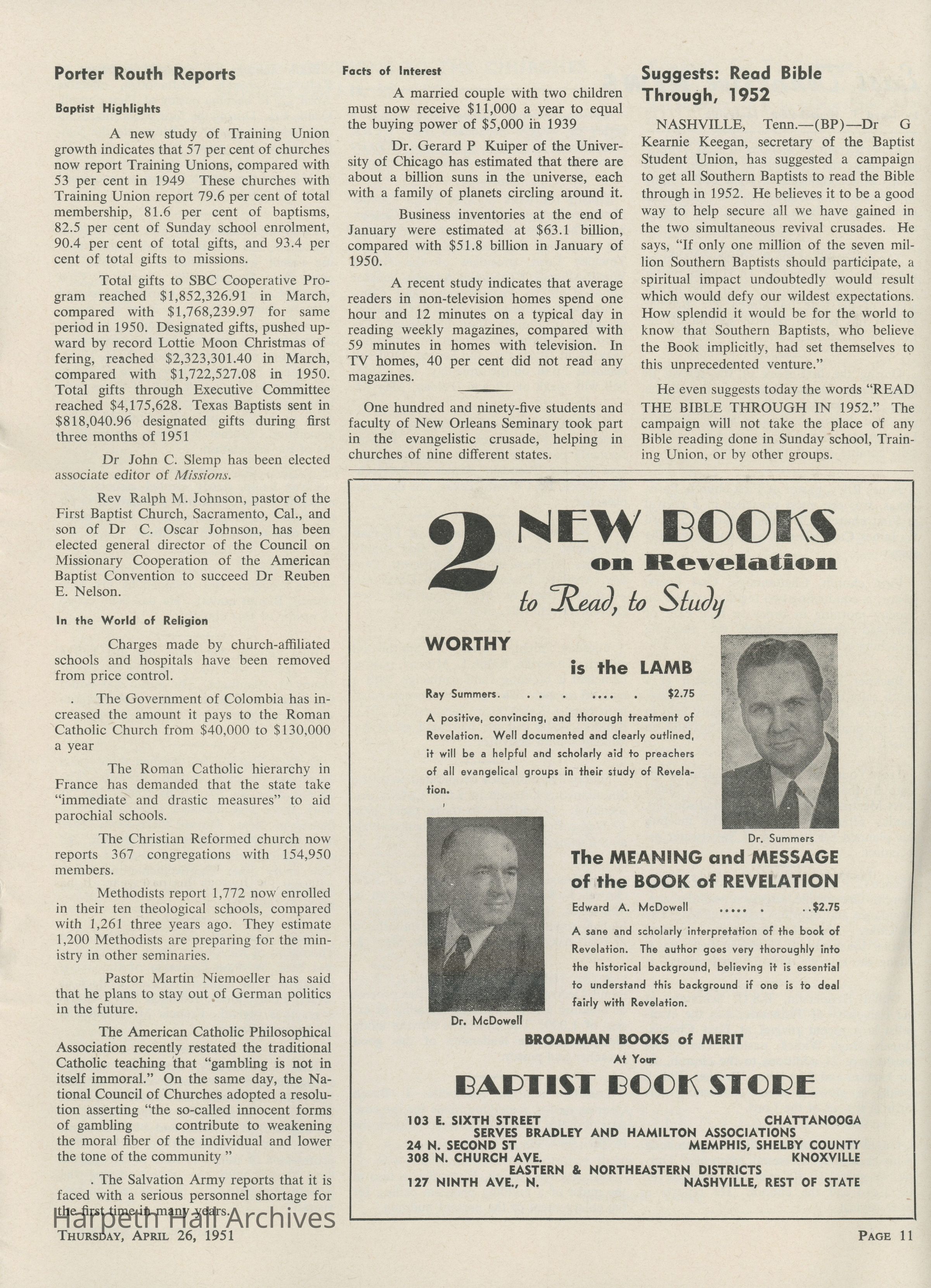 "Baptist and Reflector" - Volume 117 Number 17, 1951