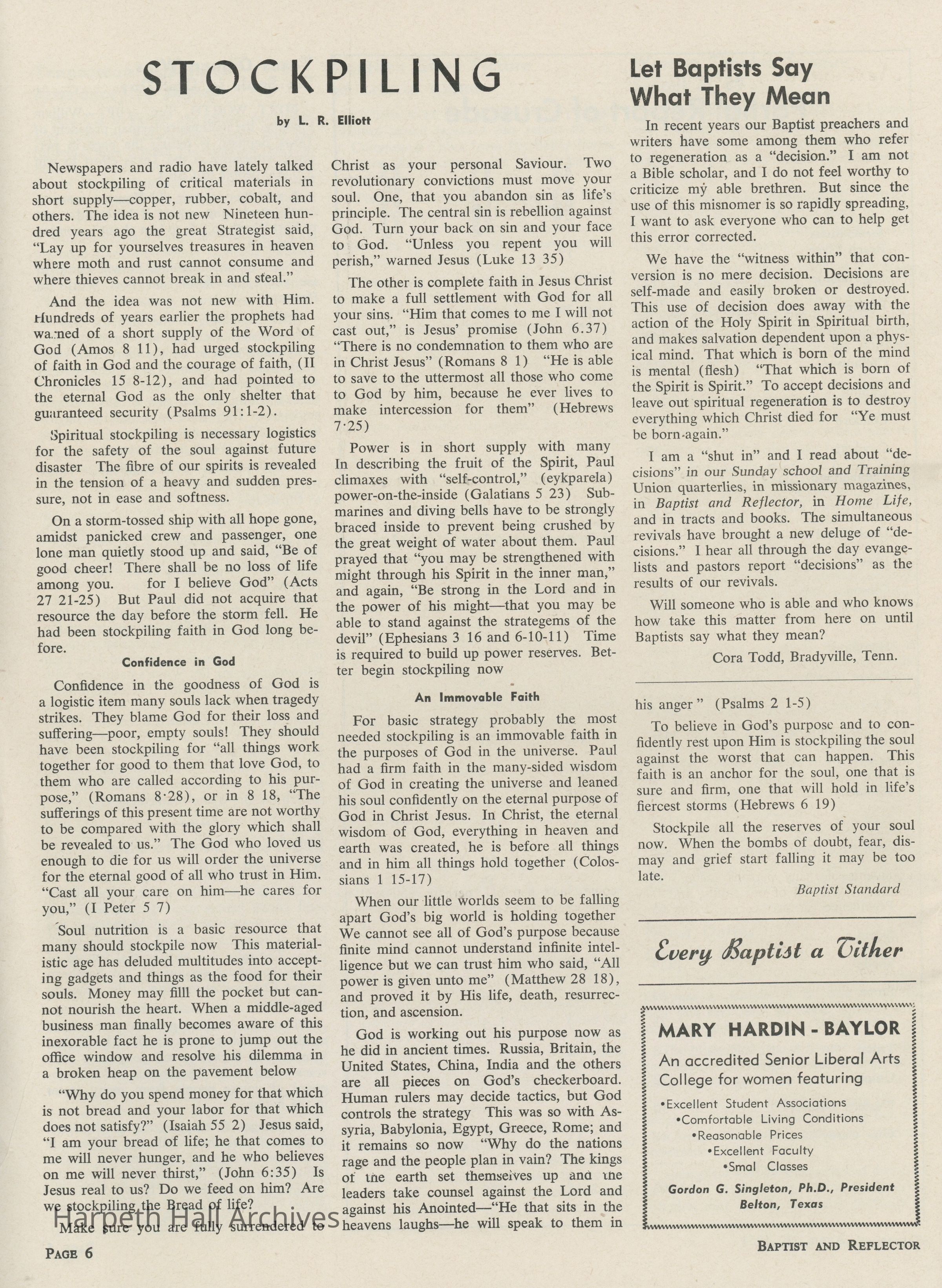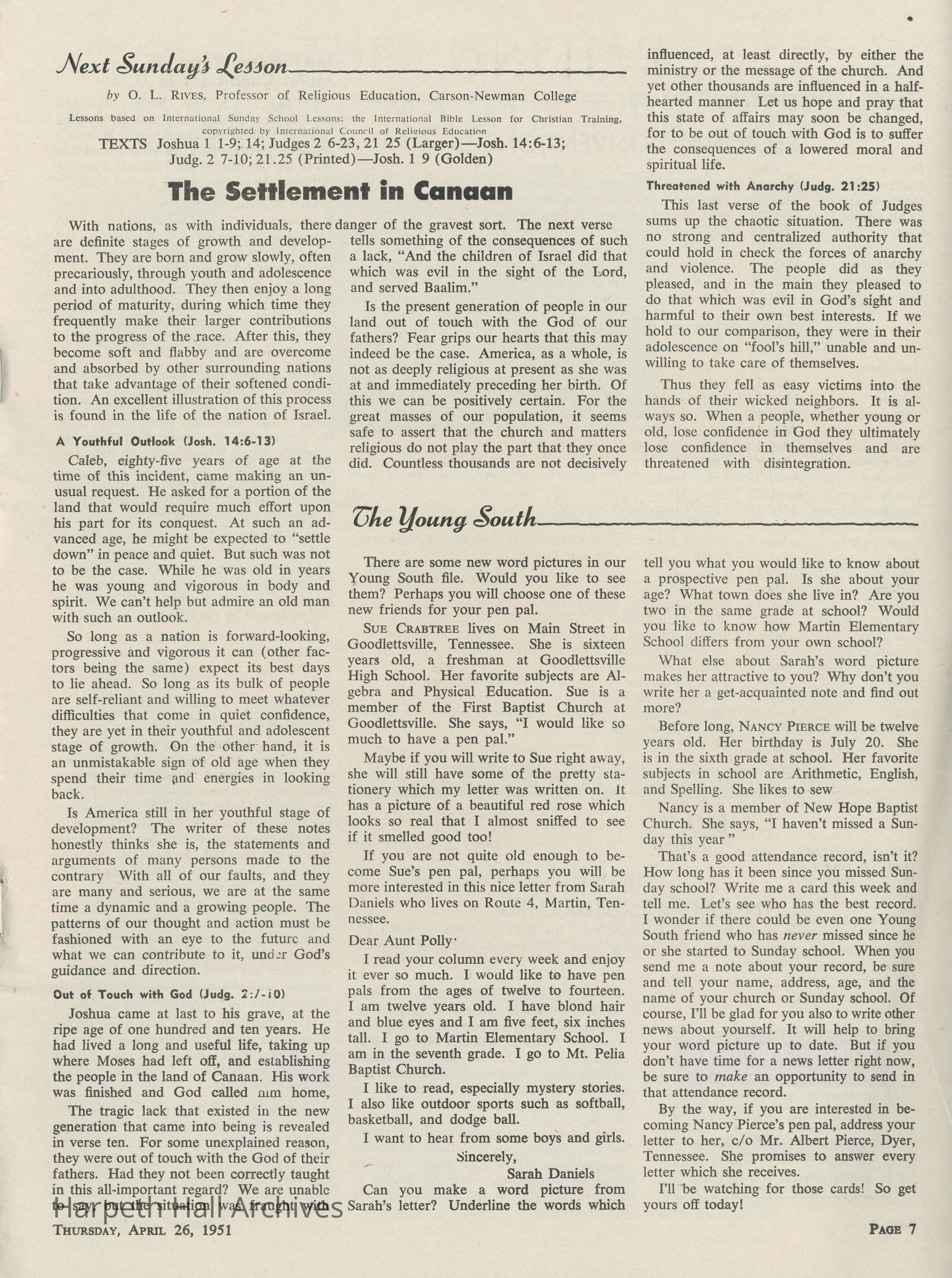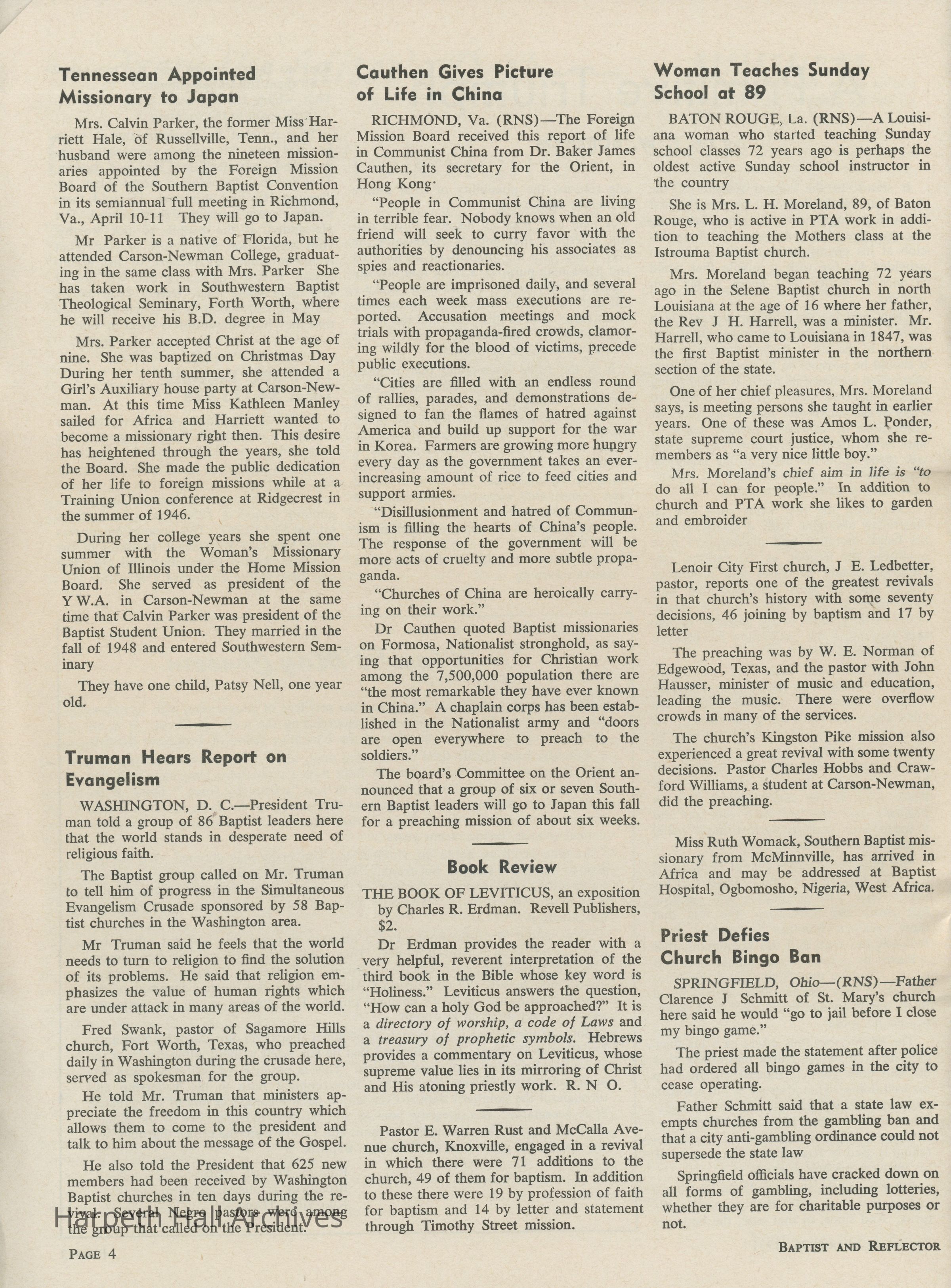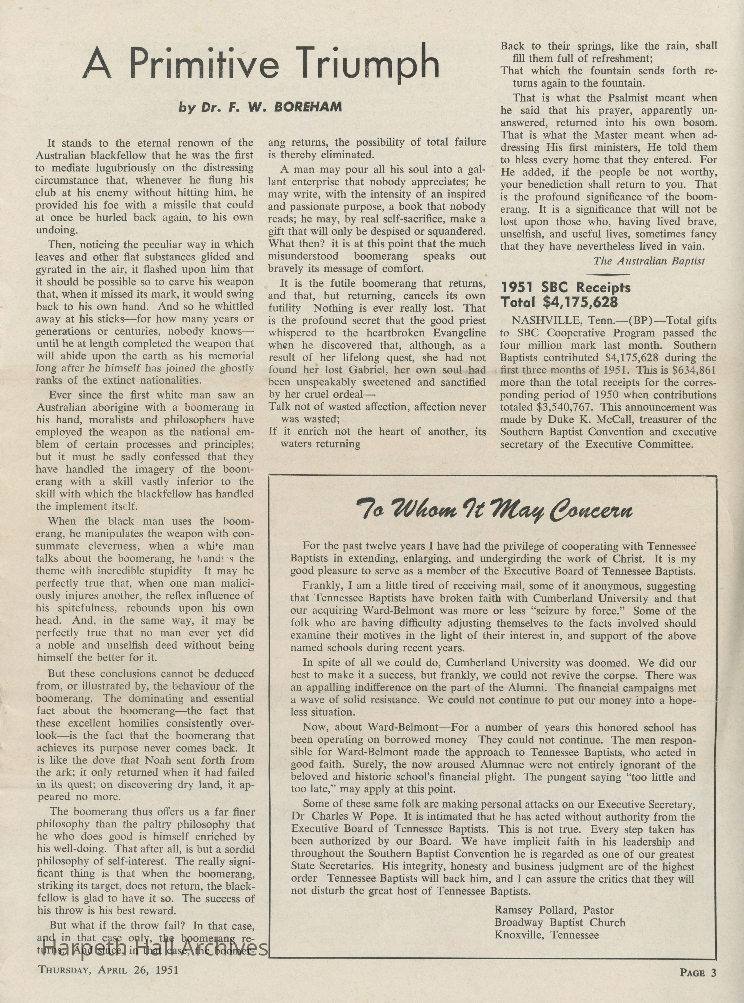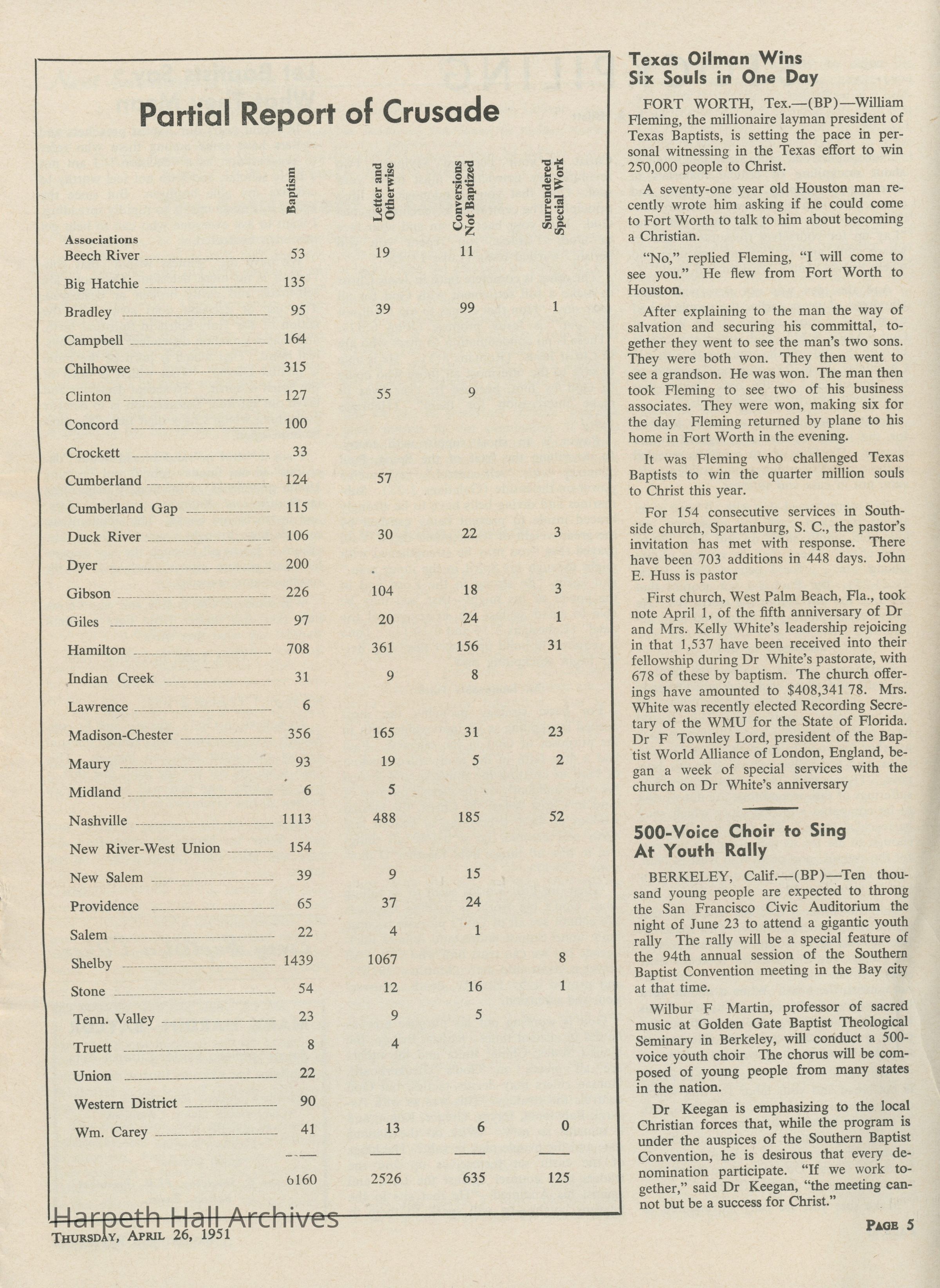 "Baptist and Reflector" - Volume 117 Number 17, 1951