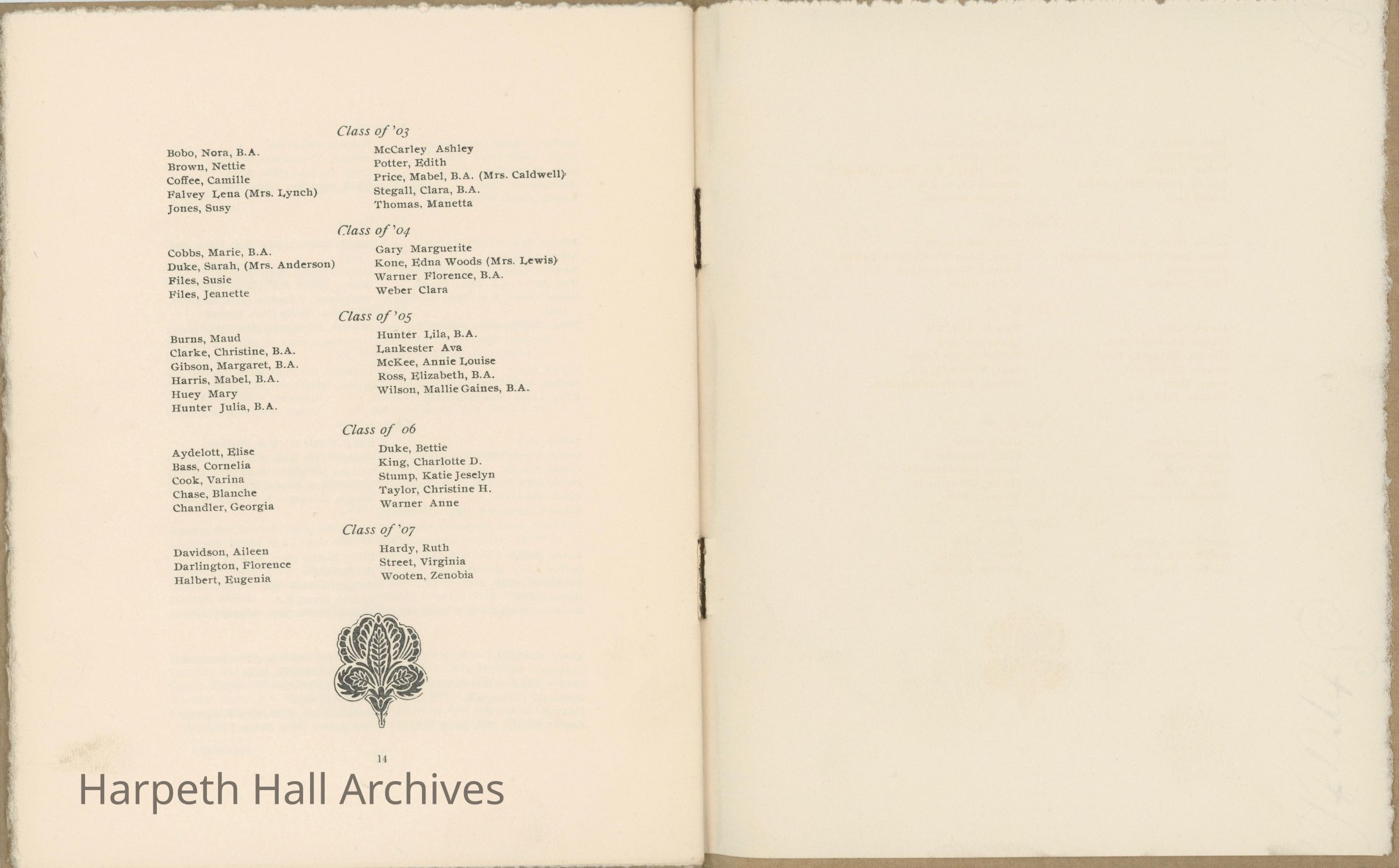 Belmont College Alumnae Association Yearbook, 1907Entry/Object ID