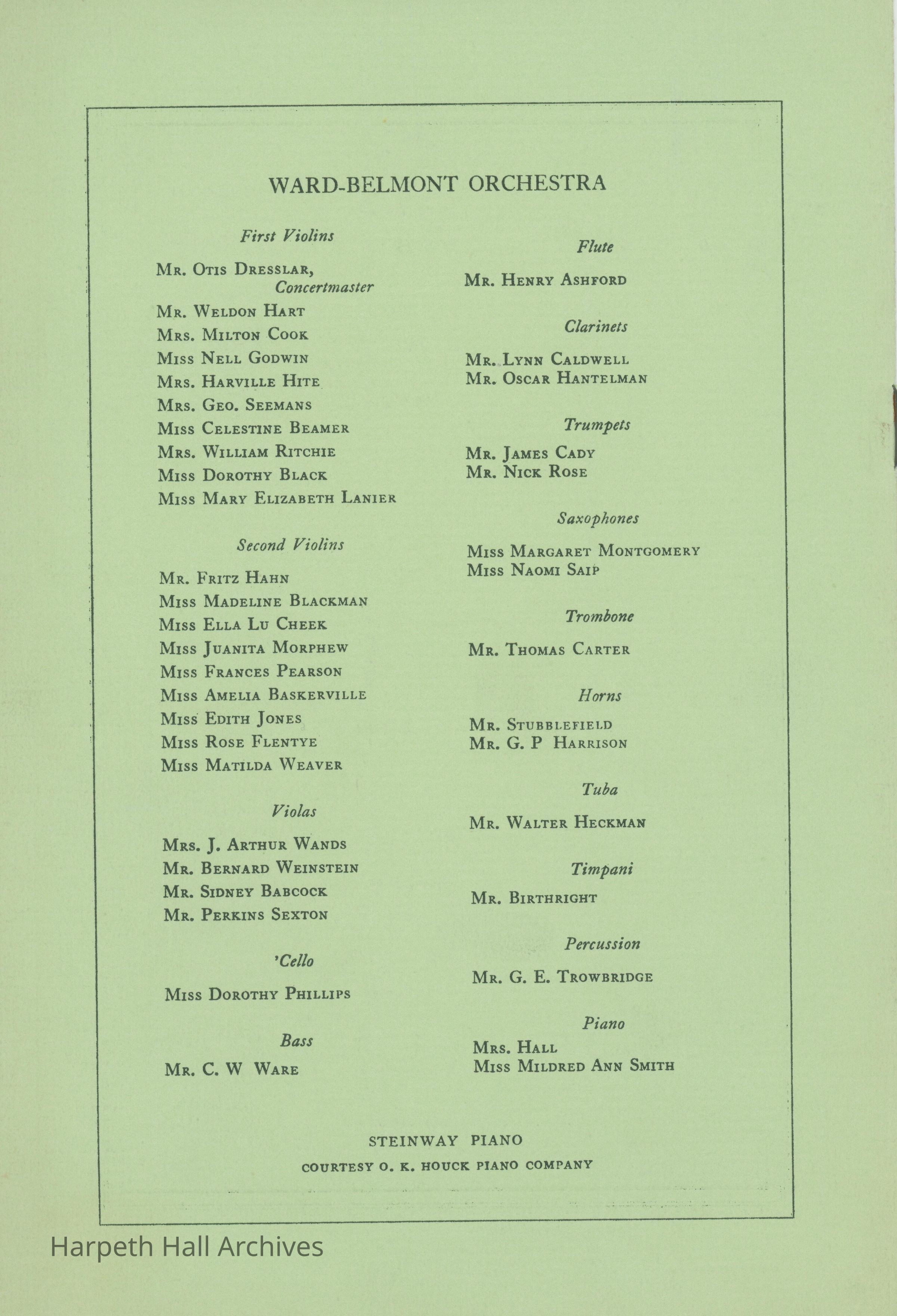 Ward-Belmont, Dance, Recital, Orchestra, 1930