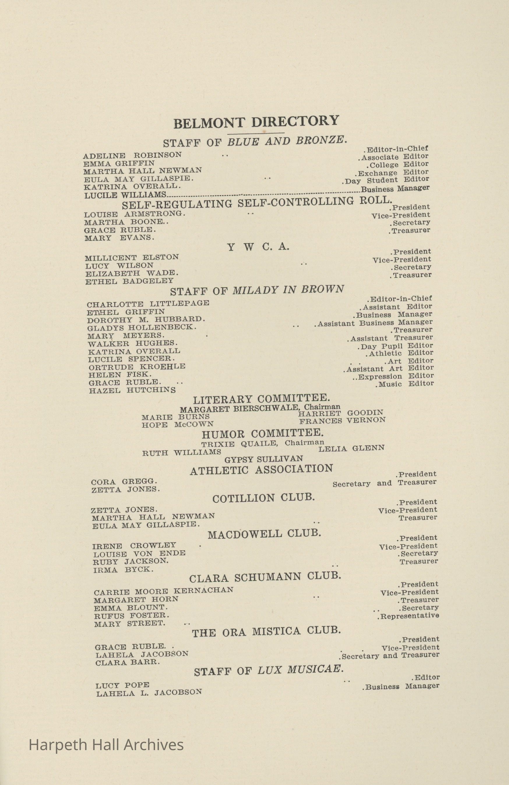 Blue and Bronze, Belmont College, Belmont College for Young Women, 1913