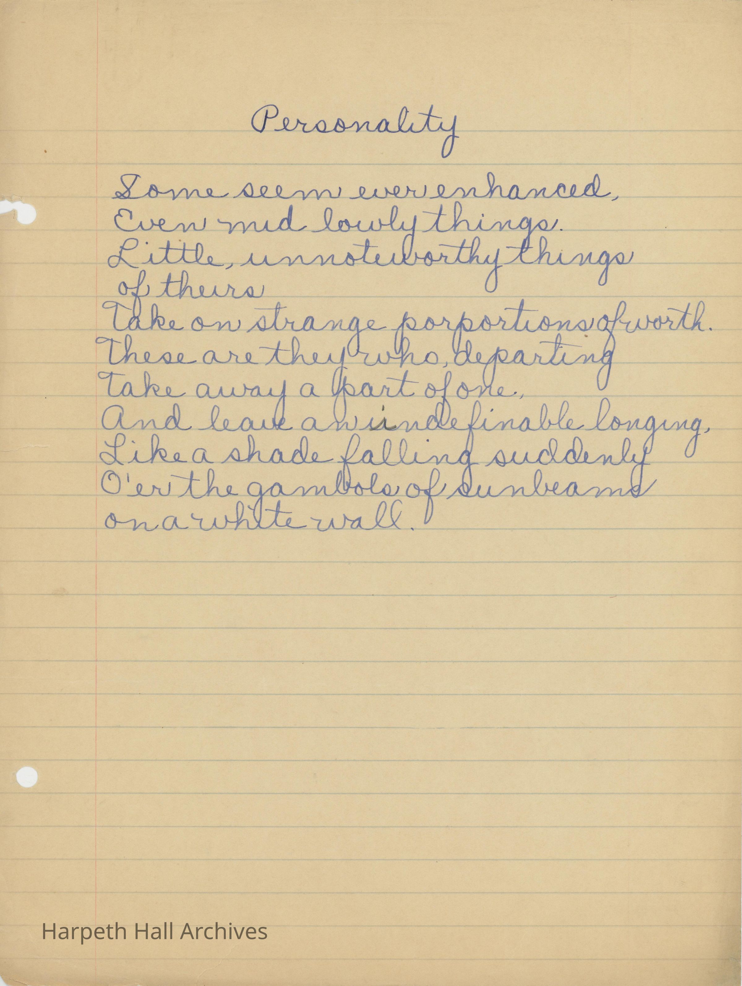 A poem entitled, "Personality" written by a Ward-Belmont student.