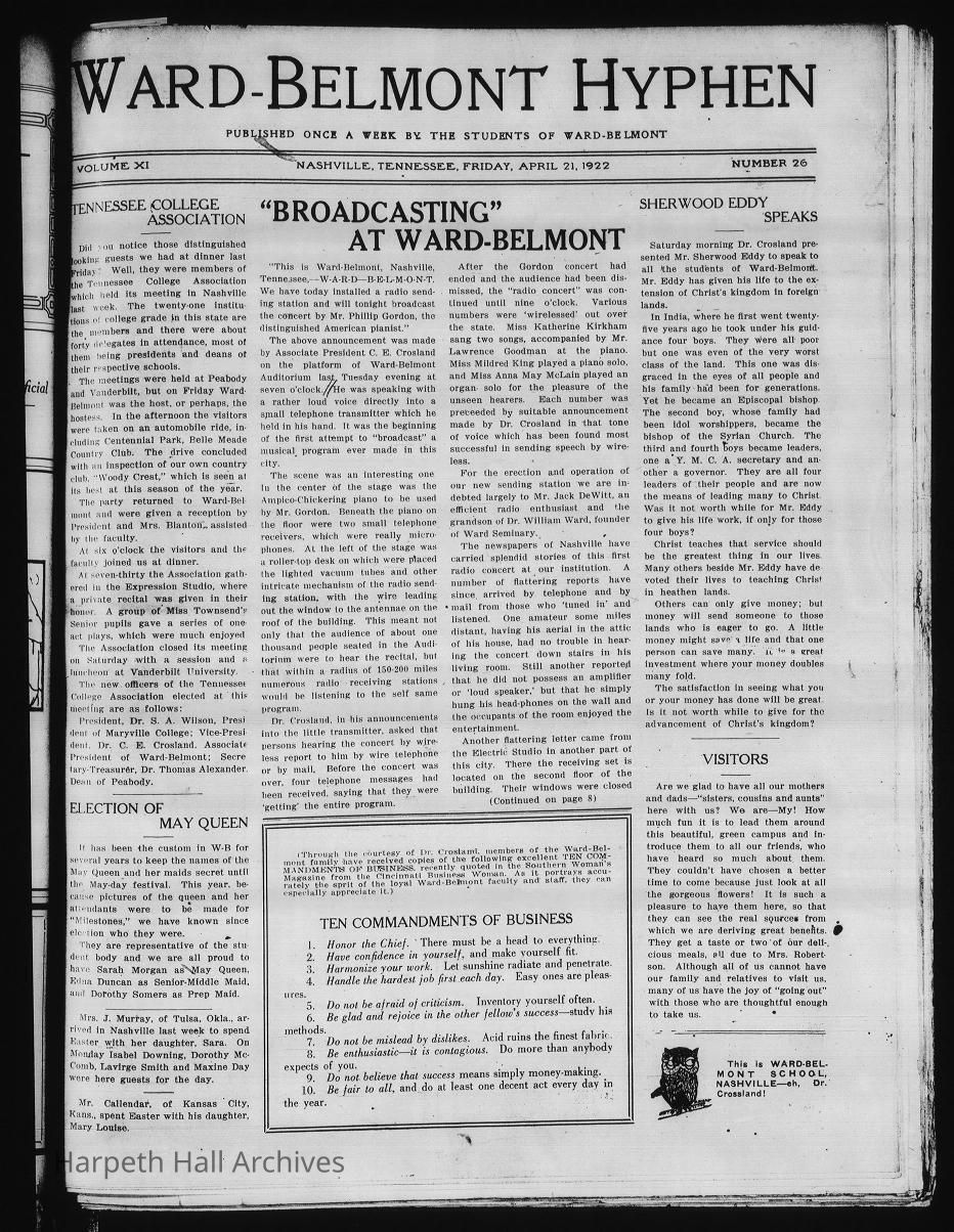 The link to see the online digitized copy of all of the Ward Belmont newspapers from 1922 is at the bottom of the page under "Web Links"!