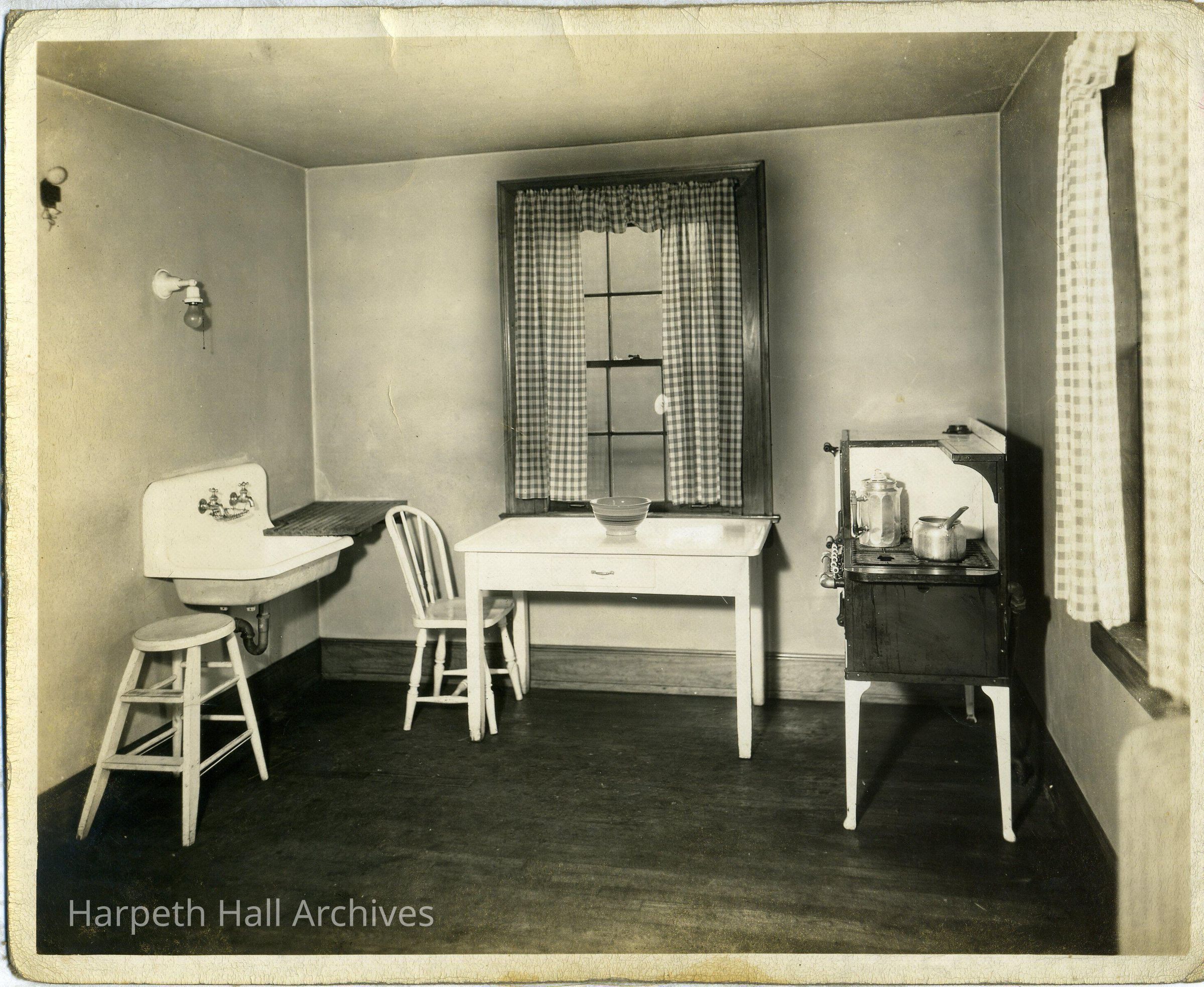 Club village, interior view. kitchen: sink, table, stove.Collection
