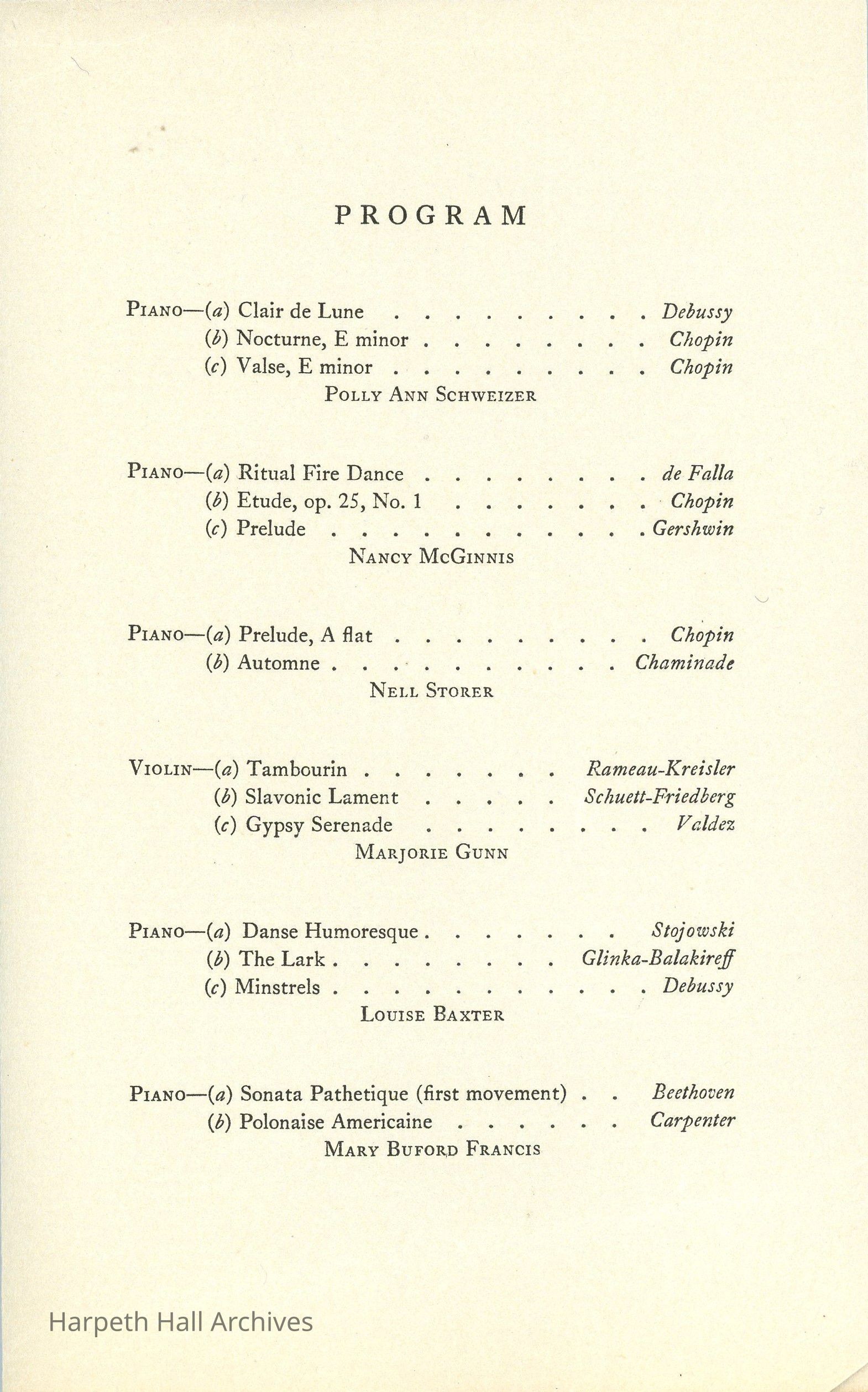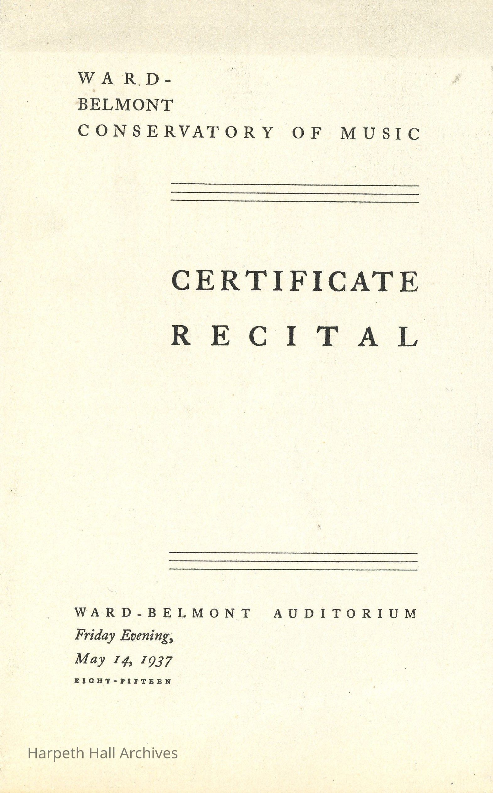 Ward-Belmont, Conservatory of Music, Certificate Recital, Recital, 1937