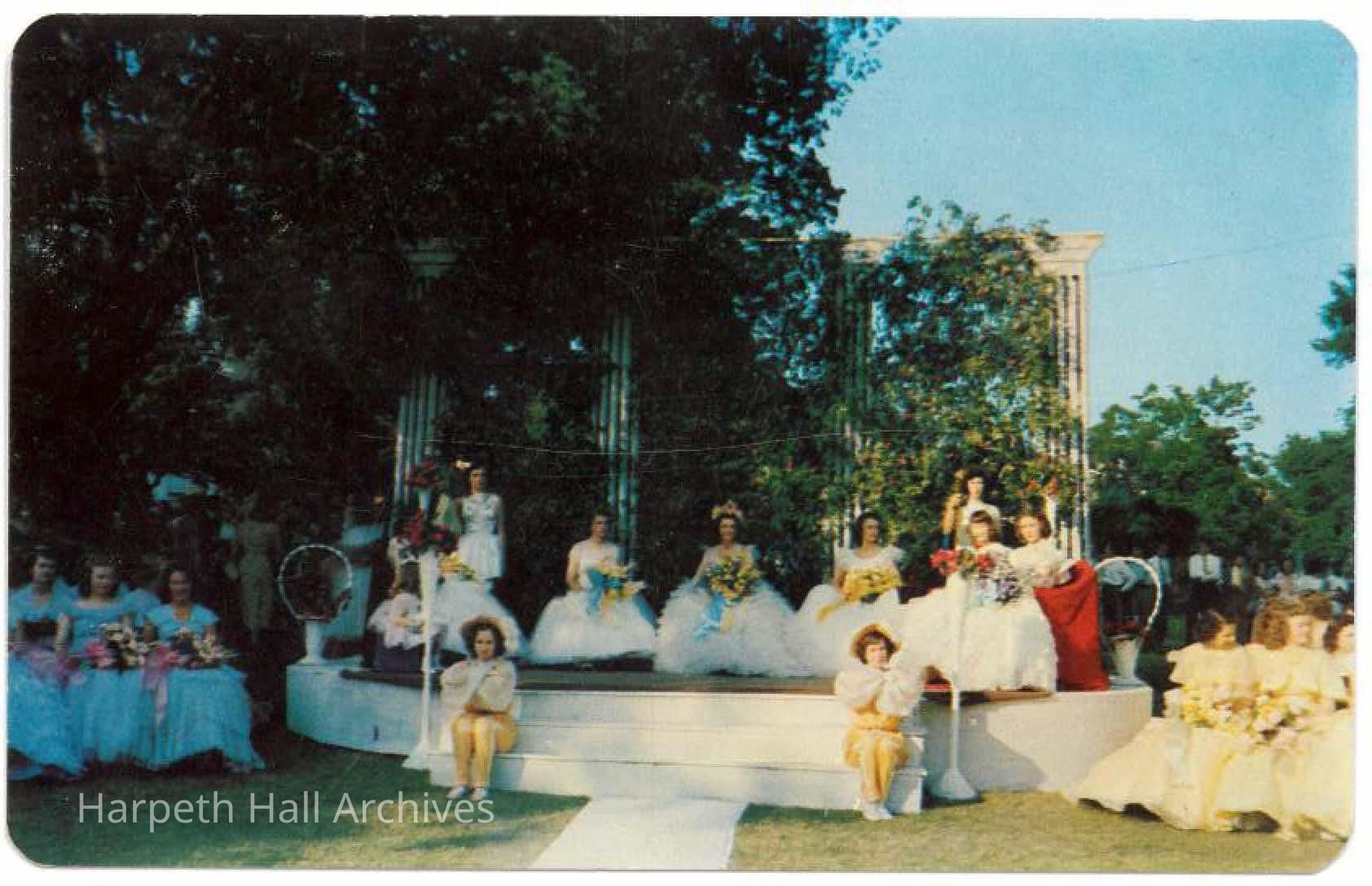 A postcard of the May Day Queen and her court from an unspecified year. Published by the Ward-Belmont Book Store, back caption written in the context.Context