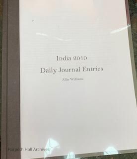 Allie Williams ('11) journal kept during Winterim 2010 trip to India. Entries are typed and organized by day from January 4 to January 14, 2010.