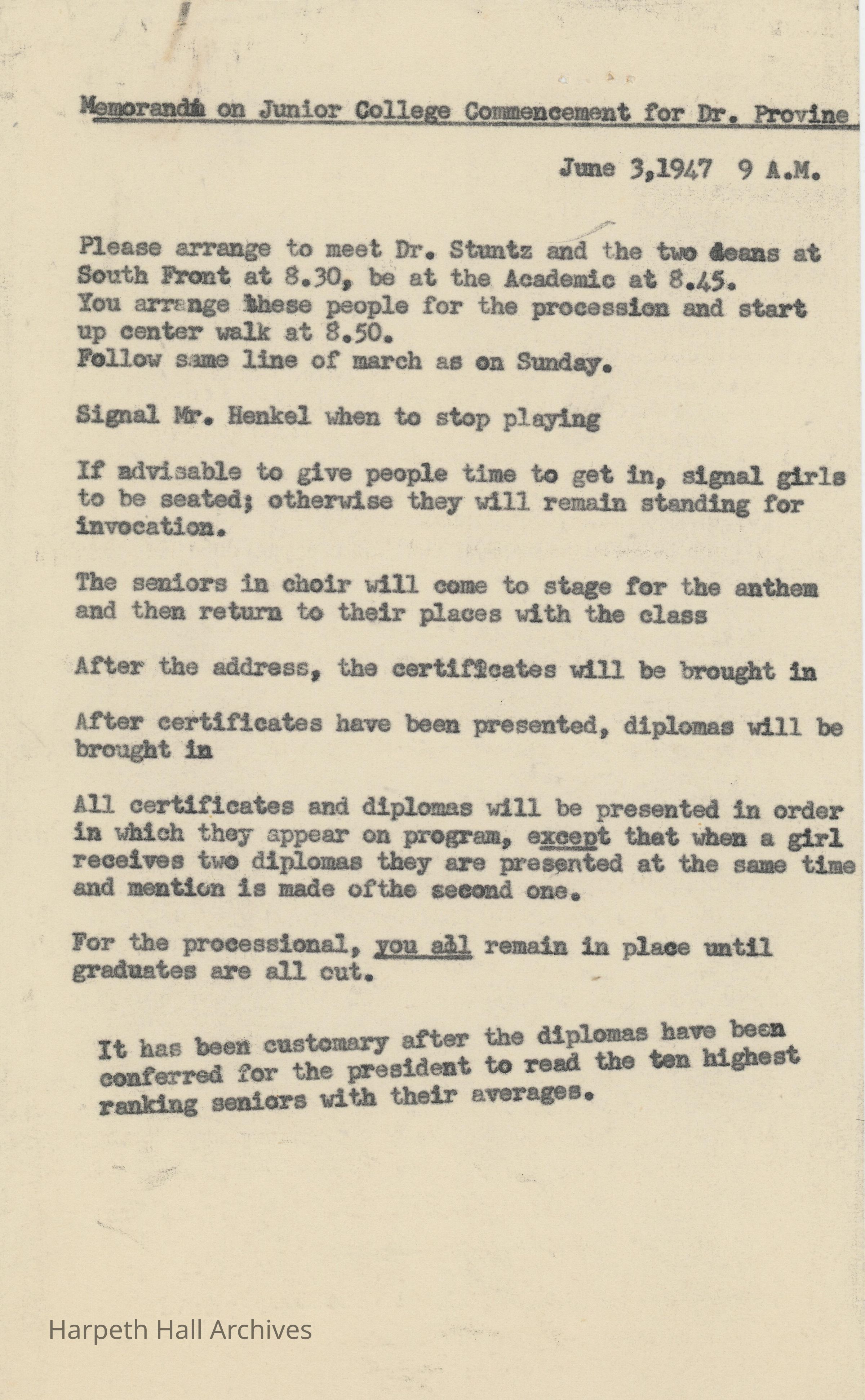 Memorandum on Junior College Commencement for Dr. Provine sent on June 3rd, 1947.Collection