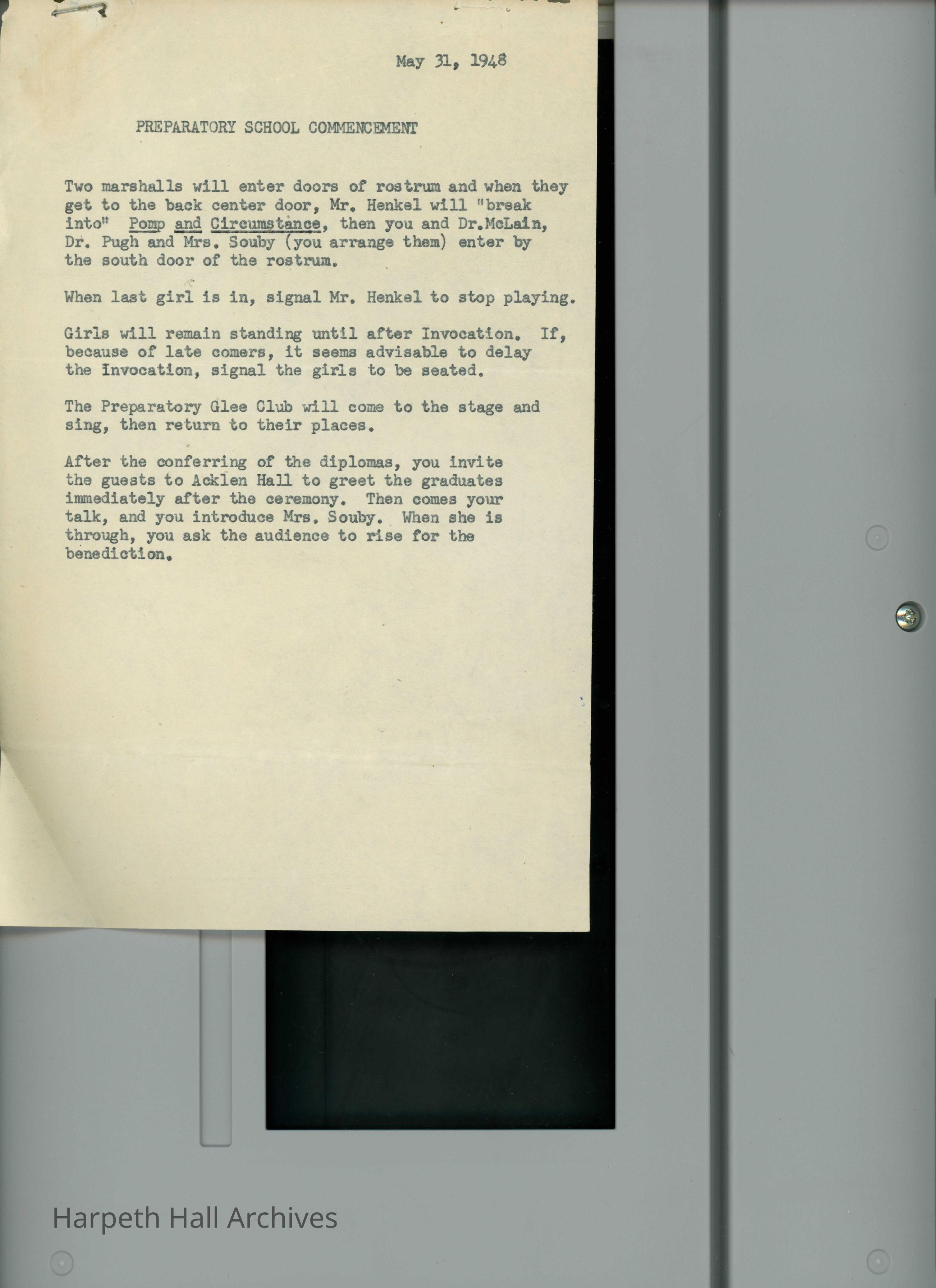 Letter to Unnamed Recipient with directions pertaining to Commencement on May 31, 1948Collection