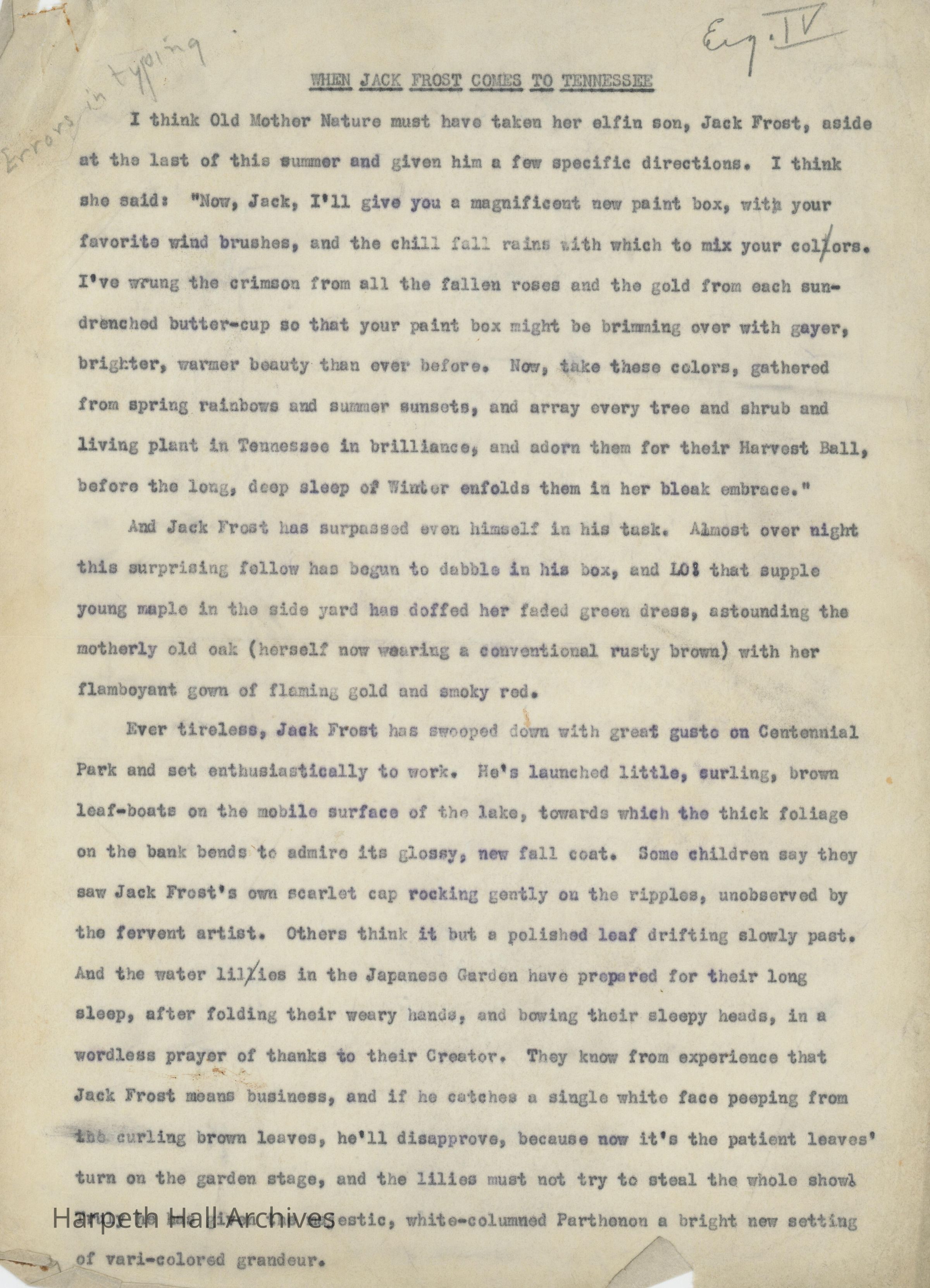When Jack Frost Comes to Tennessee EssayEntry/Object ID