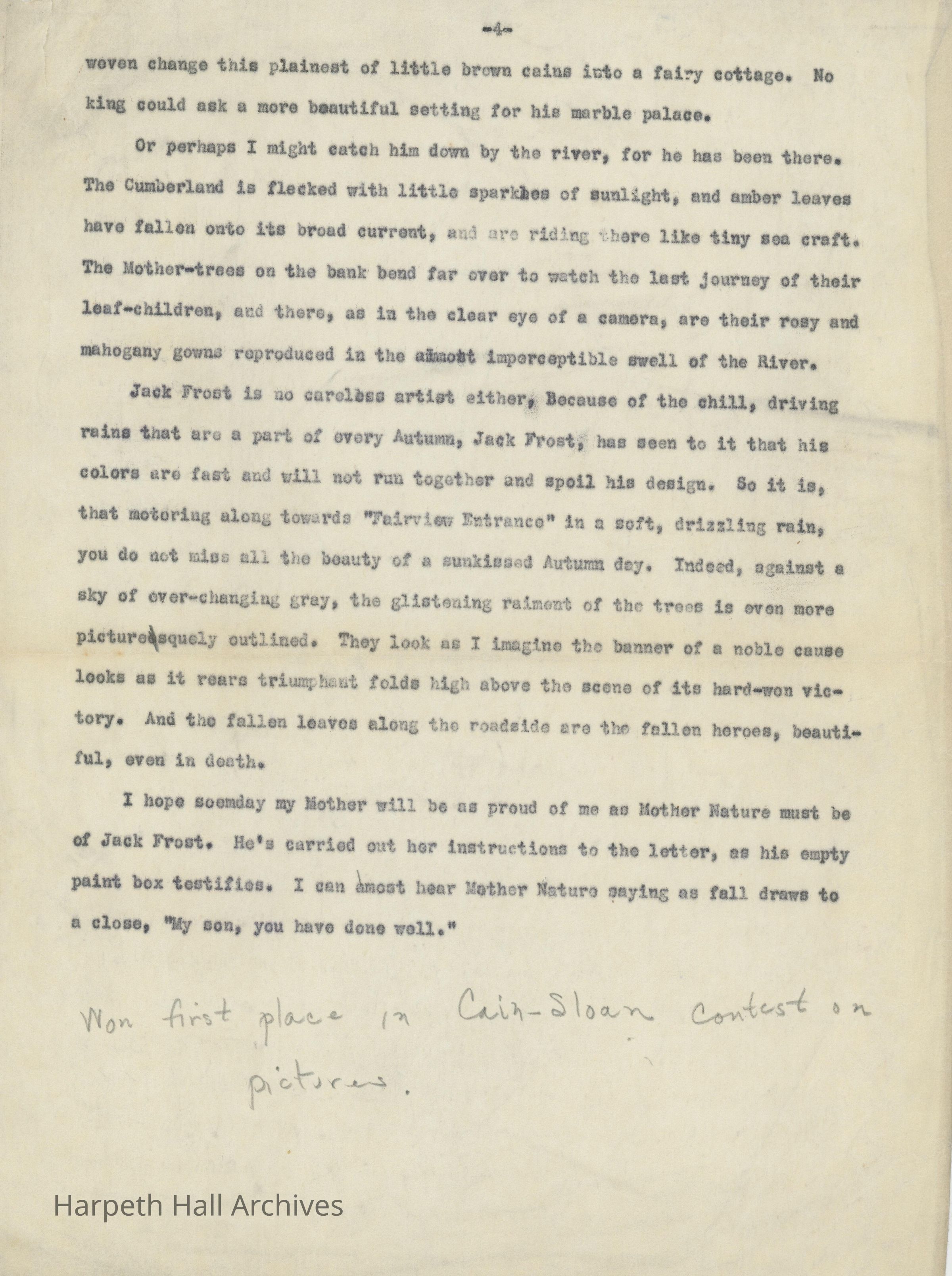 An essay written by a Ward-Belmont student for her English IV class. The essay won first place in a Cain-Sloan contest on pictures.Collection