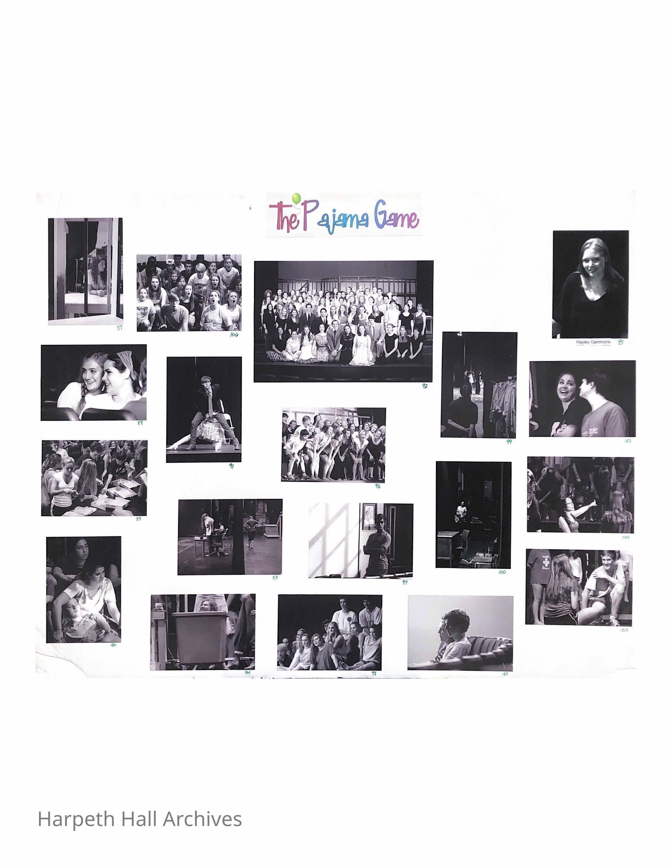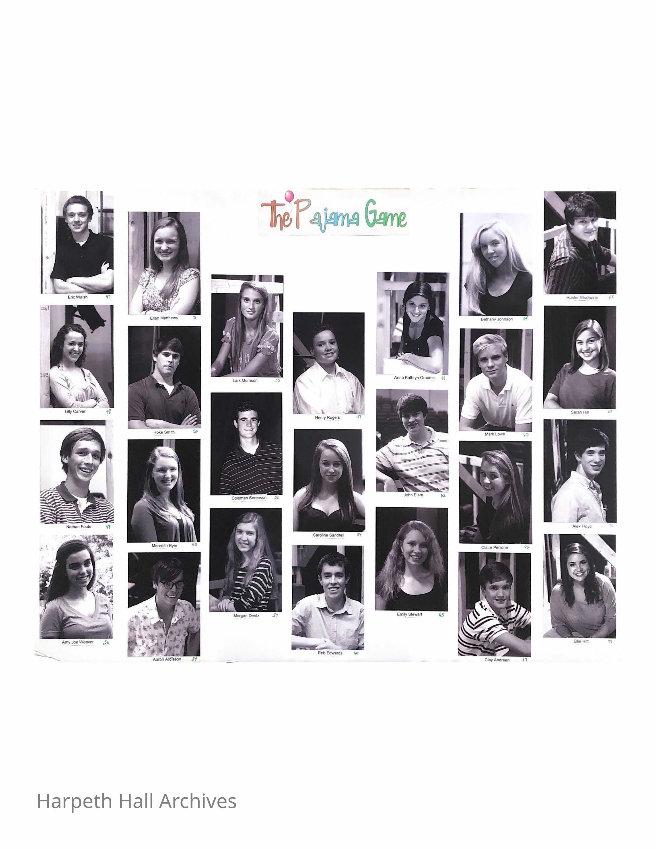 The cast board for the showing of The Pajama Game put on by the Harpeth Hall Playmakers during the 2011-2012 school year.