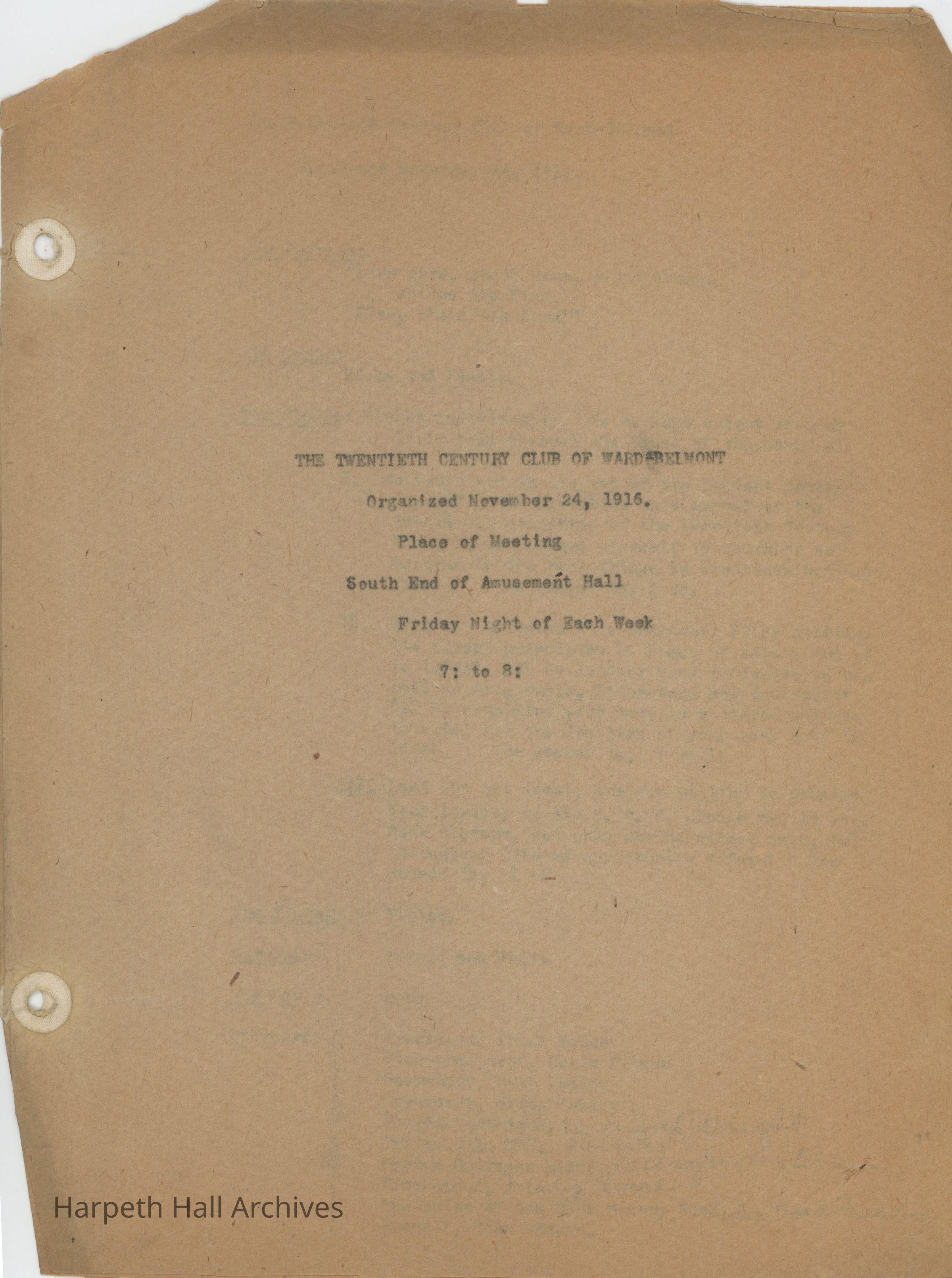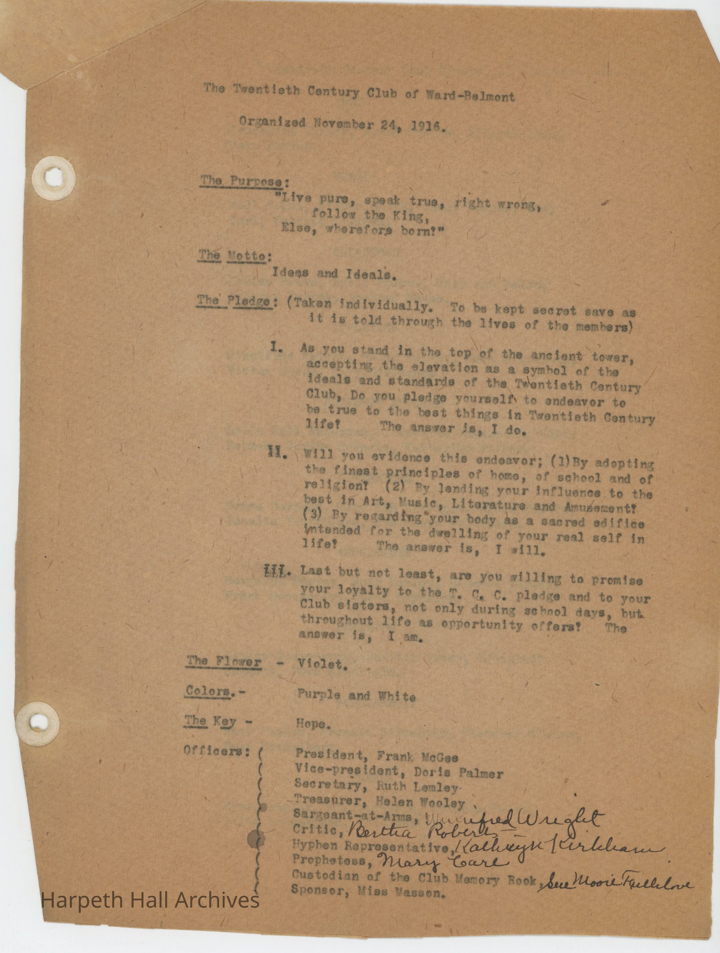 Ward-Belmont Twentieth Century Club Documents 1916-17Entry/Object ID