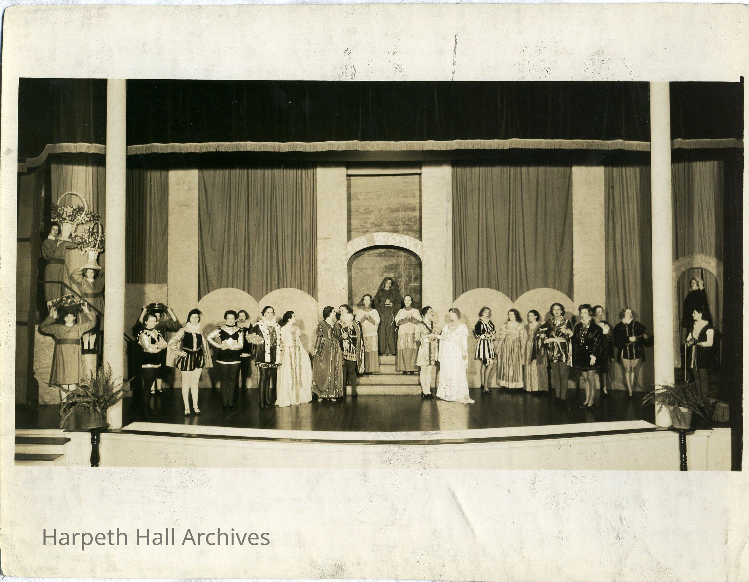 Stage production; actors on stage in costumes. The play is "As You Like It."