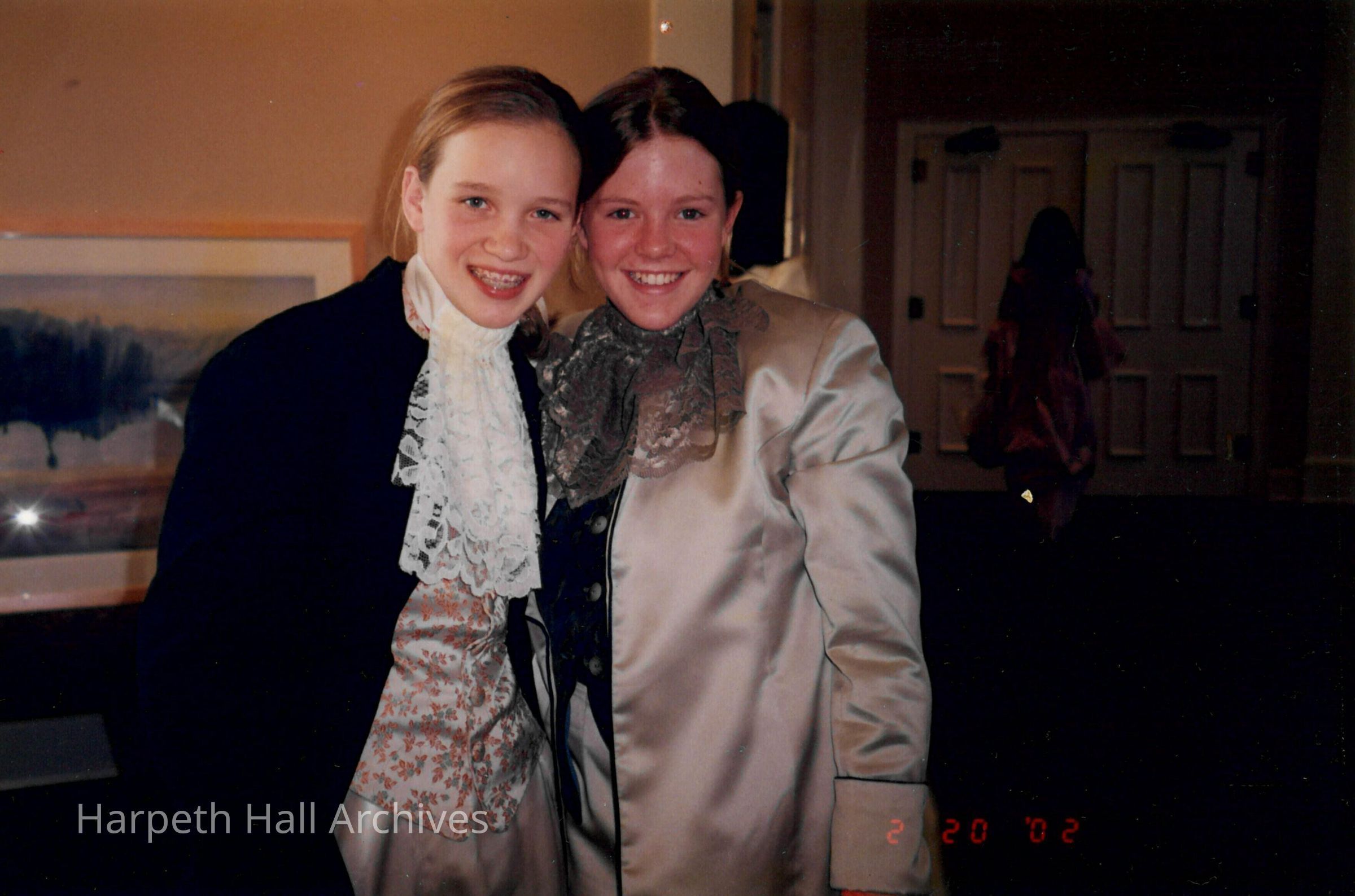 Two seventh grade students who performed in the George Washington Day Celebration on February 20, 2002. The photo is taken in the Marnie Sheridan Gallery in the McMurry Center.
