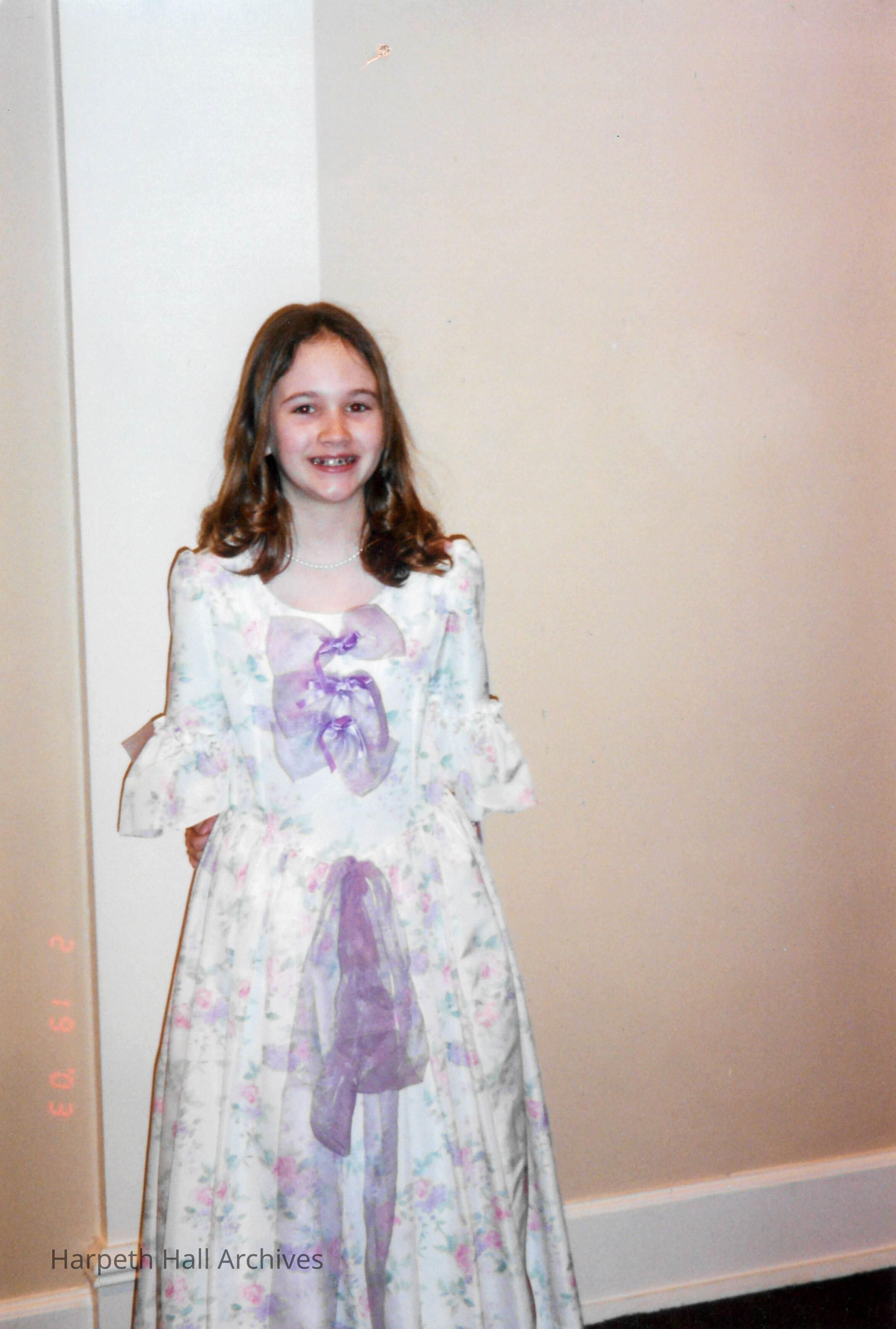 Olivia Howard (2008) in a lady costume who was one of the seventh grade students that performed in the George Washington Day Celebration on February19, 2003.Context