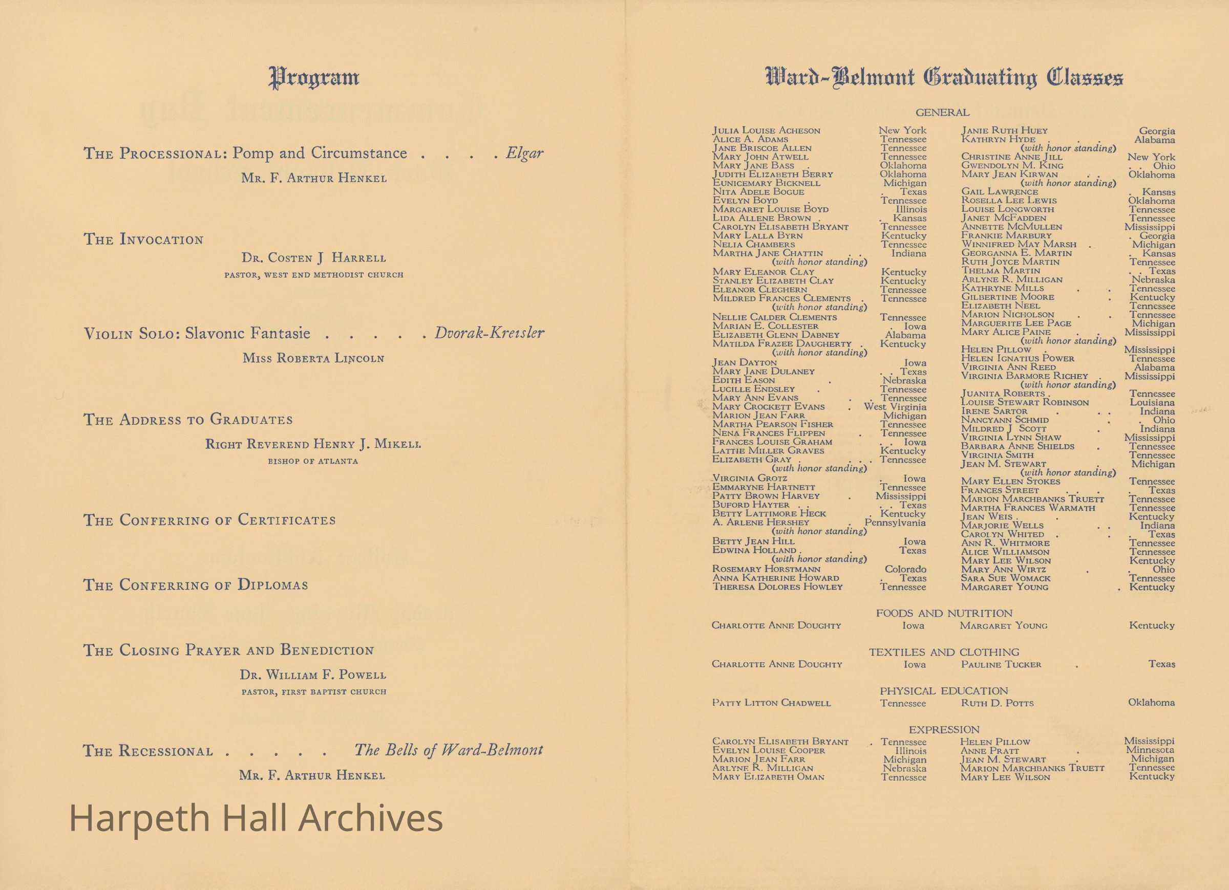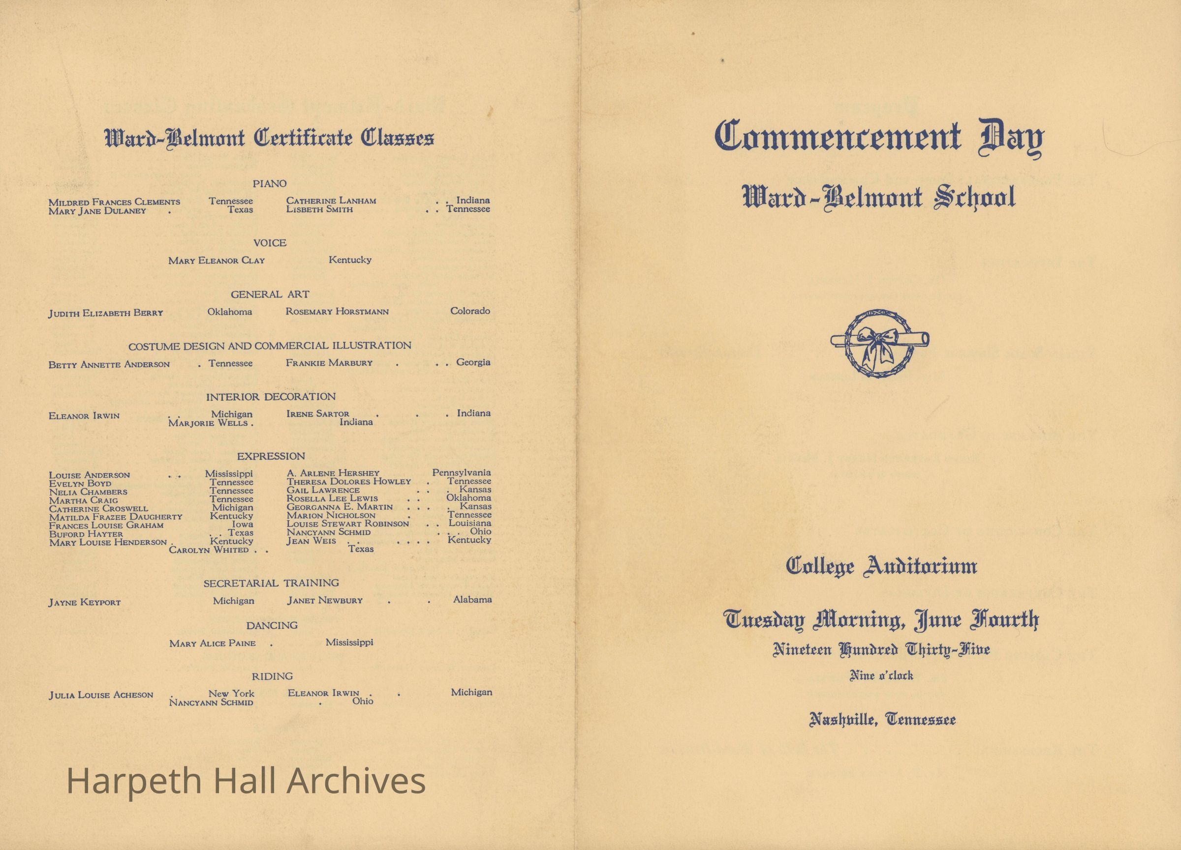 Ward-Belmont, 1935, Commencement, Program